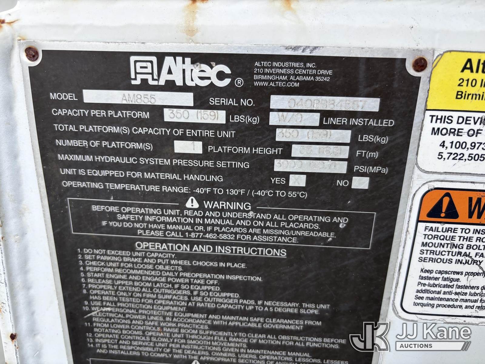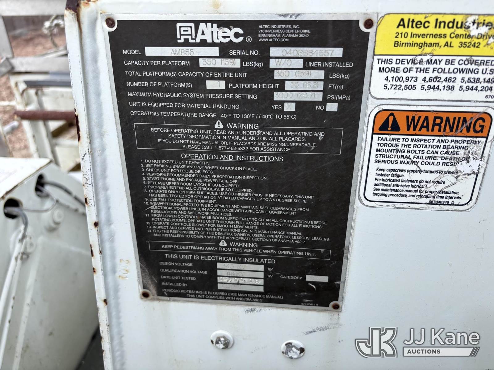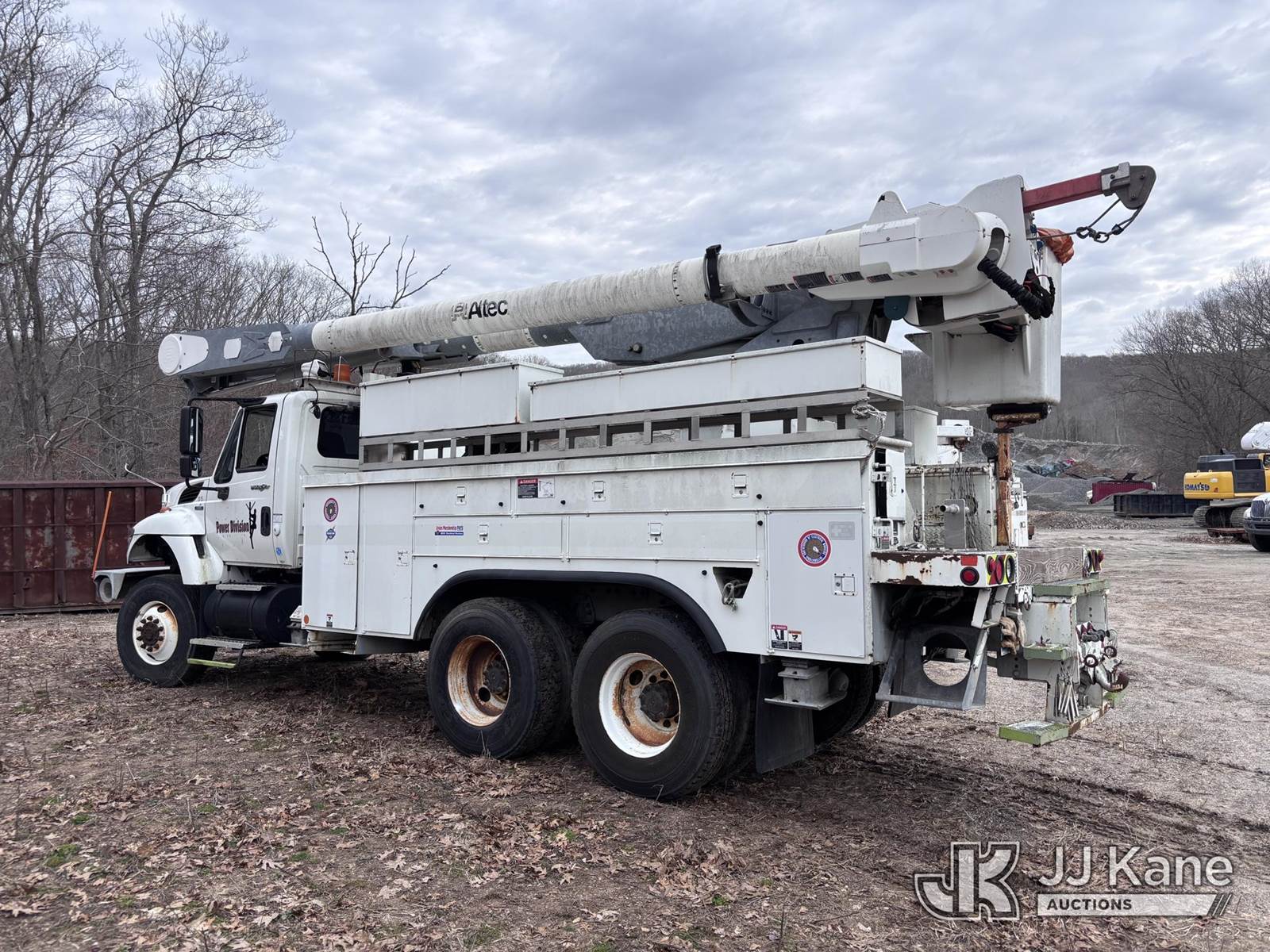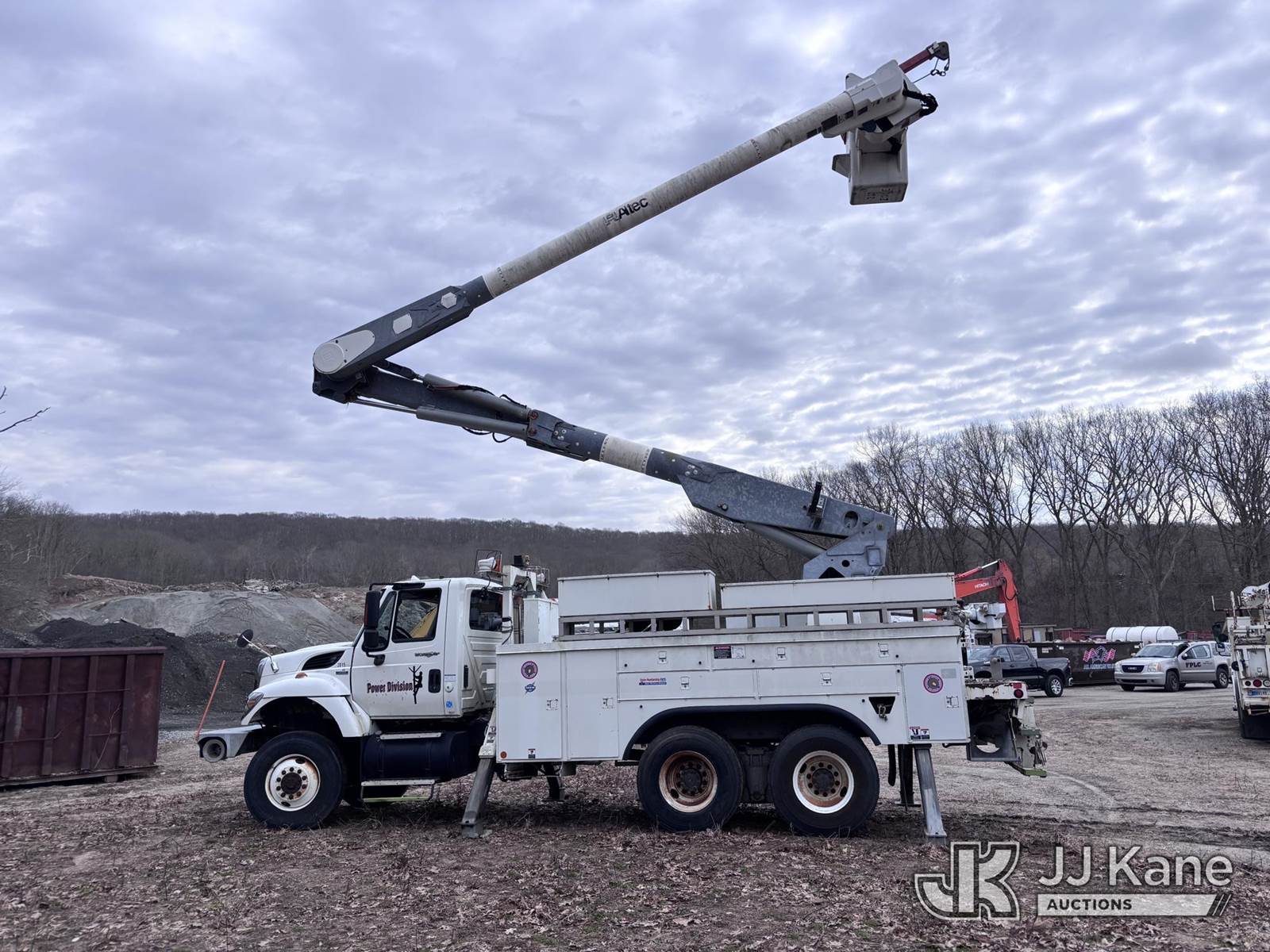 Altec AM855-MH, 60 ft, Over-Center Material Handling Bucket Truck s/n 0408-BB4557, with single man bucket, galvanized lower boom & 4 hyd outriggers, rear mounted on 2009 International 7400 6x6 Utility Truck, MaxxForce 7.6L diesel, Auto, A/C, with front capstan winch, (196,584 miles) (Runs, Moves & Upper Operates) (Sellers Tooling Will Be Removed Prior To Sale) (Reads 18,897 hours) This is a Titled Item NOTE: This unit is being sold AS IS/WHERE IS via Timed Auction and is located in Essex, CT. For pre-sale questions, please contact Jarret Charpentier at 508-395-0297 (Call/Text) or jarret@jjkane.com (Missing manuals, See Auction Company for Manufacturers Information to obtain manuals) (Buyer is responsible for removal. Assistance by consignor or JJ Kane Auctions is not assured.)