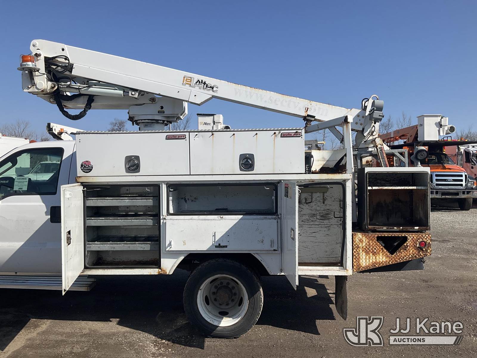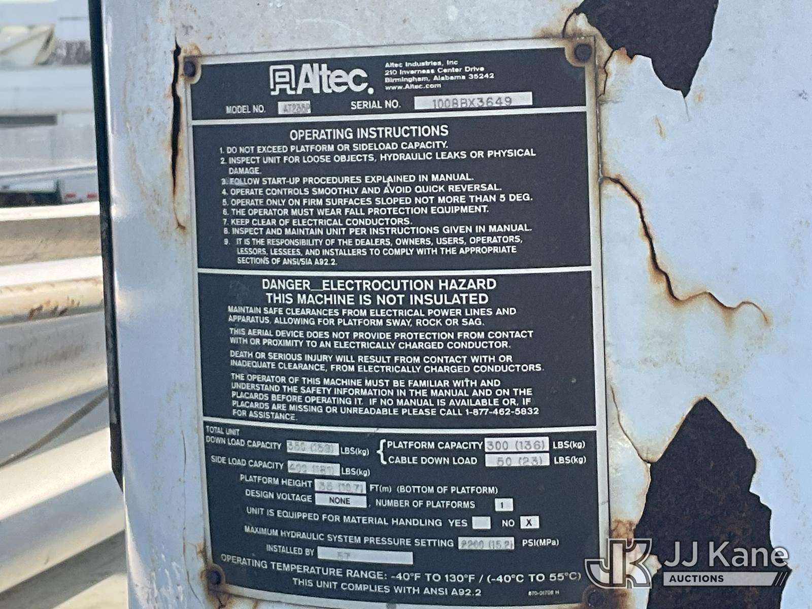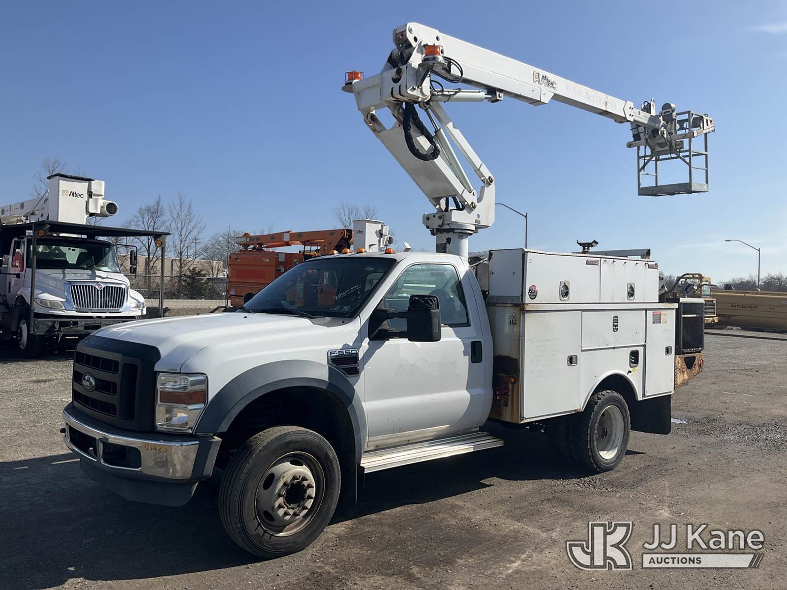 Altec AT235-P, 40 ft, Telescopic Non-Insulated Cable Placing Bucket Truck s/n 1008BX3649, with single-man basket, mounted behind cab on 2009 Ford F550 2WD Service Truck, 6.4L diesel, Auto, A/C, (160,860 miles) (Runs, Moves & Upper Operates, Engine Noise, Rust Damage On Service Body) This is a Titled Item NOTE: This unit is being sold AS IS/WHERE IS via Timed Auction and is located in Plymouth Meeting, PA. Inspection & preview days for this unit are the 2 business days prior to the first day of items closing for this auction, item is located at 1402 Conshohocken Rd Plymouth Meeting, PA 19462 and hours of operations are 8a-4p. For pre-sale questions, please contact Bruce Thomas @ (267) 887-0392 or bruce.thomas.jr@jjkane.com. (Missing manuals, See Auction Company for Manufacturers Information to obtain manuals) (Buyer is responsible for removal. Assistance by consignor or JJ Kane Auctions is not assured.)