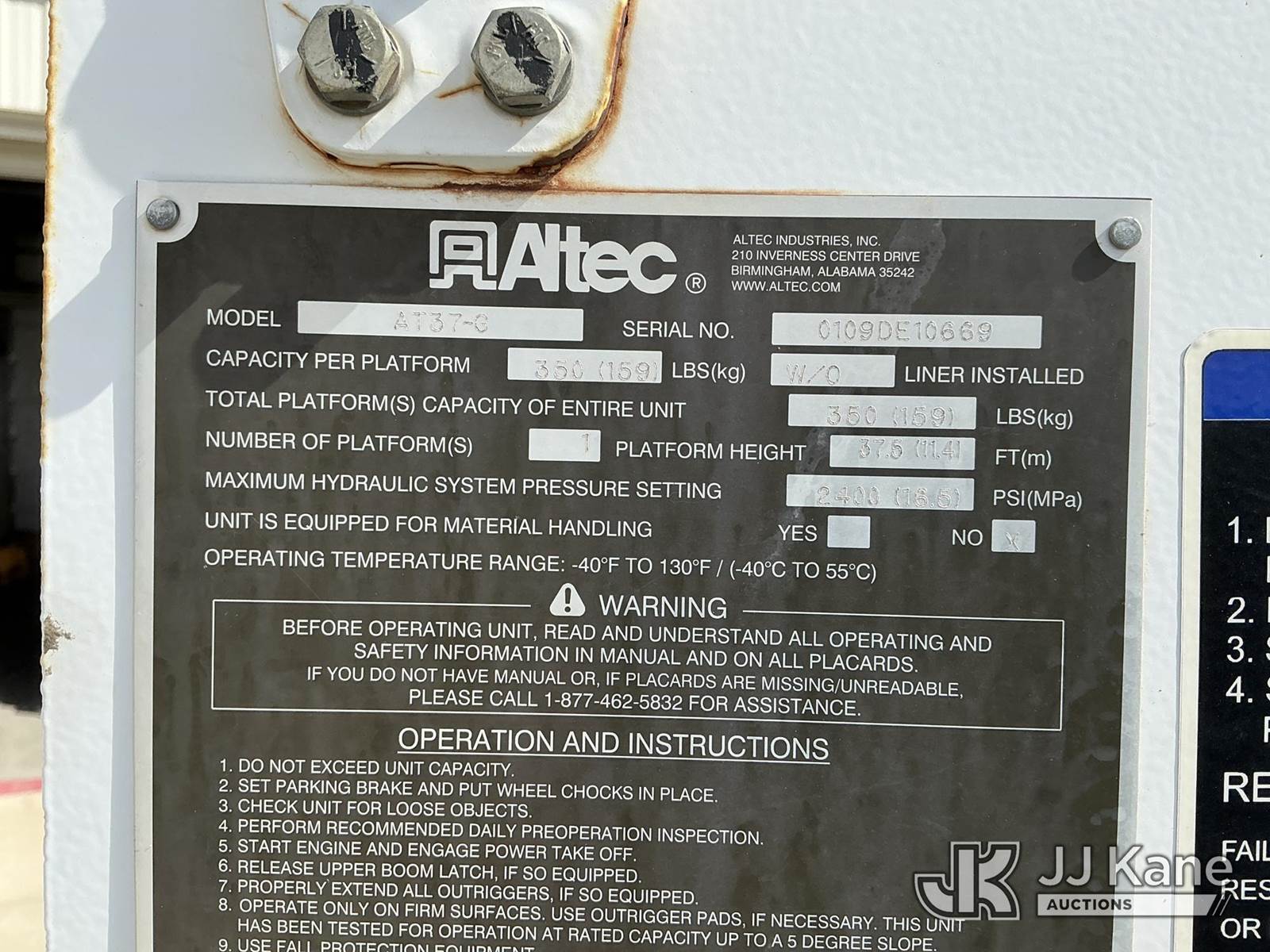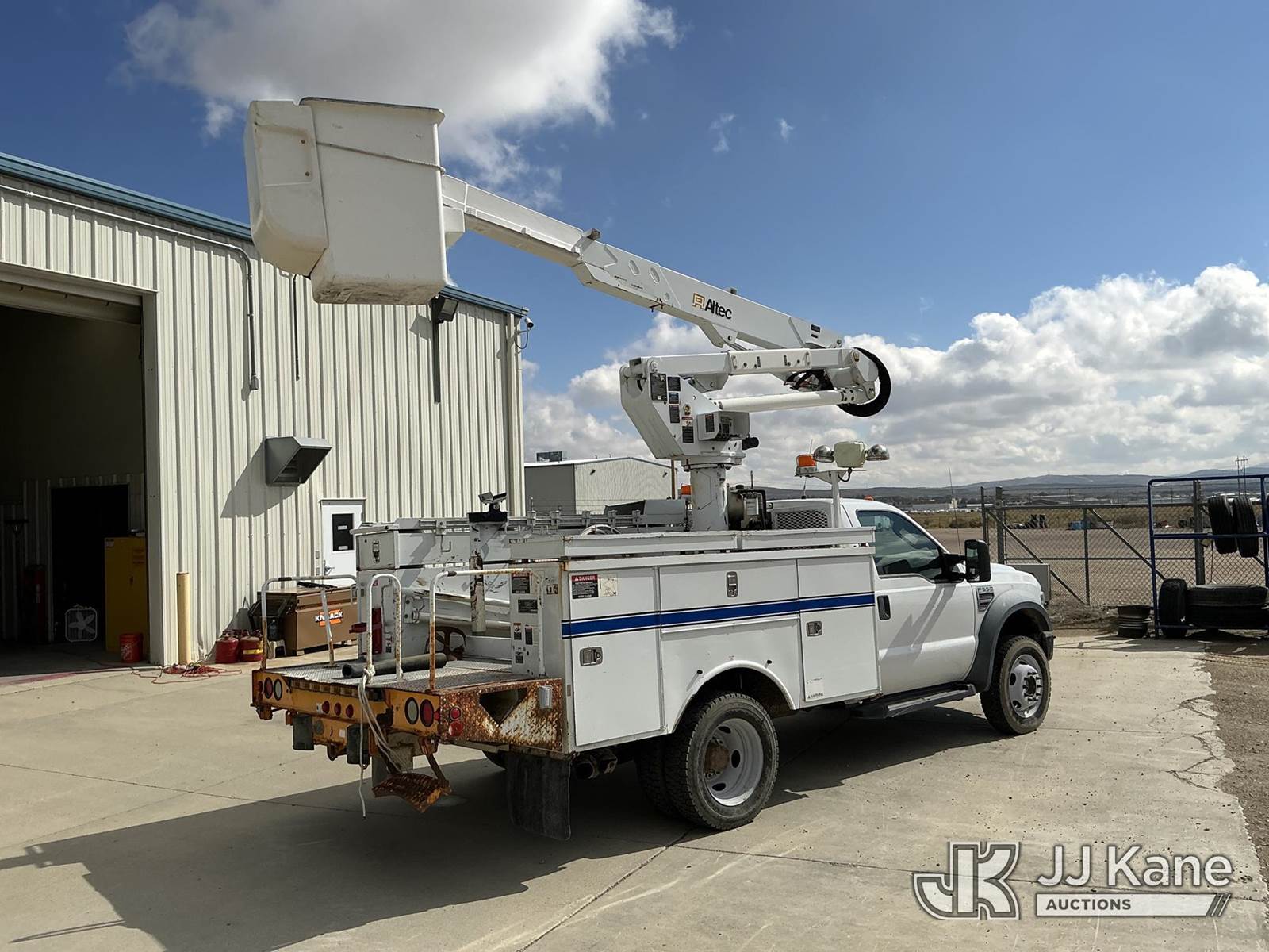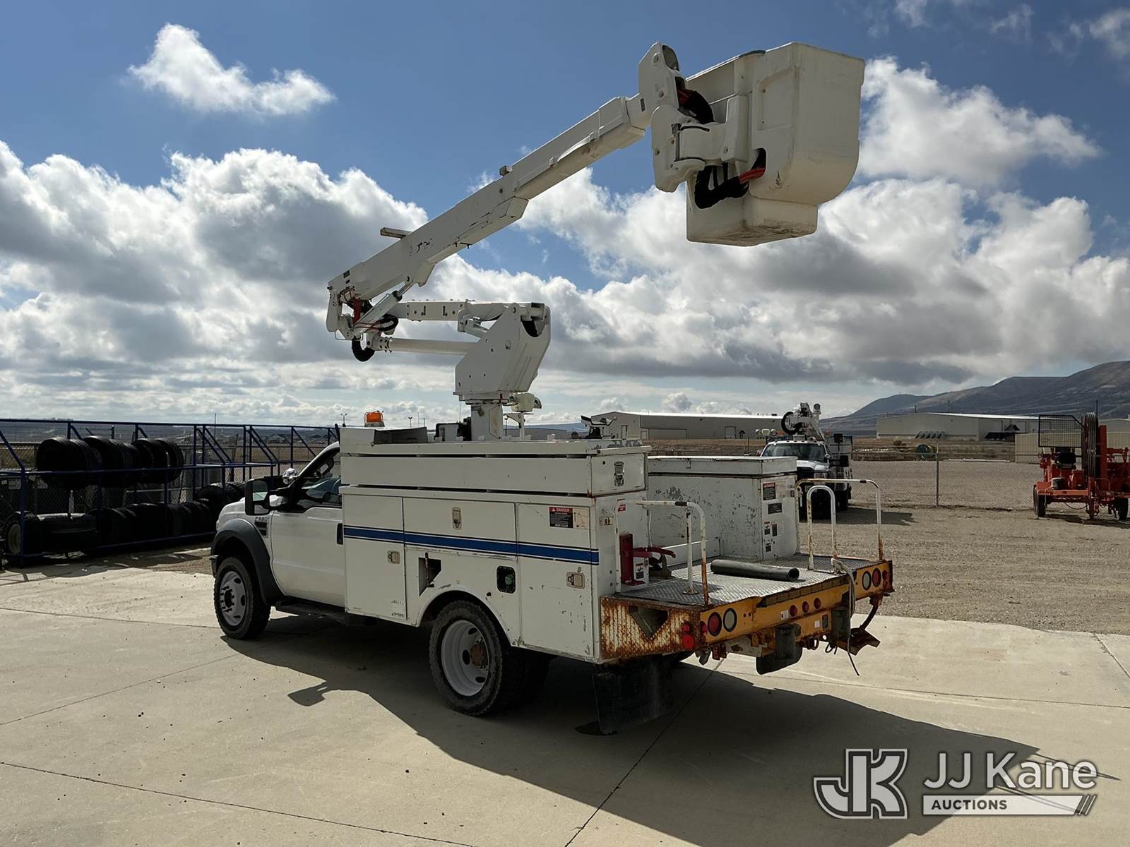 Altec AT37-G, 42 ft, Articulating & Telescopic Bucket Truck s/n 0109DE10669, with single-man bucket, mounted behind cab on 2009 Ford F-550 Utility Truck, 6.4L Auto, 4wd, diesel, A/C, with Inverter, Frontal Winch , (187,196 miles) (Runs, Moves & Upper Operates) (Seller States: Metal In Fuel System) This is a Titled Item NOTE: This unit is being sold AS IS/WHERE IS via Timed Auction and is located in Rock Springs, WY. For more information & removal arrangements please contact Tony Buss @ 307-922-1951. (Missing manuals, See Auction Company for Manufacturers Information to obtain manuals) (Buyer is responsible for removal. Assistance by consignor or JJ Kane Auctioneers is not assured.)