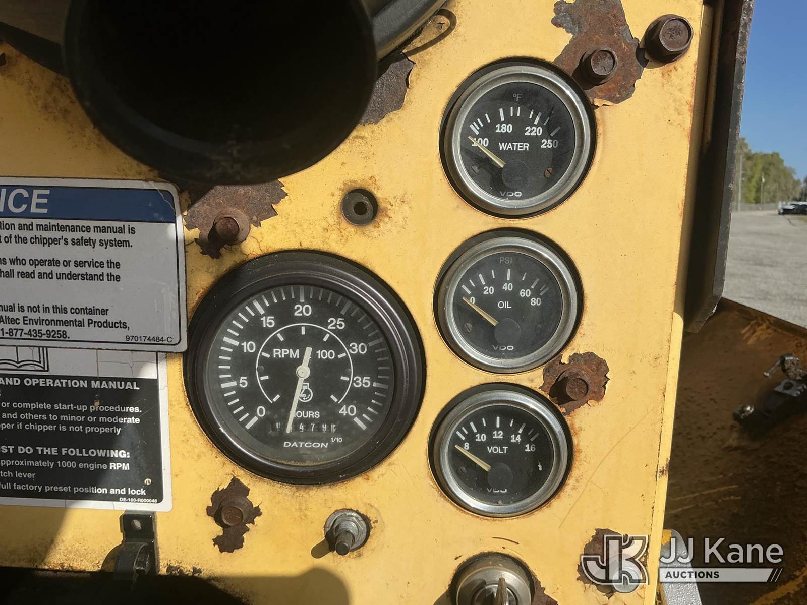 2009 Altec DC1217 Chipper (12in Disc), diesel, (Operates) (PTO Won’t Disengage) (FL Residents Purchasing Titled Items – tax, title & registration fees will be collected at the maximum rate of $400.00 under 25,999 and $800.00 for Over 26,000 and $250.00 trailers – Proof of insurance is mandatory; Out of State Residents Purchasing Title Items – tax will be collected based upon your state rate.) (Reads 4,479 hours) This is a Titled Item NOTE: This unit is being sold AS IS/WHERE IS via Timed Auction and is located in Thonotosassa, FL. Inspection & preview days for this unit are the 2 business days prior to the first day of items closing for this auction, item is located at 11720 N US 301 Thonotosassa, Fl 33592 and hours of operations are 8a-4p. For pre-sale questions, please contact Office Staff @ (813) 986-2485. (Buyer is responsible for removal. Assistance by consignor or JJ Kane Auctions is not assured.)