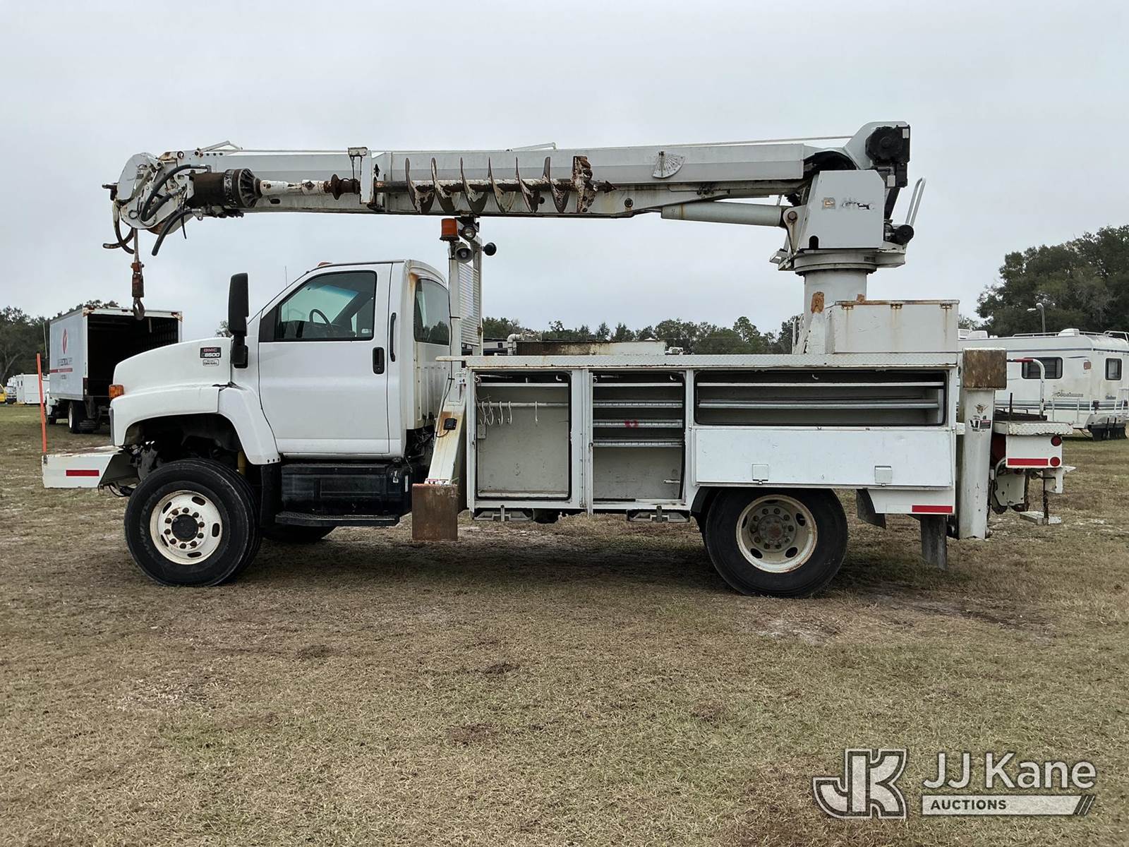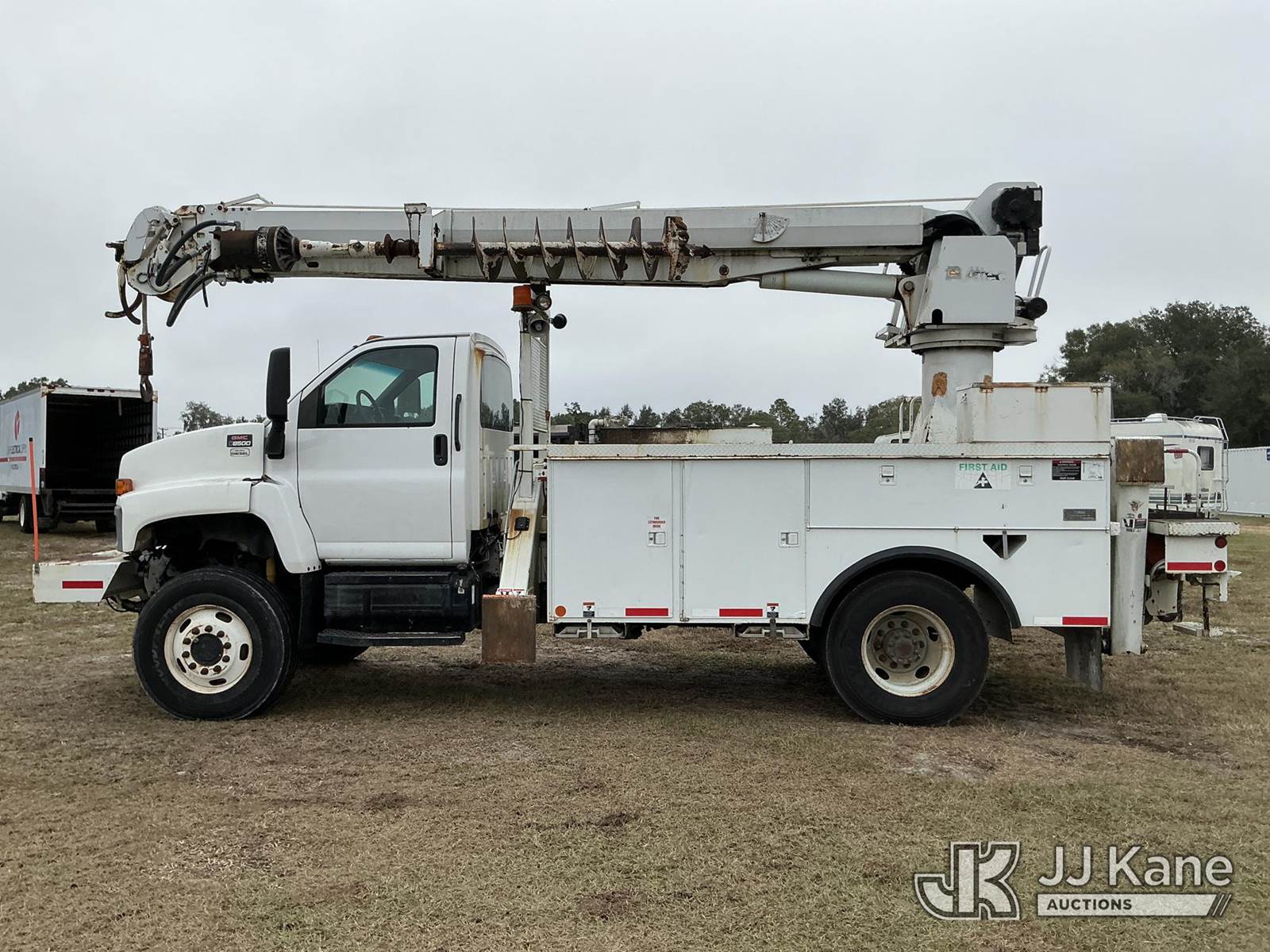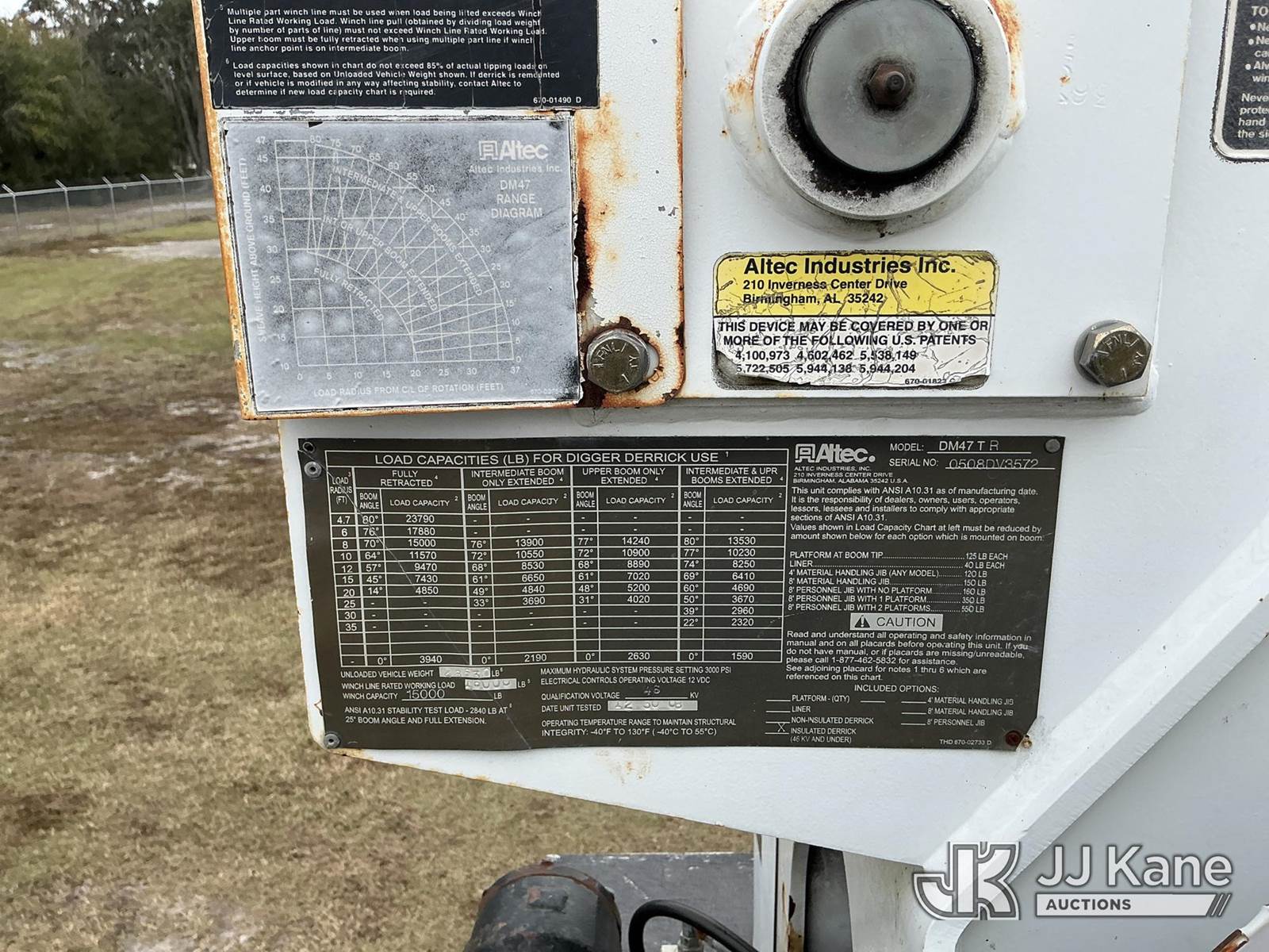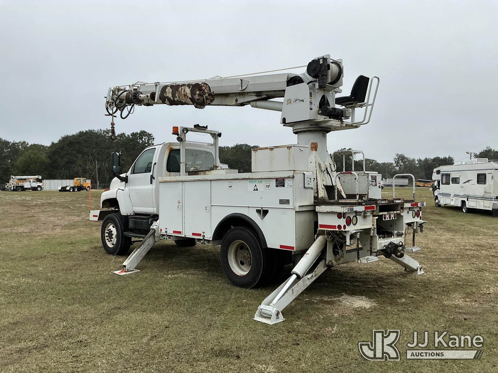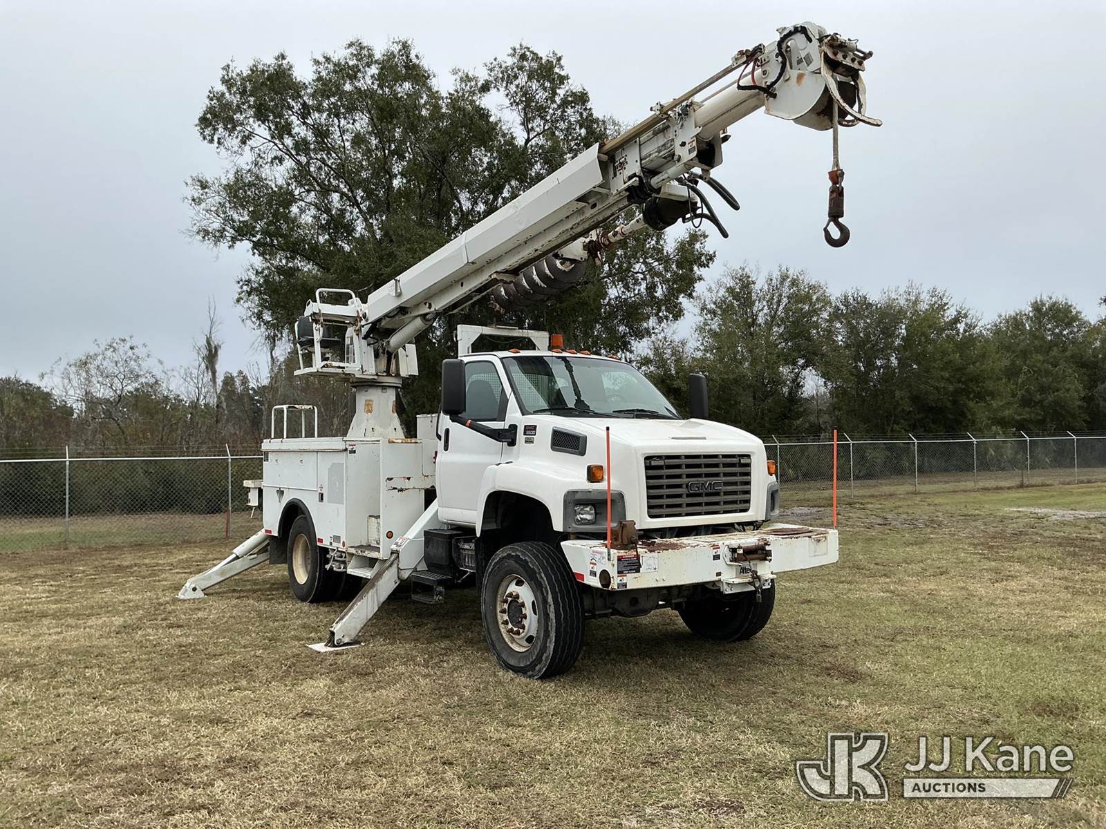 Altec DM47-TR, 23,790 Lb Digger Derrick s/n 0508DV3572, with 47 ft. sheave height, 3 section hyd boom, 2 spd digger, heel winch, pole guides, riding console & 4 hyd outriggers, rear mounted on 2009 GMC C8500 Utility Truck, Isuzu 7.8L diesel, Auto, 4X2, A/C, (112,745 miles) (Runs, Moves & Operates)(Hydraulic Leak) (Reads 3,639 hours) This is a Titled Item NOTE: This unit is being sold AS IS/WHERE IS via Timed Auction and is located in Thonotosassa, FL. Inspection & preview days for this unit are the 2 business days prior to the first day of items closing for this auction, item is located at 11720 N US 301 Thonotosassa, Fl 33592 and hours of operations are 8a-4p. For pre-sale questions, please contact Office Staff @ (813) 986-2485. (Buyer is responsible for removal. Assistance by consignor or JJ Kane Auctions is not assured.)