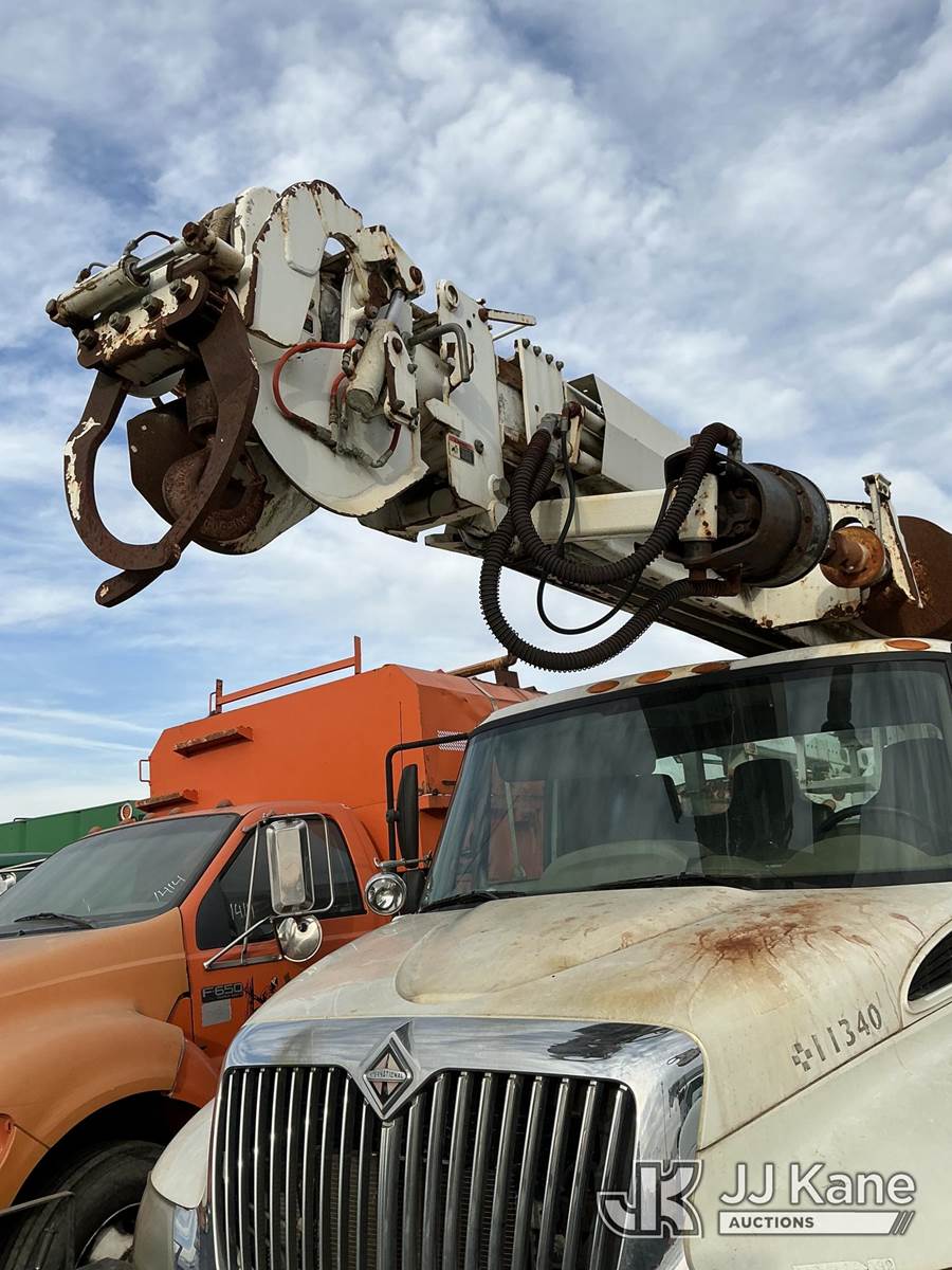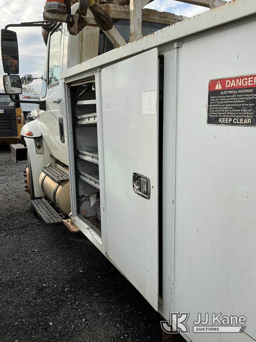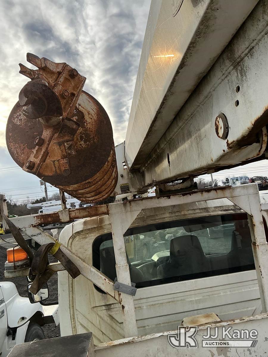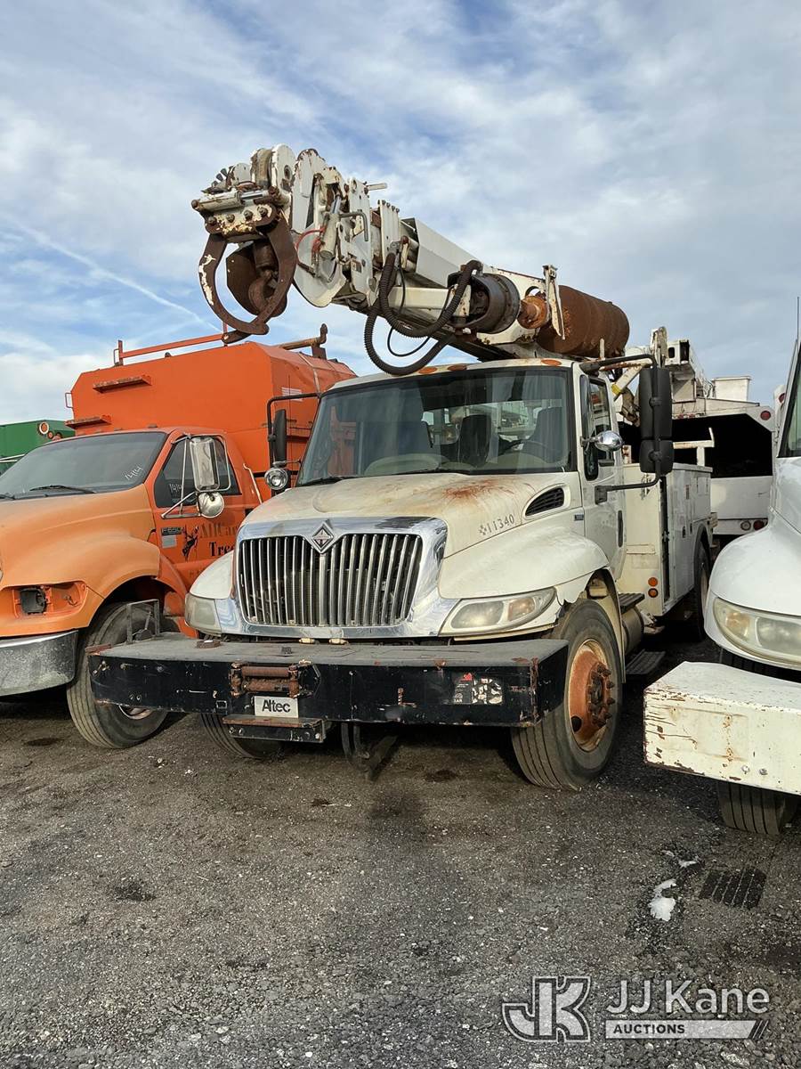 Altec DM47TR, 23,790 Lb Digger Derrick s/n 0409DV4118, with 47 ft. sheave height, 3 section hyd boom, 2 spd digger, upper controls, heel winch, pole guides, riding console & 4 hyd outriggers, rear mounted on 2009 International 4300 Utility Truck, Maxxforce DT diesel, 4X2, Auto, A/C, with front winch, True Mileage Unknown (Not Running, Condition Unknown, Upper Condition Unknown, Rust/Body Damage) This is a Titled Item NOTE: This unit is being sold AS IS/WHERE IS via Timed Auction and is located in Pennsville, NJ. For pre-sale questions and pickups, please contact Pete Rhodes at peter.rhodes@jjkane.com. Pickups can be conducted Monday through Friday 9:30am to 3:00pm. (Missing manuals, See Auction Company for Manufacturers Information to obtain manuals) (Buyer is responsible for removal. Assistance by consignor or JJ Kane Auctions is not assured.)