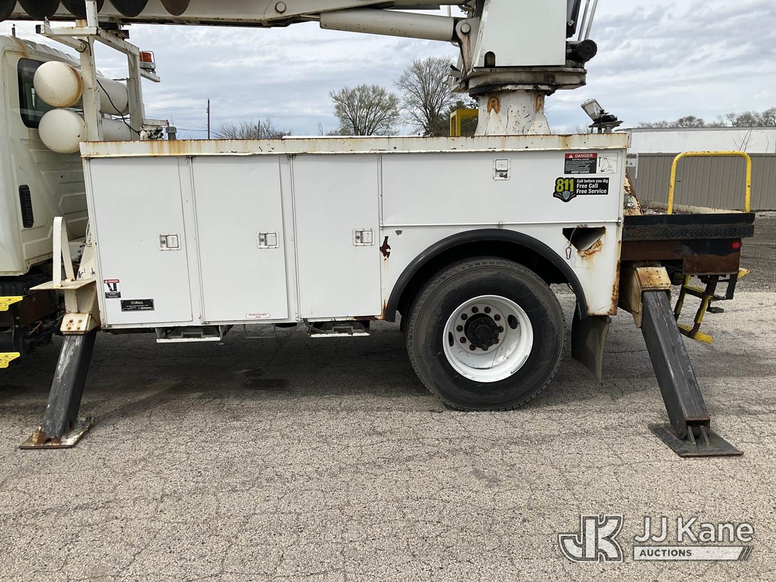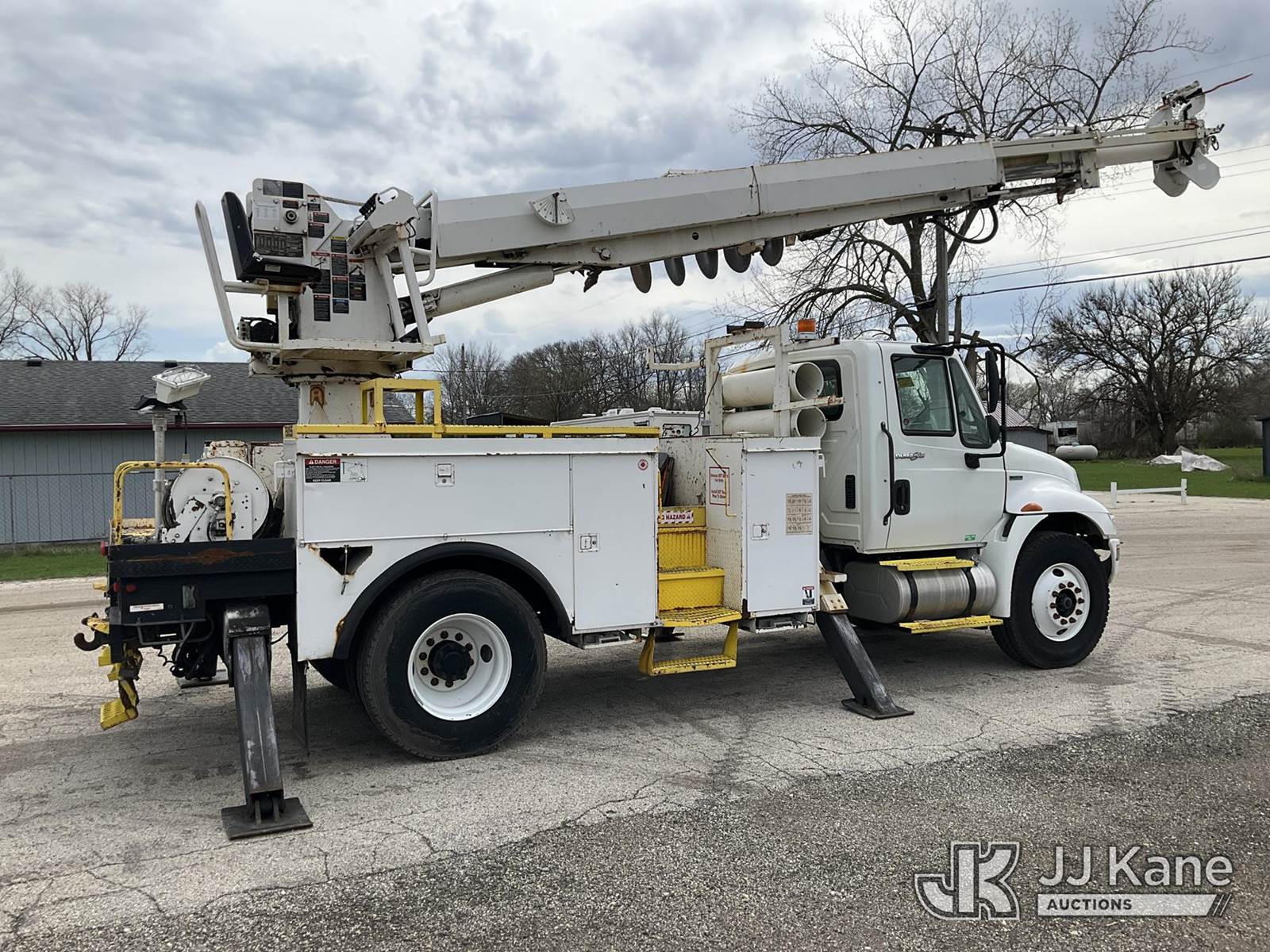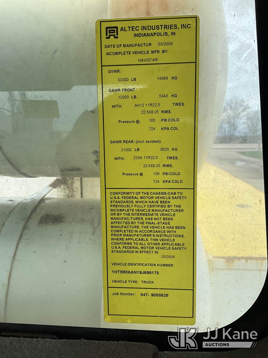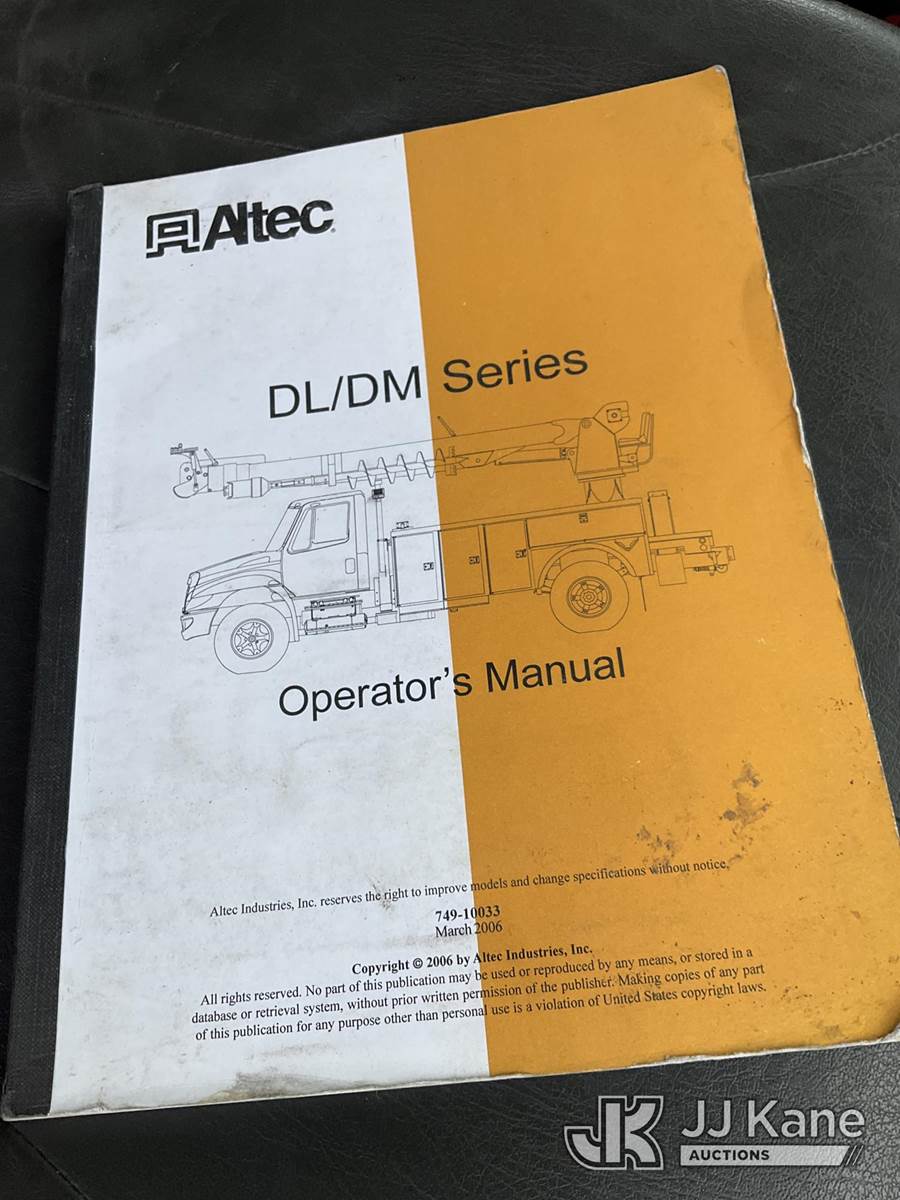 Altec DM47TR, 23,790 Lb Digger Derrick s/n 0907DV3060, with 47ft. sheave height, 2-spd digger, pole guides, heel winch, wireless remote & riding console, mounted on 2009 International 4300 Utility Truck, 7.6L L6 DIESEL 4X2, Auto, A/C, (31,424 miles) (Runs, Moves & Upper Operates) (Service Body Corrosion) (Reads 8,334 hours) This is a Titled Item NOTE: This unit is being sold AS IS/WHERE IS via Timed Auction and is located in South Beloit, IL. Inspection & preview days for this unit are the 2 business days prior to the first day of items closing for this auction, item is located at 14354 Dearborn Ave South Beloit, IL and hours of operations are 8a-4p. For pre-sale questions, please contact Derek Eklund at (608) 904-0618 or (derek.eklund@jjkane.com). (Manuals provided in cab) (Buyer is responsible for removal. Assistance by consignor or JJ Kane Auctions is not assured.)