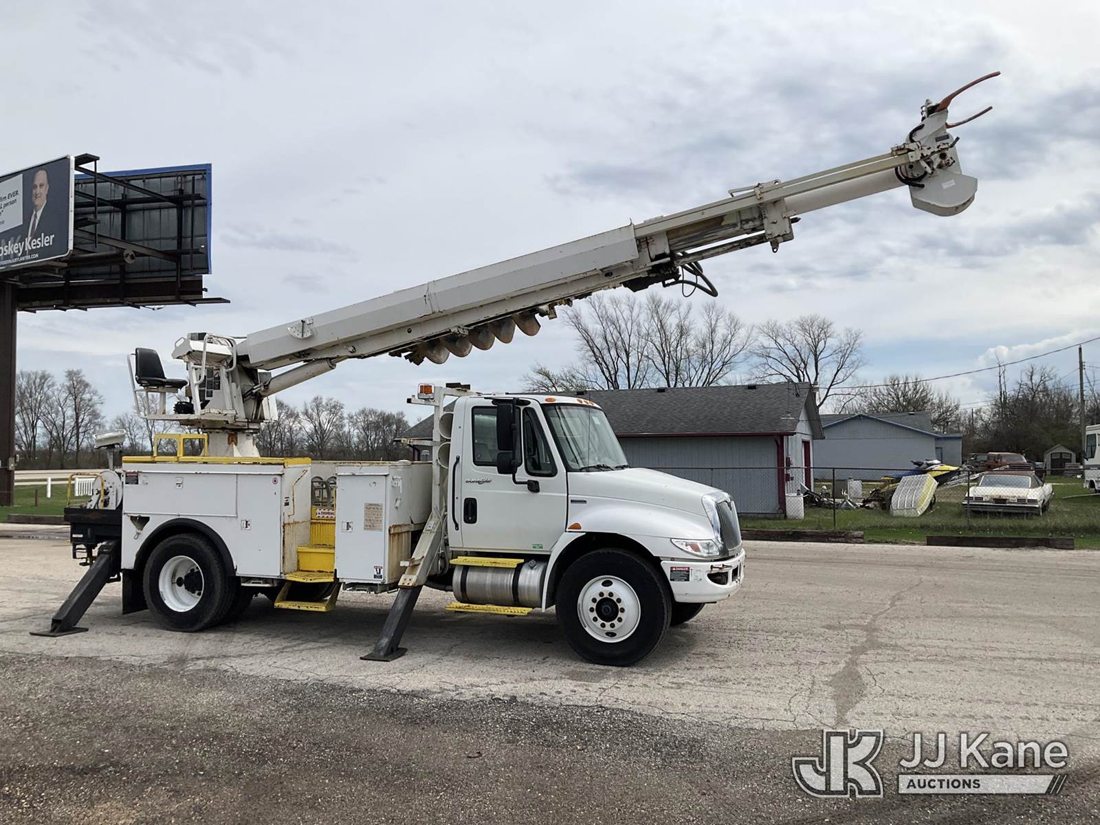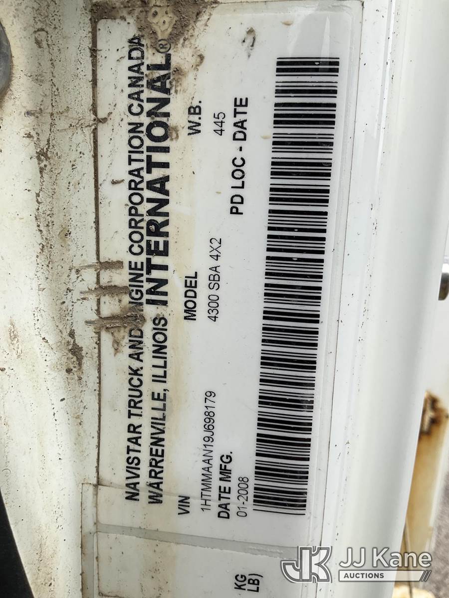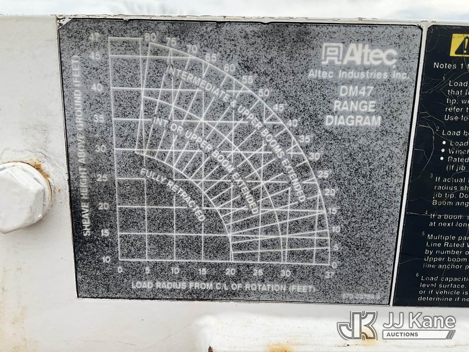 Altec DM47TR, 23,790 Lb Digger Derrick s/n 0907DV3060, with 47ft. sheave height, 2-spd digger, pole guides, heel winch, wireless remote & riding console, mounted on 2009 International 4300 Utility Truck, 7.6L L6 DIESEL 4X2, Auto, A/C, (31,424 miles) (Runs, Moves & Upper Operates) (Service Body Corrosion) (Reads 8,334 hours) This is a Titled Item NOTE: This unit is being sold AS IS/WHERE IS via Timed Auction and is located in South Beloit, IL. Inspection & preview days for this unit are the 2 business days prior to the first day of items closing for this auction, item is located at 14354 Dearborn Ave South Beloit, IL and hours of operations are 8a-4p. For pre-sale questions, please contact Derek Eklund at (608) 904-0618 or (derek.eklund@jjkane.com). (Manuals provided in cab) (Buyer is responsible for removal. Assistance by consignor or JJ Kane Auctions is not assured.)