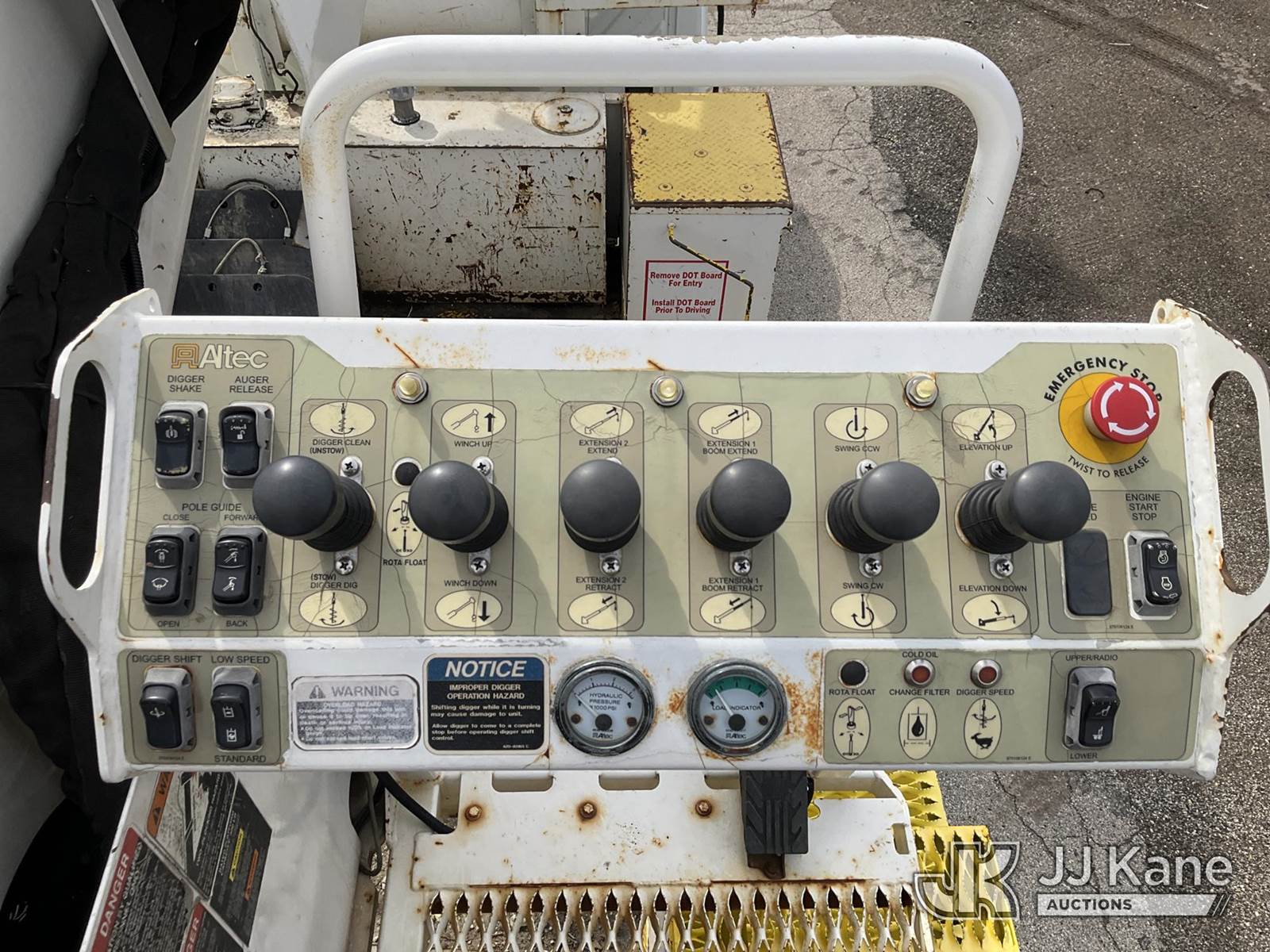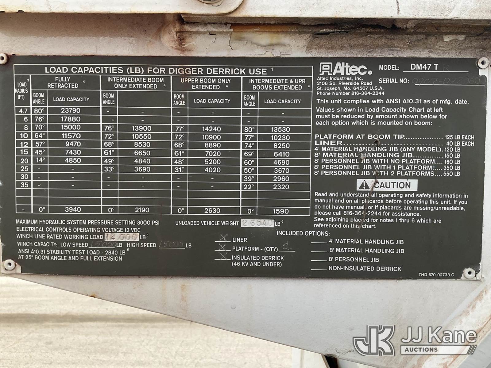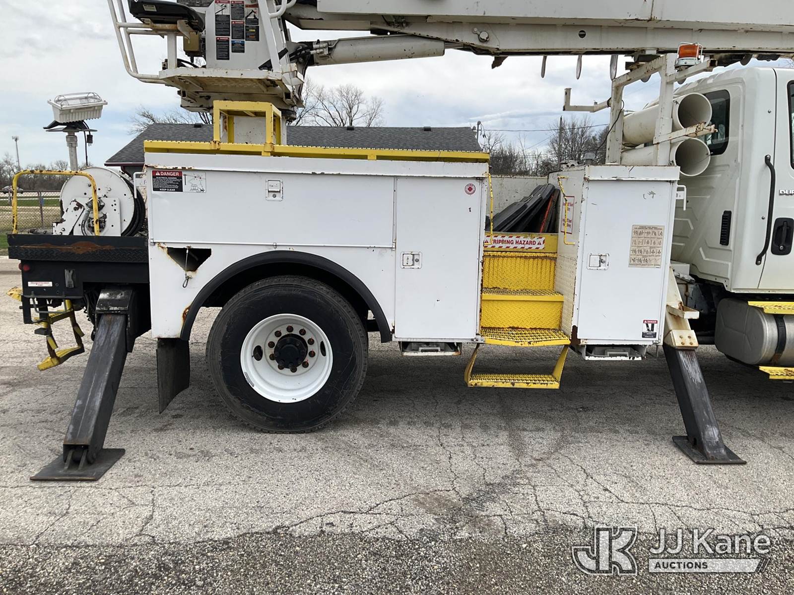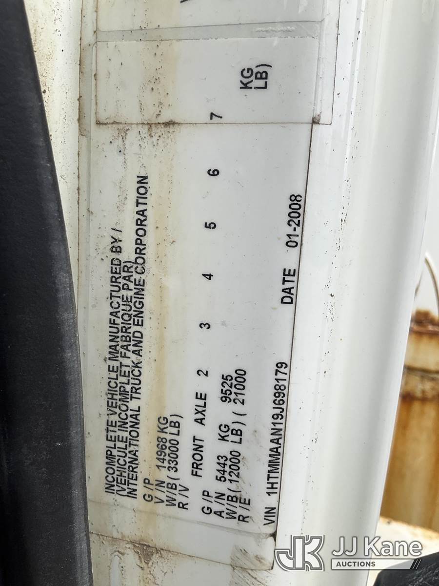 Altec DM47TR, 23,790 Lb Digger Derrick s/n 0907DV3060, with 47ft. sheave height, 2-spd digger, pole guides, heel winch, wireless remote & riding console, mounted on 2009 International 4300 Utility Truck, 7.6L L6 DIESEL 4X2, Auto, A/C, (31,424 miles) (Runs, Moves & Upper Operates) (Service Body Corrosion) (Reads 8,334 hours) This is a Titled Item NOTE: This unit is being sold AS IS/WHERE IS via Timed Auction and is located in South Beloit, IL. Inspection & preview days for this unit are the 2 business days prior to the first day of items closing for this auction, item is located at 14354 Dearborn Ave South Beloit, IL and hours of operations are 8a-4p. For pre-sale questions, please contact Derek Eklund at (608) 904-0618 or (derek.eklund@jjkane.com). (Manuals provided in cab) (Buyer is responsible for removal. Assistance by consignor or JJ Kane Auctions is not assured.)