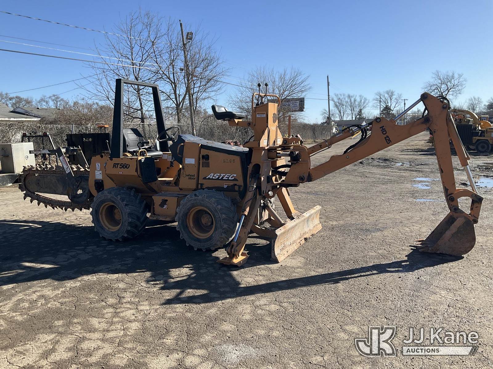 2009 Astec RT560 Rubber Tired Trencher, s/n RT560X83278, Kubota diesel, Hydrostatic, with trencher boom, front digging attachment, backfill blade & ROPS posts, (Runs, Moves, Operates) (Reads 327 hours) NOTE: This unit is being sold AS IS/WHERE IS via Timed Auction and is located in South Beloit, IL. Inspection & preview days for this unit are the 2 business days prior to the first day of items closing for this auction, item is located at 14354 Dearborn Ave South Beloit, IL and hours of operations are 8a-4p. For pre-sale questions, please contact Derek Eklund at (608) 904-0618 or (derek.eklund@jjkane.com). (Buyer is responsible for removal. Assistance by consignor or JJ Kane Auctions is not assured.)