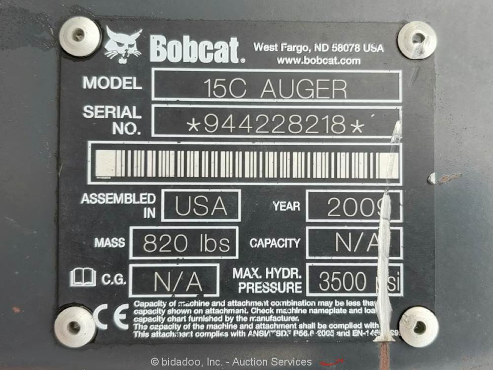 2009 Bobcat 15C Auger Skid Steer Hydraulic Digging Auger Attachment Tool bidadoo