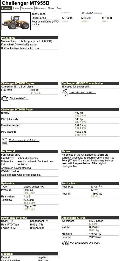 2009 Challenger MT955B 475hp CAT C15 923-c.i. 6-cyl Turbo Diesel
