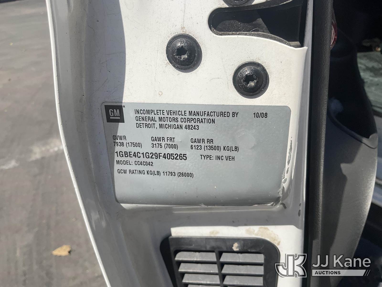 2009 Chevrolet C4C042 Stake Truck, s/n 1GBE4C1G29F405265, 8-cyl gas, Auto, A/C, with 12FT Stakebed, Aluminum Stakes, (45,289 miles) (Runs & Moves) (ABS Light On, Missing Passenger Mirror, Stripped of Parts, Missing Door Panels) (Bidding Restricted to Licensed Vehicle Dealers Only), This is a Titled Item NOTE: This unit is being sold AS IS/WHERE IS via Timed Auction and is located in Jurupa Valley, CA. Inspection & preview days for this unit are the 2 business days prior to the first day of items closing for this auction, item is located at 4510 Muth Way Jurupa Valley, CA 92509 and hours of operations are 8a-4p. For pre-sale questions, please contact please contact Office Staff @ (310) 353-7140. Dealer License Number 45696. (Buyer is responsible for removal. Assistance by consignor or JJ Kane Auctions is not assured.)