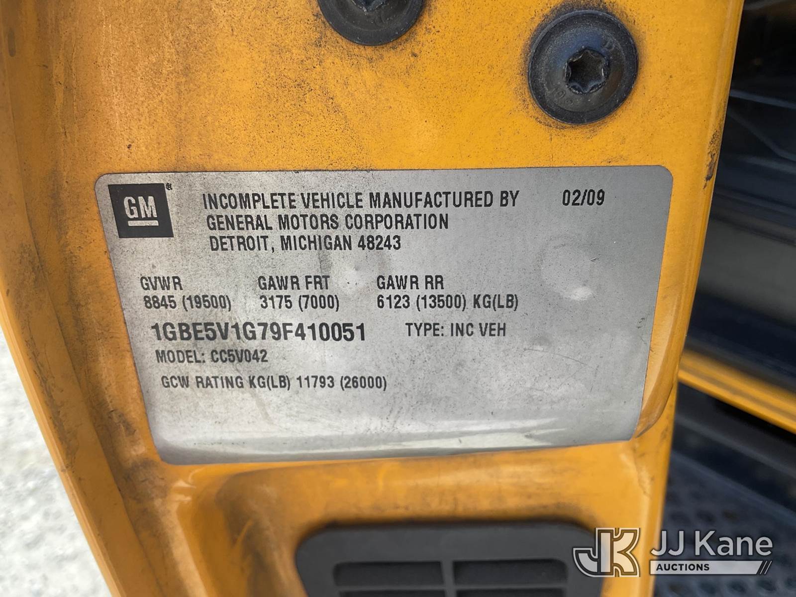 2009 Chevrolet C5V042 Cutaway, 8-cyl gas, Auto, A/C, with 20 Passenger Seating, True Mileage Unknown (Not Running, Condition Unknown) (Stripped of Parts) This is a Titled Item NOTE: This unit is being sold AS IS/WHERE IS via Timed Auction and is located in Jurupa Valley, CA. Inspection & preview days for this unit are the 2 business days prior to the first day of items closing for this auction, item is located at 4510 Muth Way Jurupa Valley, CA 92509 and hours of operations are 8a-4p. For pre-sale questions, please contact please contact Office Staff @ (310) 353-7140. Dealer License Number 45696. (Buyer is responsible for removal. Assistance by consignor or JJ Kane Auctioneers is not assured.)