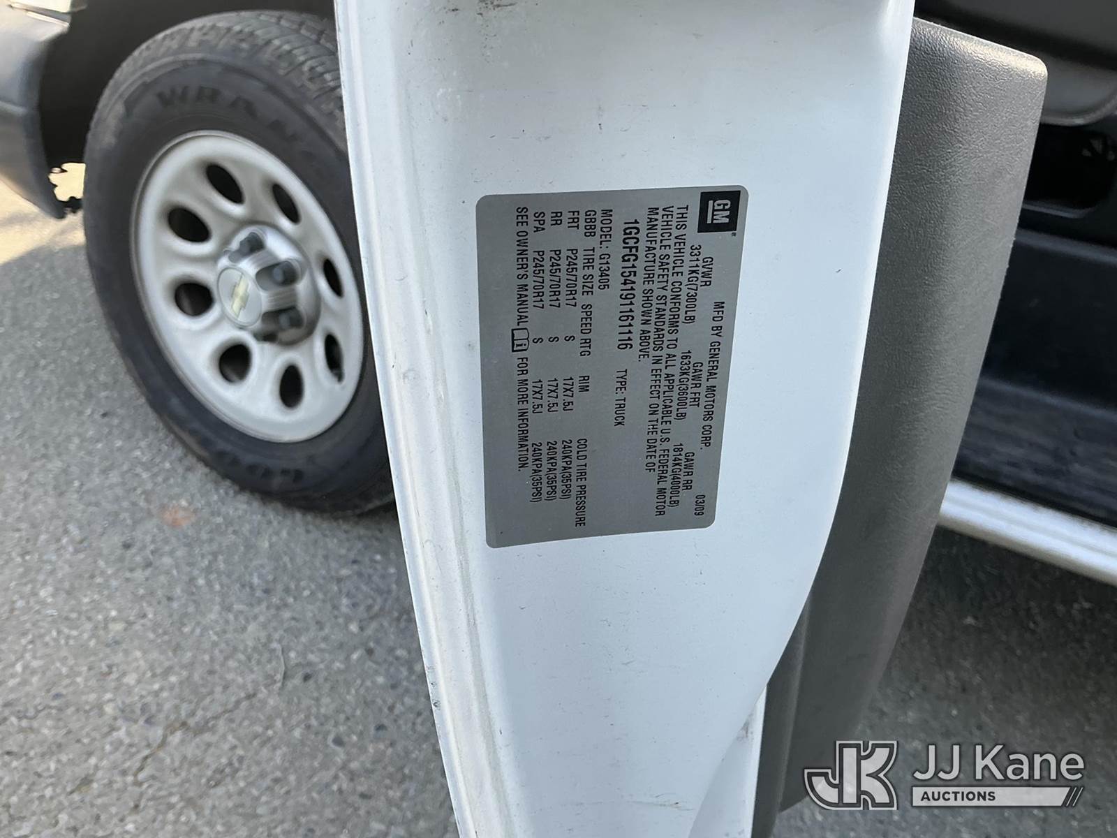 2009 Chevrolet Express 1500 Cargo Van, s/n 1GCFG154191161116, 5.3L V8 OHV 16V RWD, GAS, 4-Speed Automatic, A/C, (46,848 miles) (Runs & Moves)(Jump To Start) This is a Titled Item NOTE: This unit is being sold AS IS/WHERE IS via Timed Auction and is located in Dixon, CA. Inspection & preview days for this unit are the 2 business days prior to the first day of items closing for this auction, item is located at 8668 Sparling Ln Dixon, CA 95620 and hours of operations are 8a-4p. For pre-sale questions, please contact JJ Kane Staff at (707) 678-8060 (dixon@jjkane.com). Dealer License Number 45696. (Buyer is responsible for removal. Assistance by consignor or JJ Kane Auctions is not assured.)