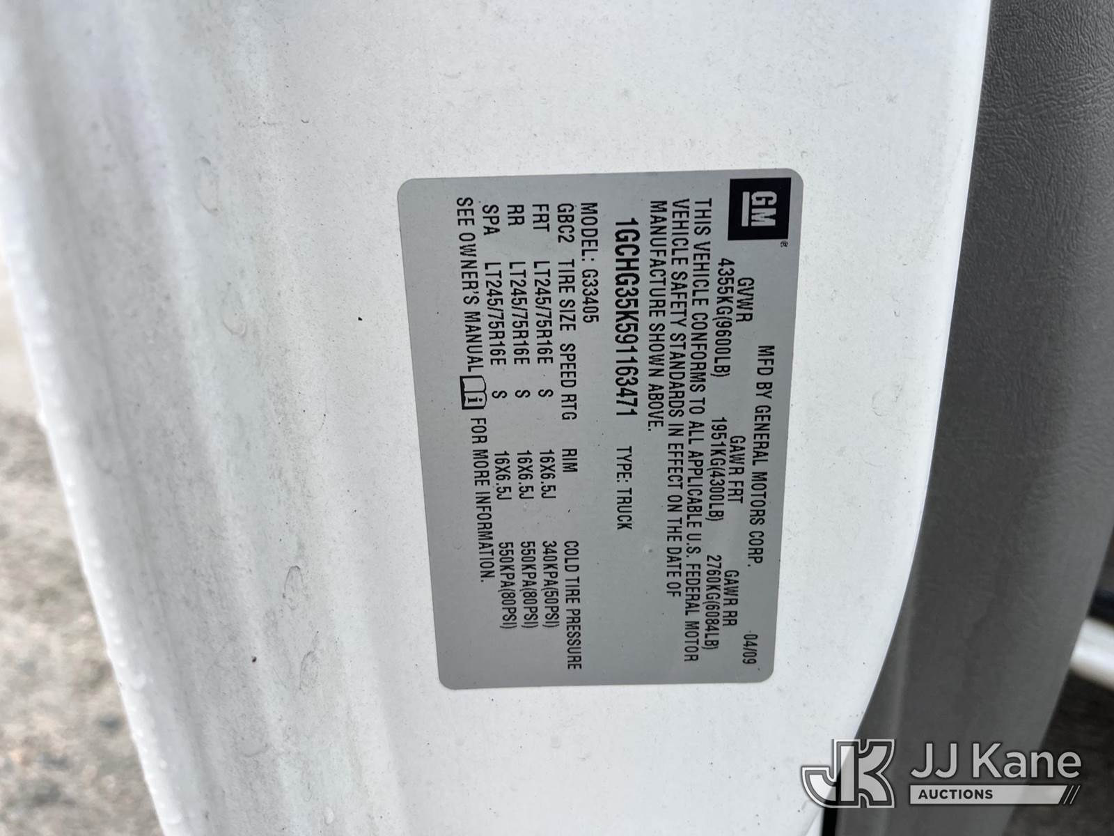 2009 Chevrolet Express G3500 Cargo Van, 8-cyl gas, Auto, A/C, (165,722 miles) (Runs & Moves) (TITLE DELAY) (Reads 7,764 hours) This is a Titled Item NOTE: This unit is being sold AS IS/WHERE IS via Timed Auction and is located in Chester, VA. Inspection & preview days for this unit are the 2 business days prior to the first day of items closing for this auction, item is located at 13301 Great Coastal Dr., Chester, VA 23836 and hours of operations are 7a-3p. For more information & removal arrangements please contact Zach Geller @ 804-807-4574. Buyer/Hauler must present copy of the Release Form upon arrival. Purchaser acknowledges ALL lots must be removed within 10 business days of auction, or a storage fee may be incurred. Sales Tax Collected Based on Residency Title To Come From Leasing Company In 30 Days(Buyer is responsible for removal. Assistance by consignor or JJ Kane Auctioneers is not assured.)