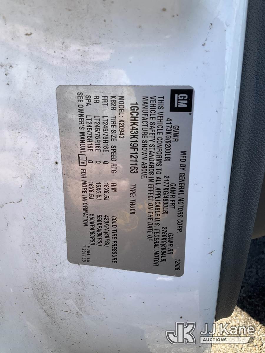 2009 Chevrolet Silverado 2500HD 4x4 Crew-Cab Pickup Truck, 6.0L V8 OHV 16V gas, 6-Speed Automatic, A/C, with service cap & lift gate, (110,817 miles) (Runs & Moves) (Rust Damage, Lift Gate Does Not Go Down- Has Power, Rear End Noise NOT ROAD WORTHY) This is a Titled Item NOTE: This unit is being sold AS IS/WHERE IS via Timed Auction and is located in South Beloit, IL. Inspection & preview days for this unit are the 2 business days prior to the first day of items closing for this auction, item is located at 14354 Dearborn Ave South Beloit, IL and hours of operations are 8a-4p. For pre-sale questions, please contact Derek Eklund at (608) 904-0618 or (derek.eklund@jjkane.com). (Buyer is responsible for removal. Assistance by consignor or JJ Kane Auctions is not assured.)