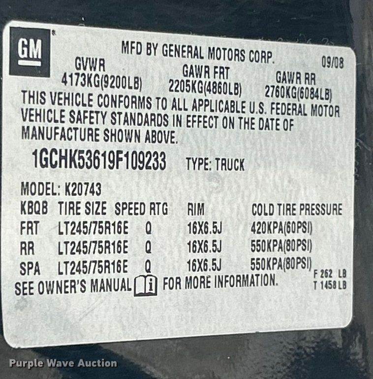 VIN: 1GCHK53619F109233