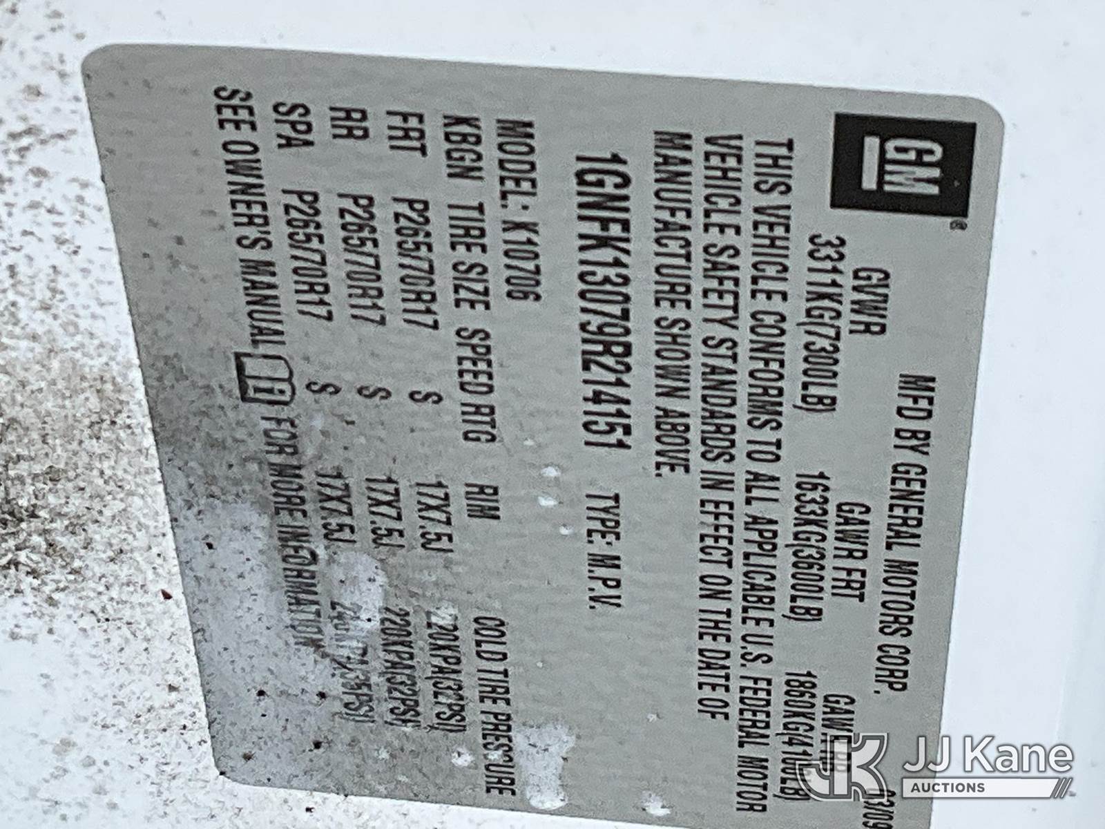 2009 Chevrolet Tahoe 4x4 4-Door Sport Utility Vehicle, 8-cyl, CNG/Gas, Auto, A/C, (129,059 miles) (Runs & Moves) This is a Titled Item NOTE: This unit is being sold AS IS/WHERE IS via Timed Auction and is located in Salt Lake City, UT. Inspection & preview days for this unit are the 2 business days prior to the first day of items closing for this auction, item is located at 2353 N Redwood Rd Salt Lake City, UT 84116 and hours of operations are 8a-4p. Titles executed exactly as bidder registered. Ensure your name and/or business name and address in JJ Kane and/or ProxiBid is correct before bidding. For pre-sale questions, please contact Office Staff @ (801) 519-0123. (Buyer is responsible for removal. Assistance by consignor or JJ Kane Auctions is not assured.)