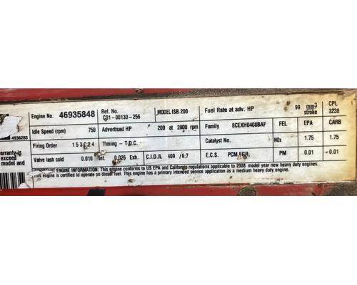 ISB 6.7L, CM2150, 200 HP, S/N 46935848, CPL 3238, DOM 2008