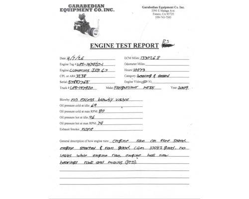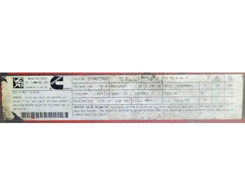 ISB, 6.7L, CM2150; 200 HP; S/N 57887765; CPL 3238; DOM 2009, 133,026.8 ECM Miles, 10,073 Hours. New bearings and seals