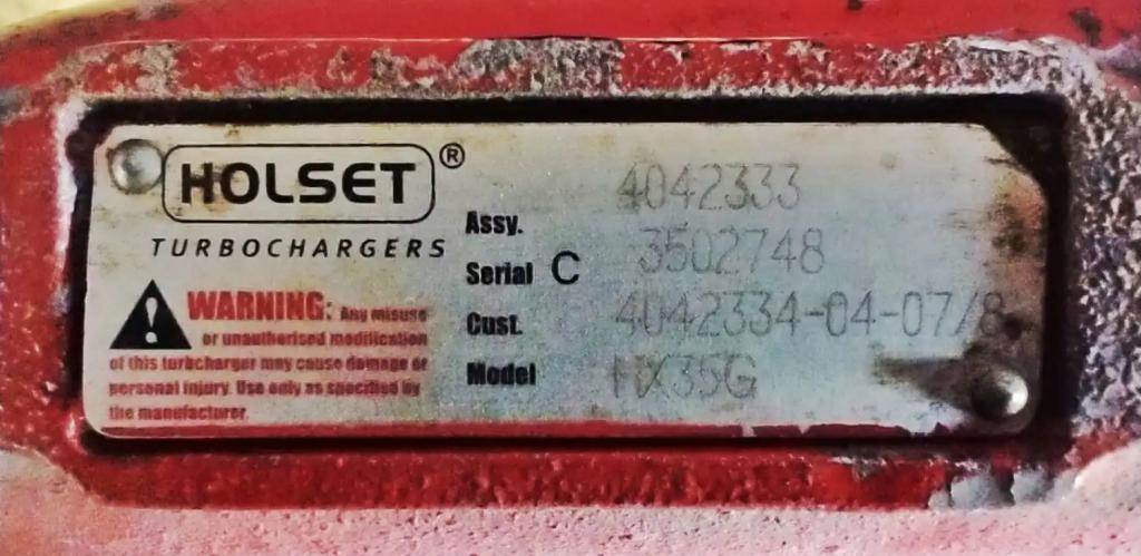2009 ISL G Turbocharger, Part # 4042333, 2839643, 3780477, 3794682, 5351628, 5454658, 5357726, 5357728. Holset HX35G, Serial # 3502748, Cust # 4042334-04-07/8. All Turbos sold with a 30 day “parts only†warranty. In the event of failure, the Tur