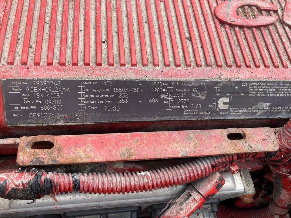 GOOD USED 2009 CUMMINS ISX 400HP DIESEL TAKEOUT ENGINE w/DPF EMISSIONS FOR SALE in CANTON, OHIO at ADELMAN’S TRUCK PARTS. 770,795 MILES SHOWING ON ECM, COMPLETE and RUN TESTED, 400 HP @ 1800 RPM, 2732 CPL #, JAKE BRAKES, CM871, EPA07, 9CEXH0912XAK FAMILY #, with PCM, EGR, & PTOX EMISSIONS CONTROL SYSTEMS, and 35+ LBS. OIL PRESSURE. ** HAS SOME TYPICAL ISX CAM WEAR.