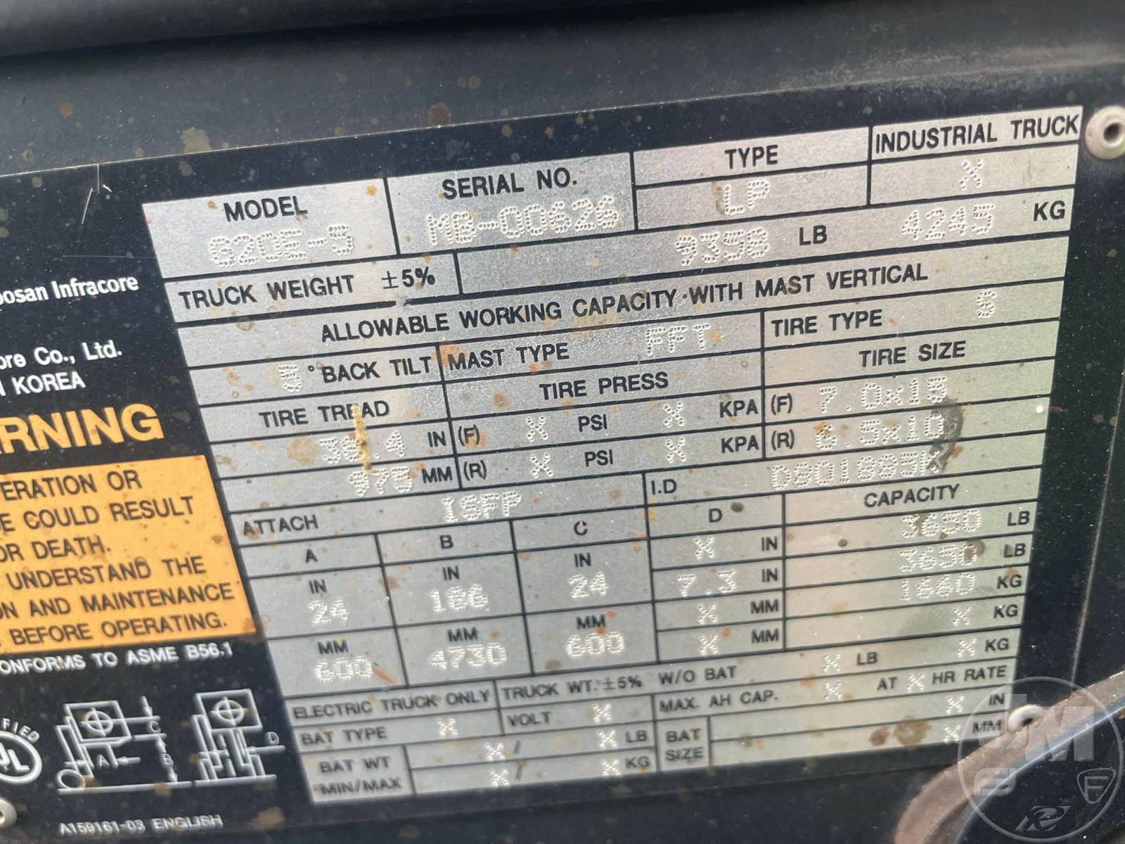FORKLIFT, CAB, LPG, FORK POSTITIONER, SIDE SHIFT, 48" FORKS, ****INOP****, ***NO LPG TANK***