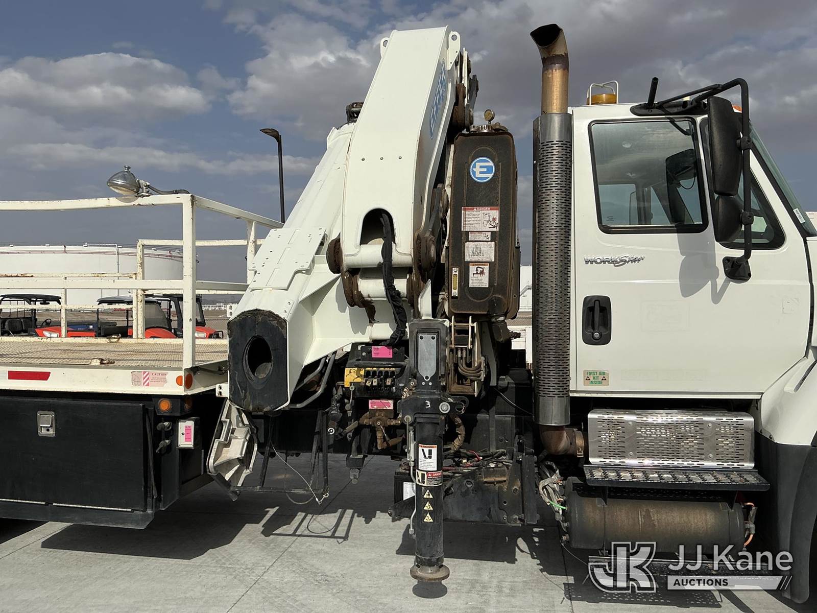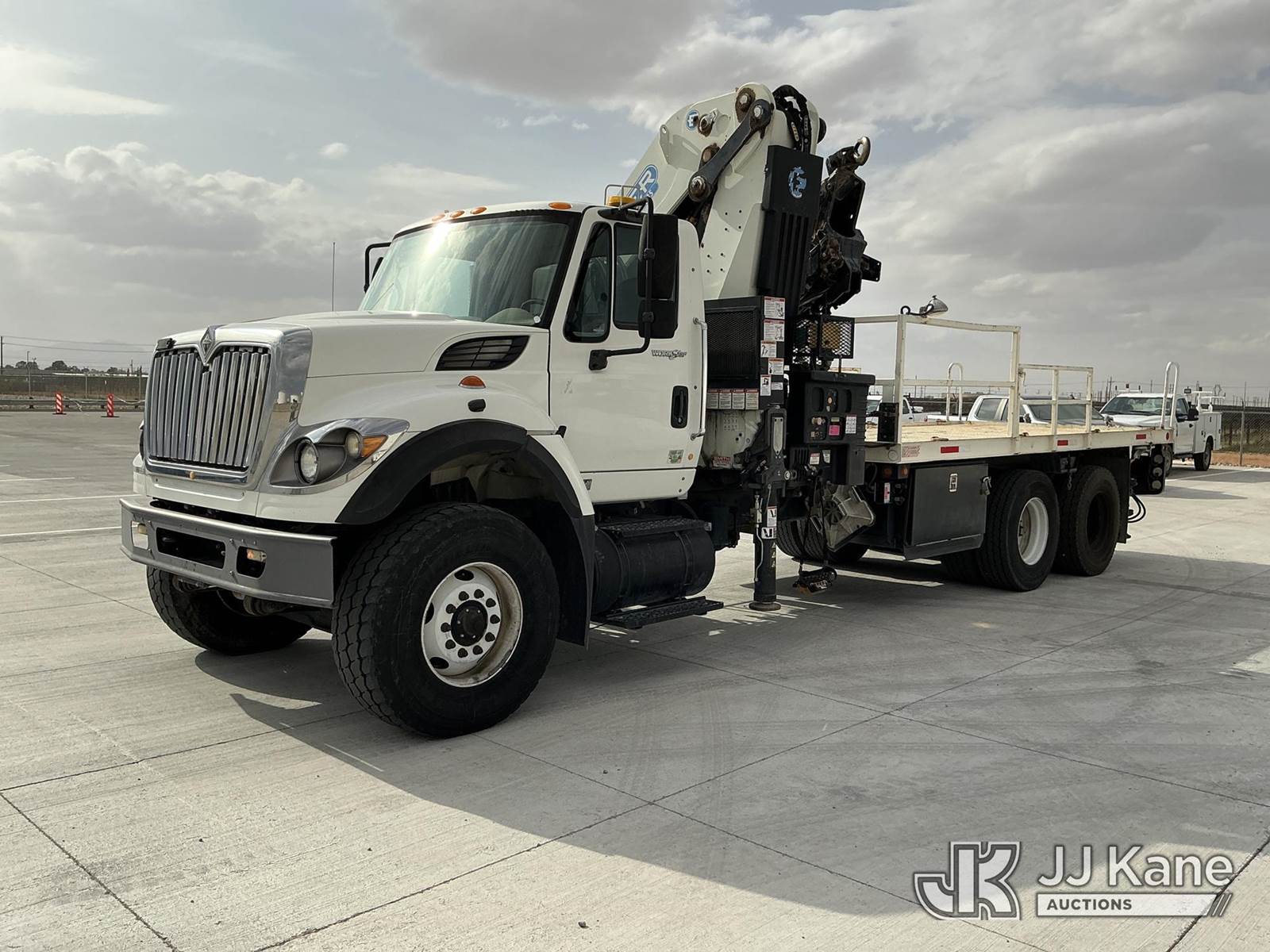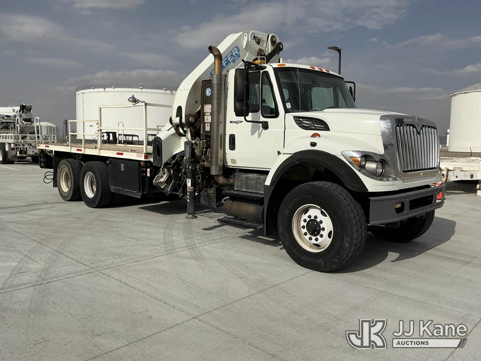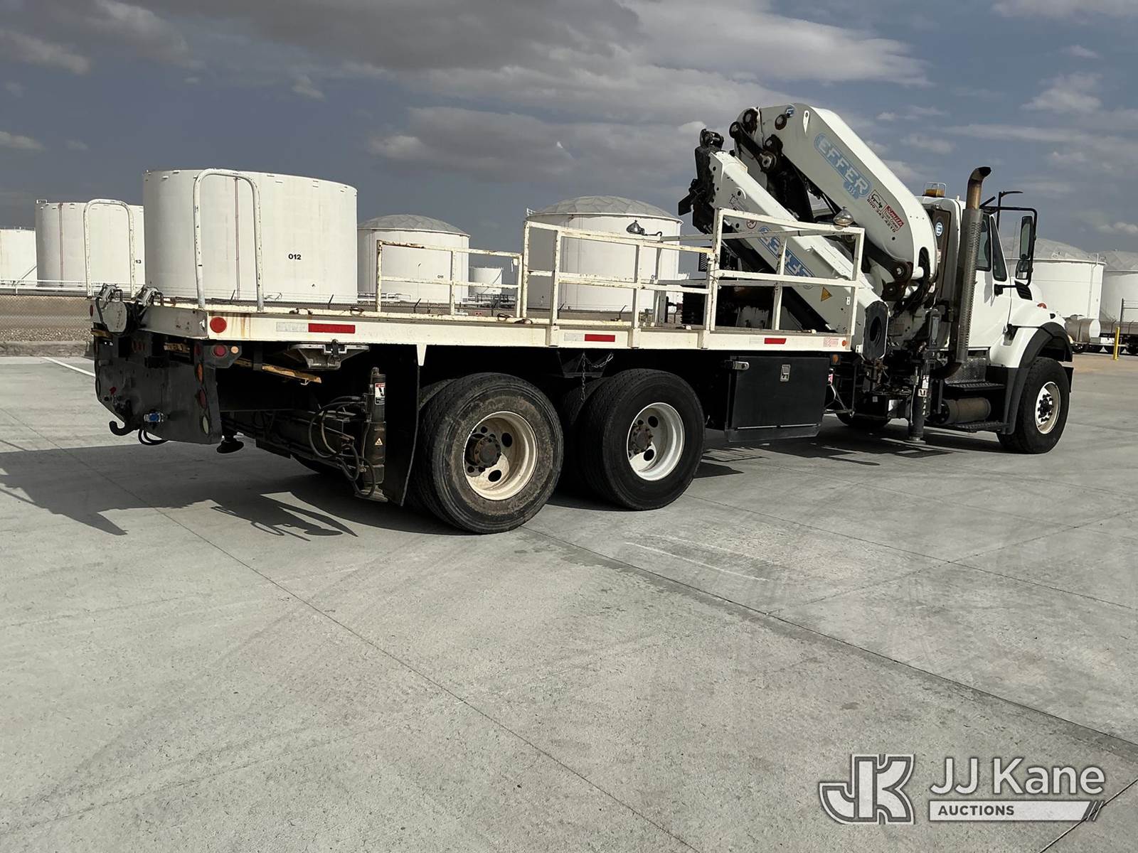 Effer 535/3S, 33 ft, Hydraulic Crane s/n 116974, with 4 Hydraulic Outriggers, mounted behind cab on 2009 International 7600 Flatbed/Service Truck, 10.8L L6 DIESEL 6X4, Auto, A/C, (82,906 miles) (Runs & Moves, Upper Does Not Operate Condition Unknown) (Jump To Start, Engine Warning Light On, Battery Positive Cable Is Disconnected Horn Would Not Shut Off, Paint/Body Damage ) (Reads 6,369 hours) This is a Titled Item NOTE: This unit is being sold AS IS/WHERE IS via Timed Auction and is located in El Paso, TX. For pre-sale questions please call EJ Brown at (915) 341-2565. For load out and pick-up information, please reference the release form sent after purchase. (Missing manuals, See Auction Company for Manufacturers Information to obtain manuals) (Buyer is responsible for removal. Assistance by consignor or JJ Kane Auctions is not assured.)