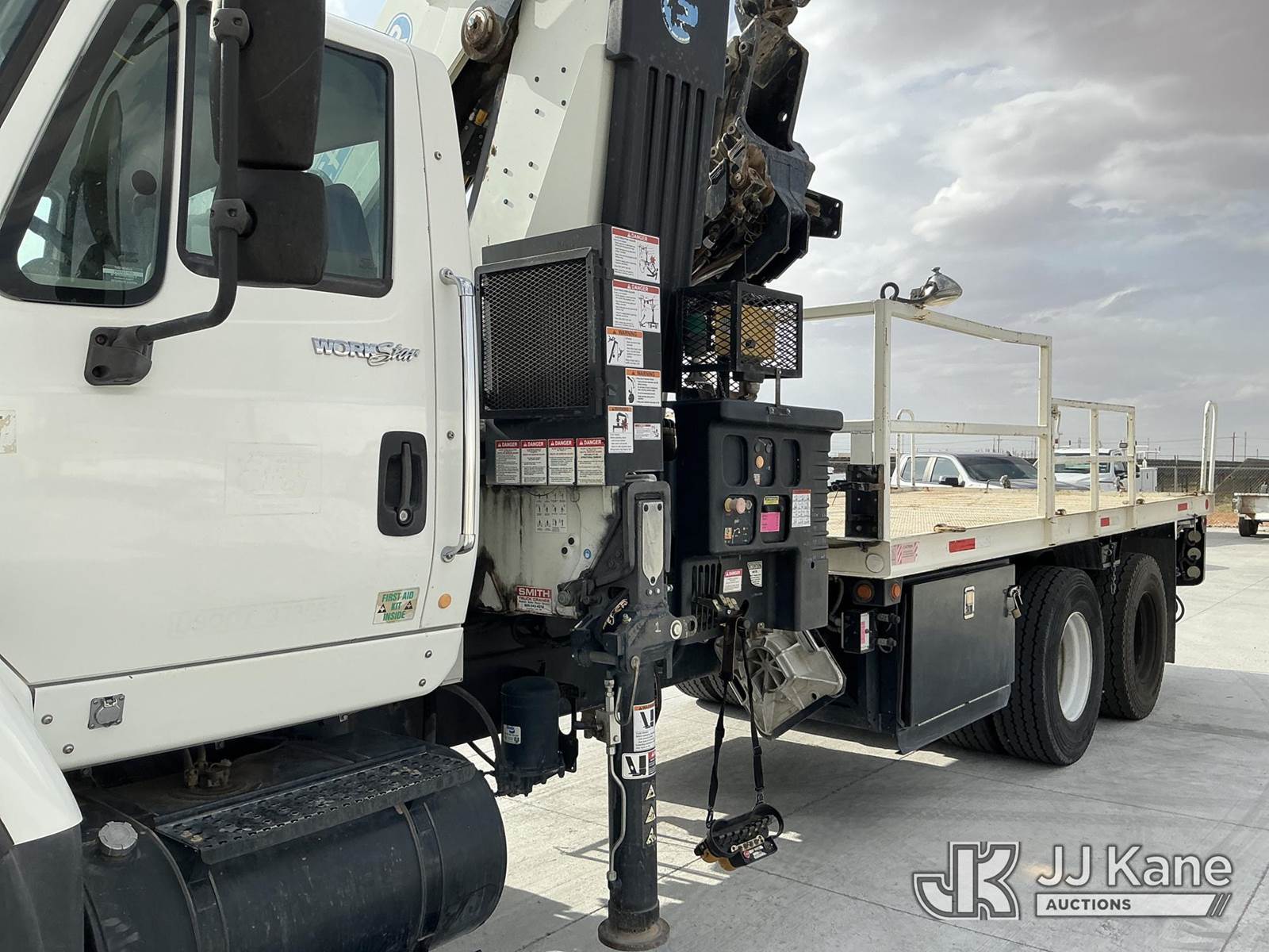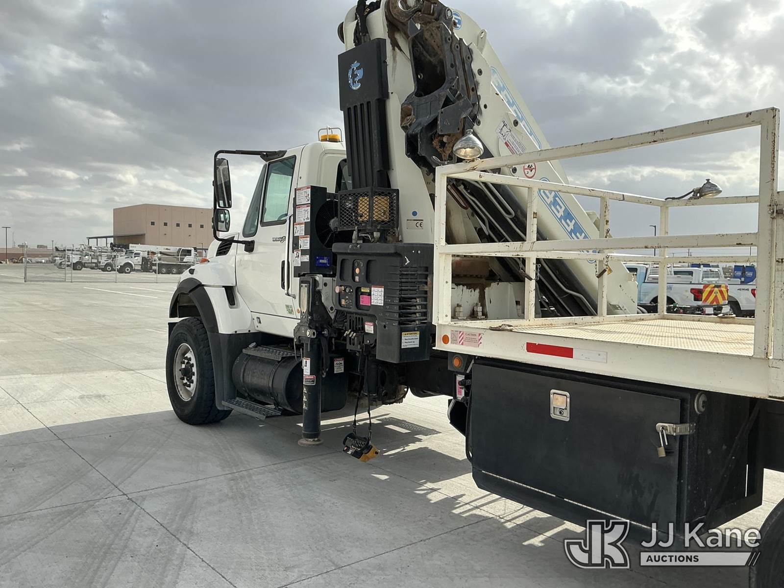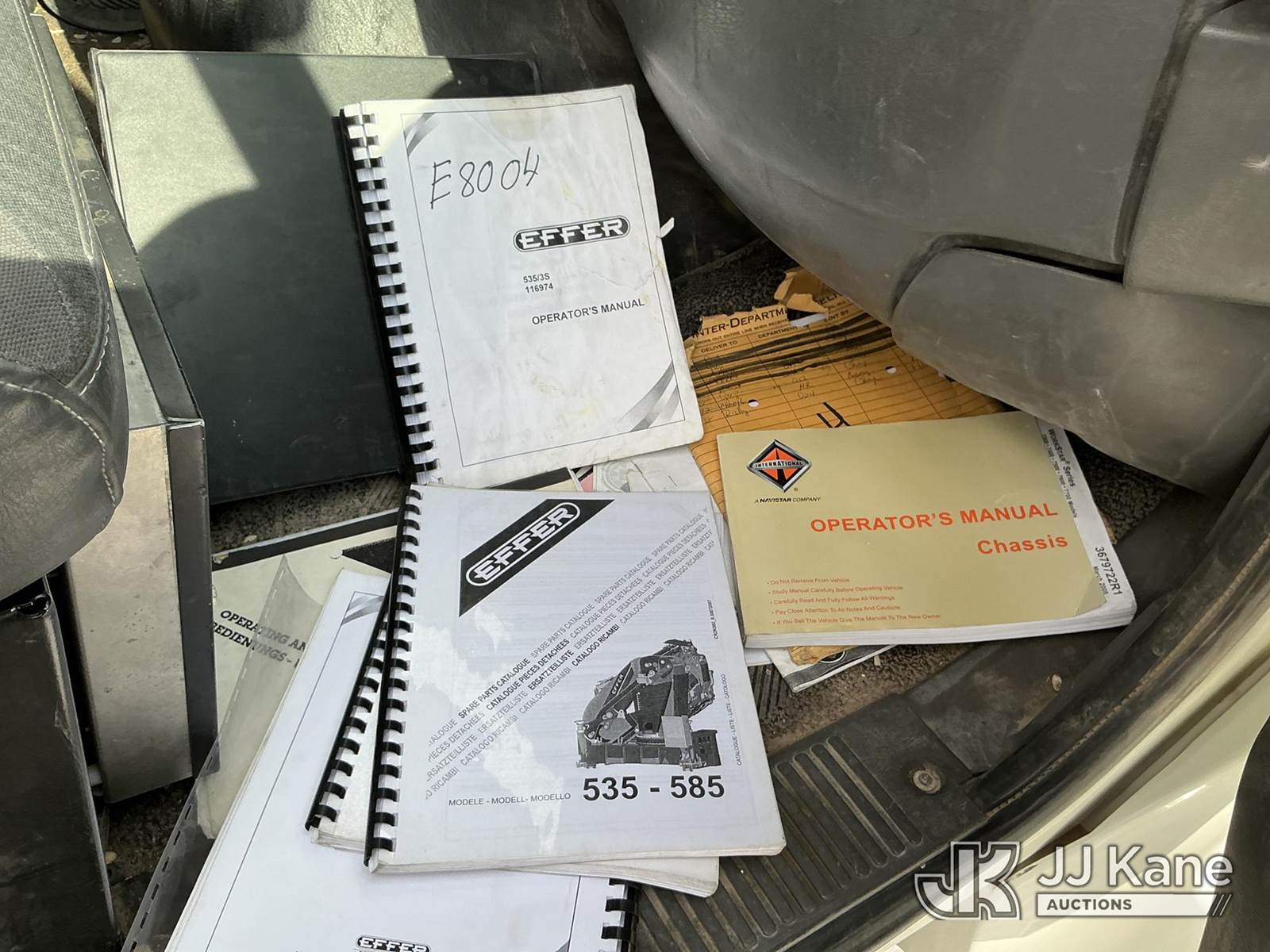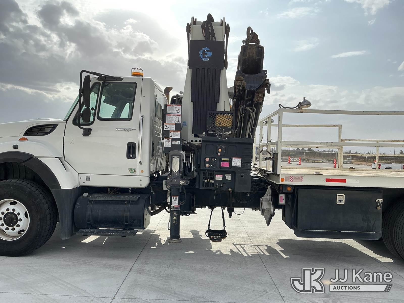 Effer 535/3S, 33 ft, Hydraulic Crane s/n 116974, with 4 Hydraulic Outriggers, mounted behind cab on 2009 International 7600 Flatbed/Service Truck, 10.8L L6 DIESEL 6X4, Auto, A/C, (82,906 miles) (Runs & Moves, Upper Does Not Operate Condition Unknown) (Jump To Start, Engine Warning Light On, Battery Positive Cable Is Disconnected Horn Would Not Shut Off, Paint/Body Damage ) (Reads 6,369 hours) This is a Titled Item NOTE: This unit is being sold AS IS/WHERE IS via Timed Auction and is located in El Paso, TX. For pre-sale questions please call EJ Brown at (915) 341-2565. For load out and pick-up information, please reference the release form sent after purchase. (Missing manuals, See Auction Company for Manufacturers Information to obtain manuals) (Buyer is responsible for removal. Assistance by consignor or JJ Kane Auctions is not assured.)