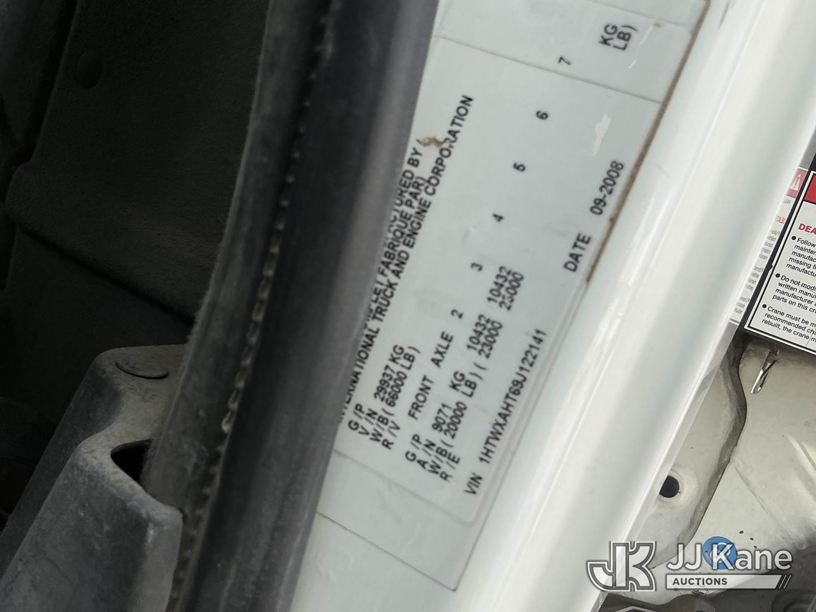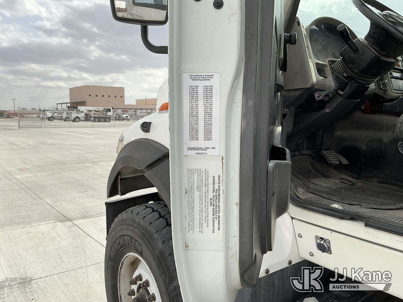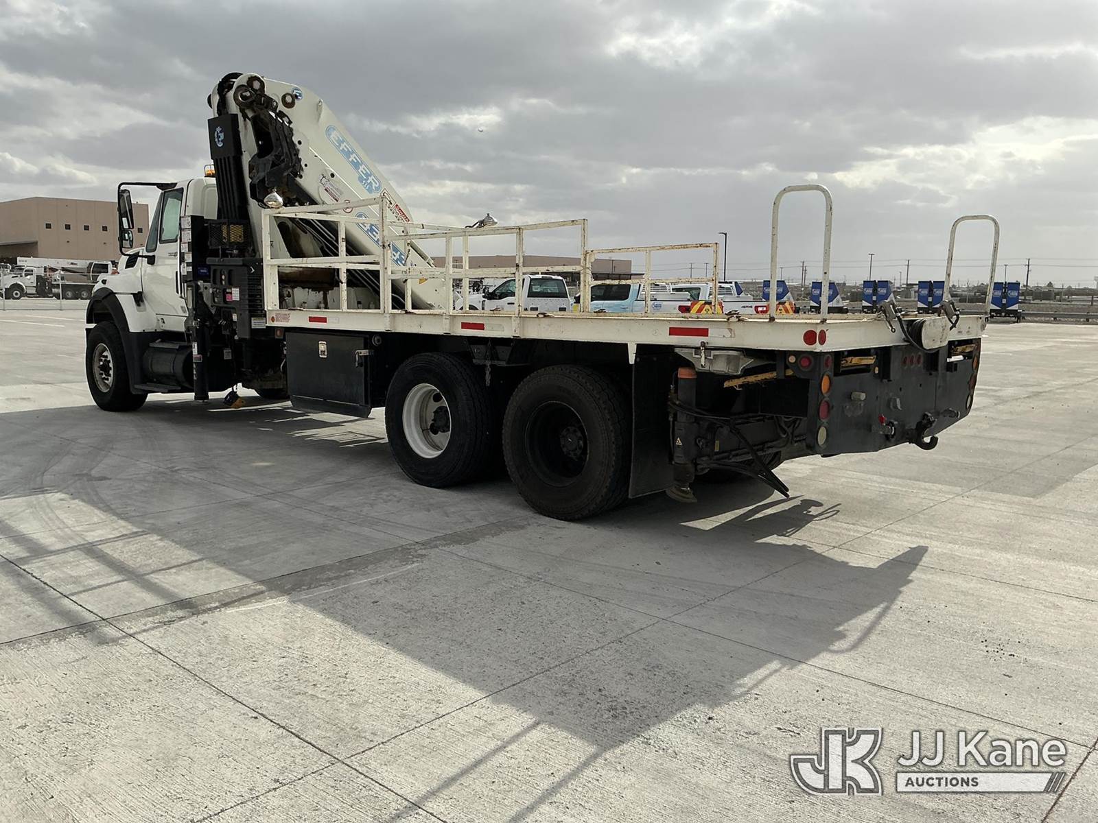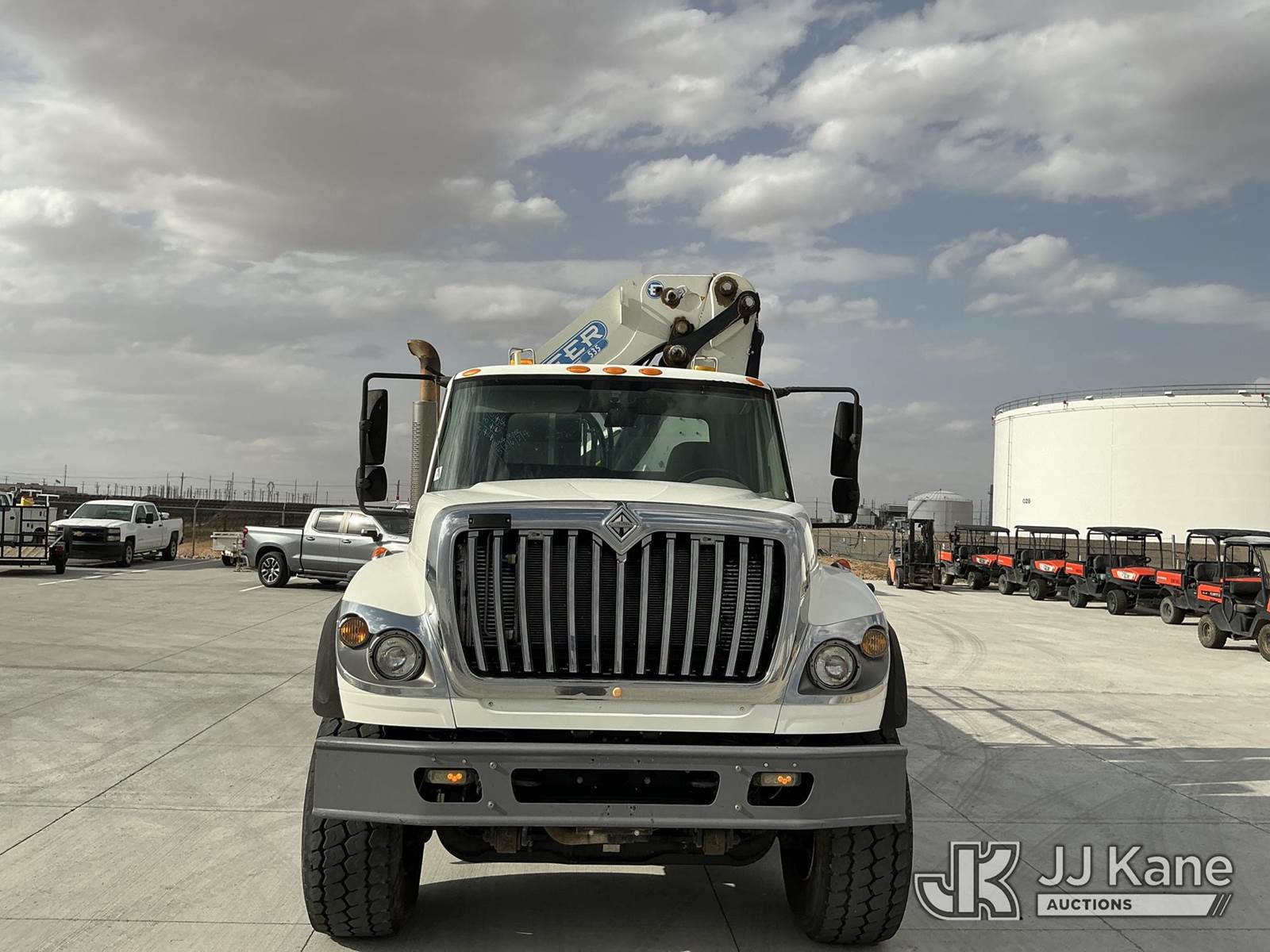 Effer 535/3S, 33 ft, Hydraulic Crane s/n 116974, with 4 Hydraulic Outriggers, mounted behind cab on 2009 International 7600 Flatbed/Service Truck, 10.8L L6 DIESEL 6X4, Auto, A/C, (82,906 miles) (Runs & Moves, Upper Does Not Operate Condition Unknown) (Jump To Start, Engine Warning Light On, Battery Positive Cable Is Disconnected Horn Would Not Shut Off, Paint/Body Damage ) (Reads 6,369 hours) This is a Titled Item NOTE: This unit is being sold AS IS/WHERE IS via Timed Auction and is located in El Paso, TX. For pre-sale questions please call EJ Brown at (915) 341-2565. For load out and pick-up information, please reference the release form sent after purchase. (Missing manuals, See Auction Company for Manufacturers Information to obtain manuals) (Buyer is responsible for removal. Assistance by consignor or JJ Kane Auctions is not assured.)