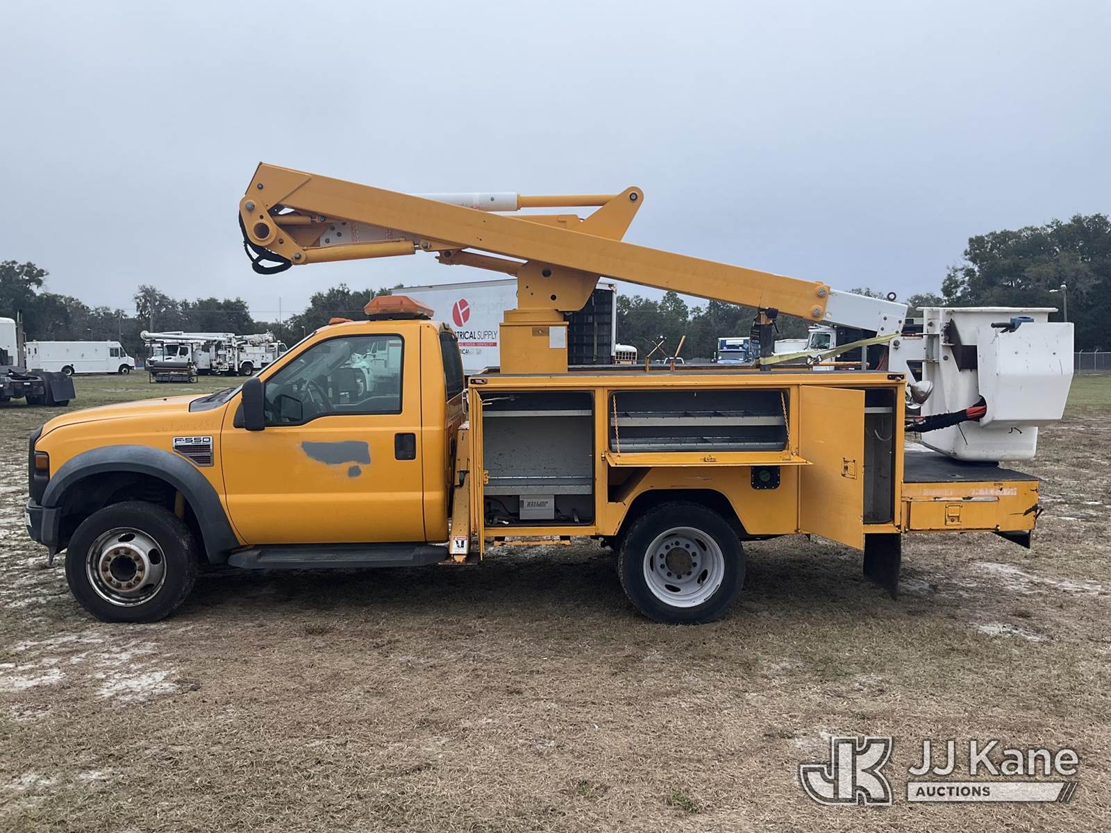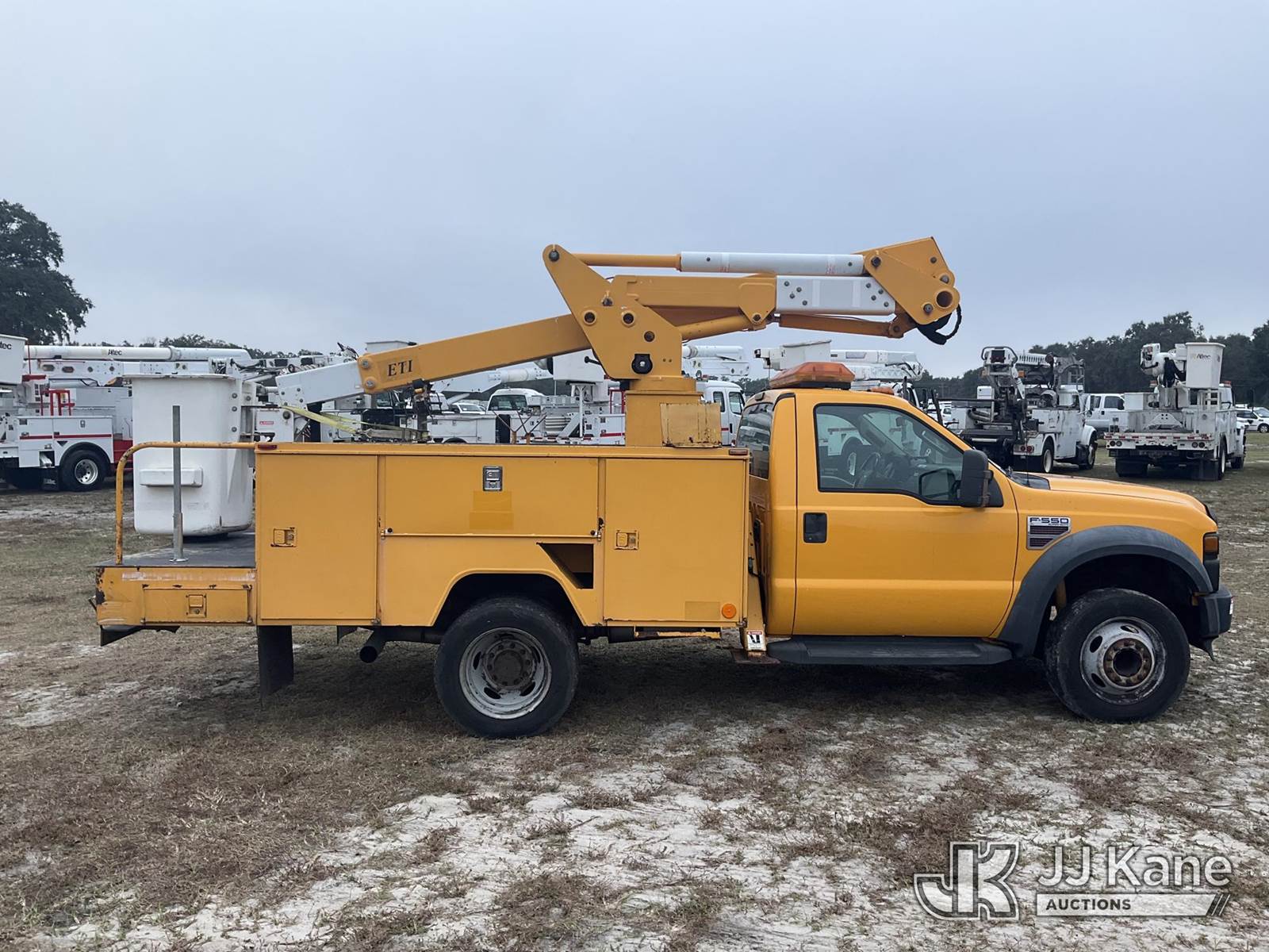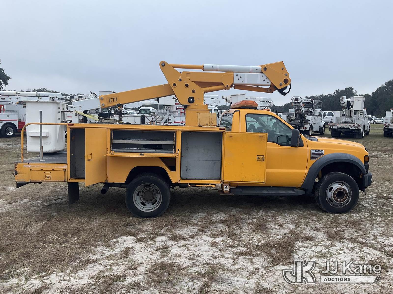 ETI ETC37-IH, 42 ft, Articulating & Telescopic Non-Insulated Bucket Truck s/n 1008C76446, with single-man bucket & 2 hyd outriggers, mounted behind cab on 2009 Ford F-550 Service Truck, 6.4L V8 OHV 32V TURBO DIESEL Auto, RWD, A/C, (76,145 miles) True Mileage Unknown (Runs, Moves, Operates) (Paint Damage) (Exempt from Odometer Disclosure) (FL Residents Purchasing Titled Items - tax, title & registration fees will be collected at the maximum rate of $400.00 under 25,999 and $800.00 for Over 26,000 and $250.00 trailers - Proof of insurance is mandatory; Out of State Residents Purchasing Title Items - tax will be collected based upon your state rate.) (Reads 2,613 hours) This is a Titled Item NOTE: This unit is being sold AS IS/WHERE IS via Timed Auction and is located in Thonotosassa, FL. Inspection & preview days for this unit are the 2 business days prior to the first day of items closing for this auction, item is located at 11720 N US 301 Thonotosassa, Fl 33592 and hours of operations are 8a-4p. For pre-sale questions, please contact Office Staff @ (813) 986-2485. (Missing manuals, See Auction Company for Manufacturers Information to obtain manuals) (Buyer is responsible for removal. Assistance by consignor or JJ Kane Auctioneers is not assured.)