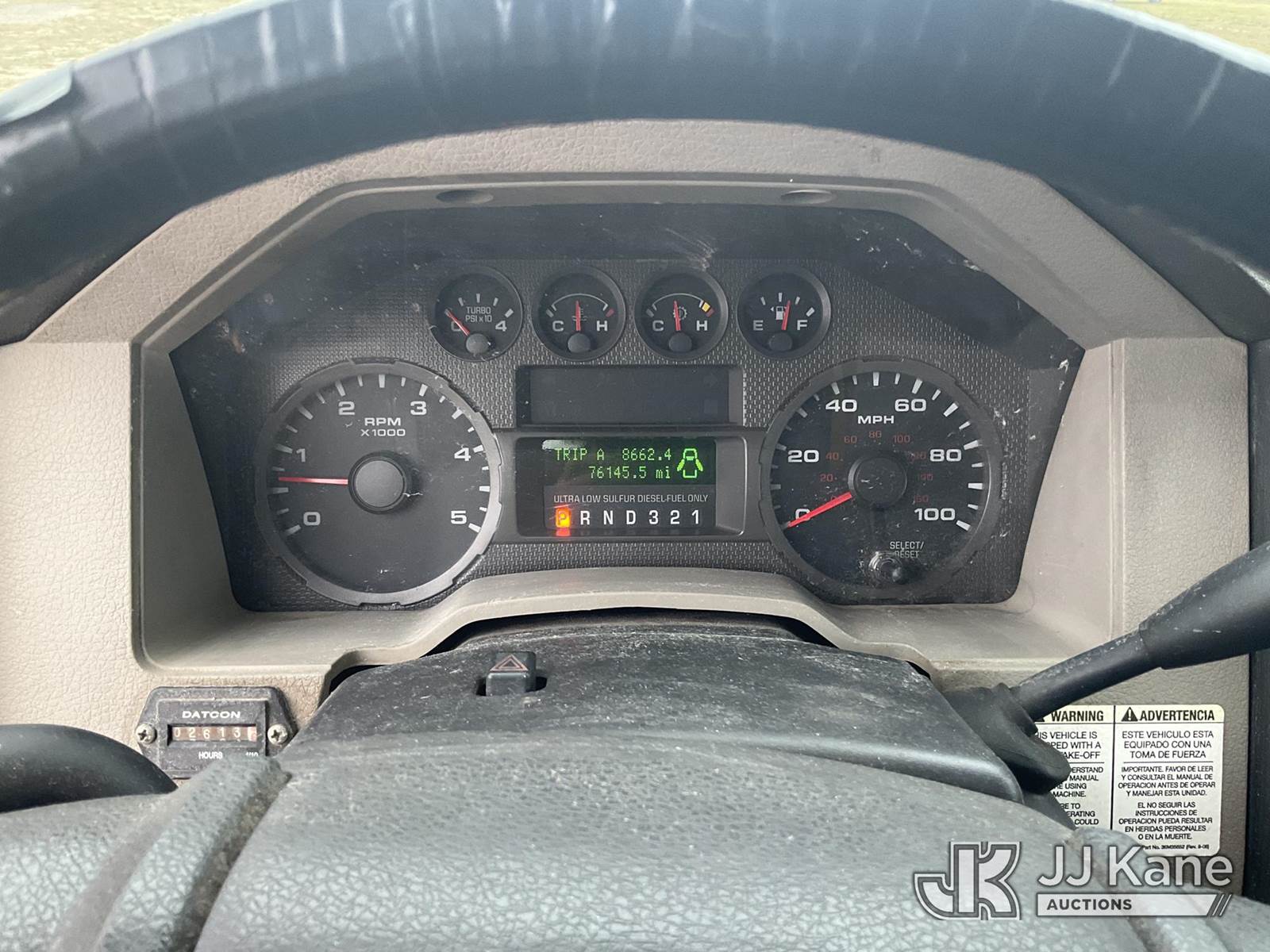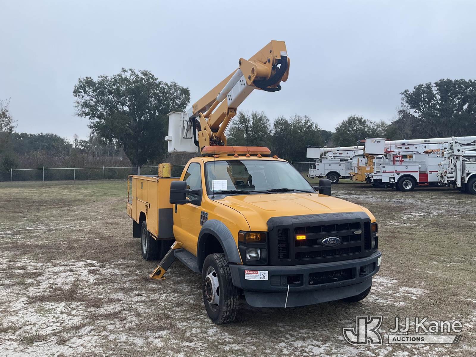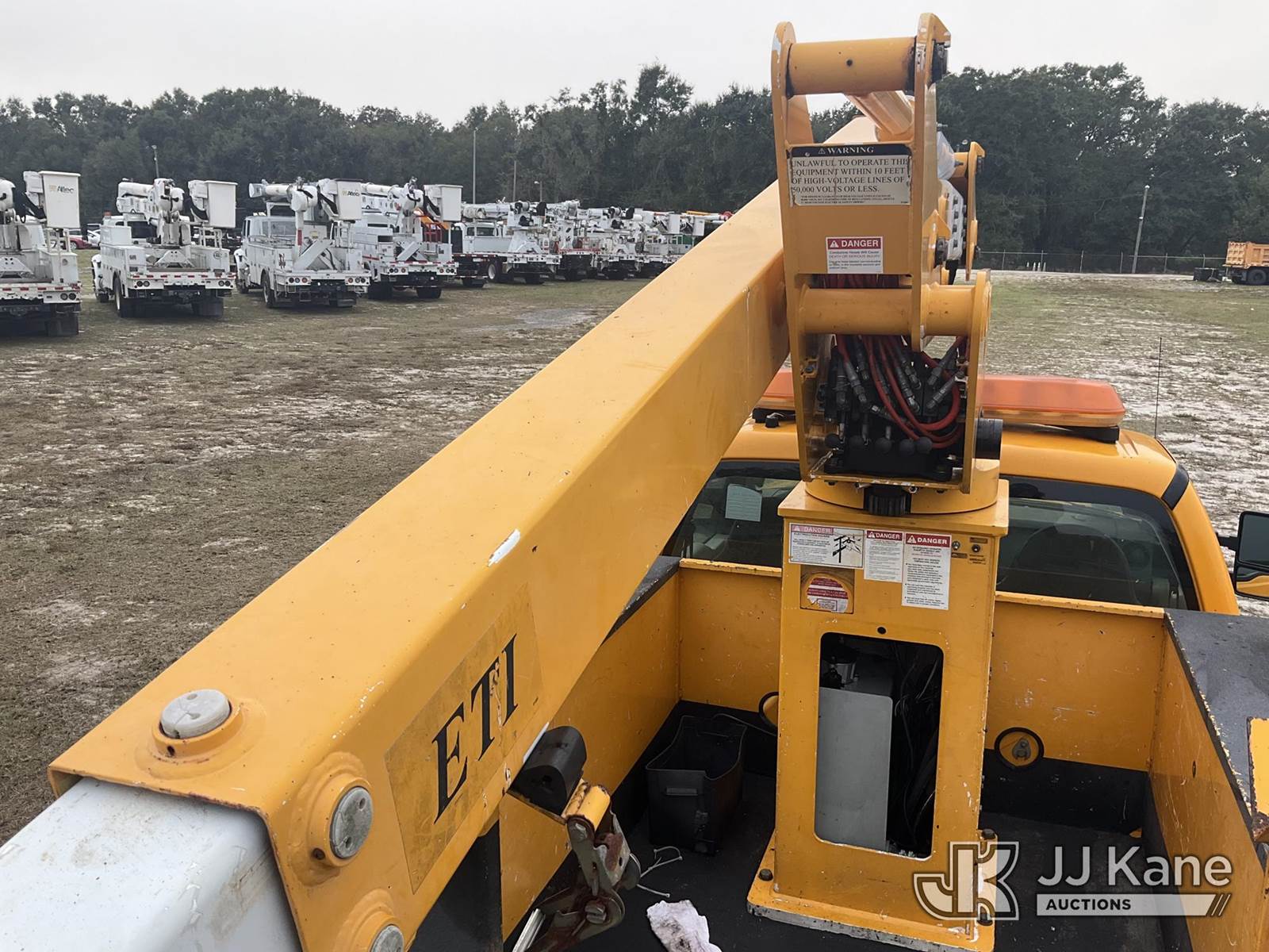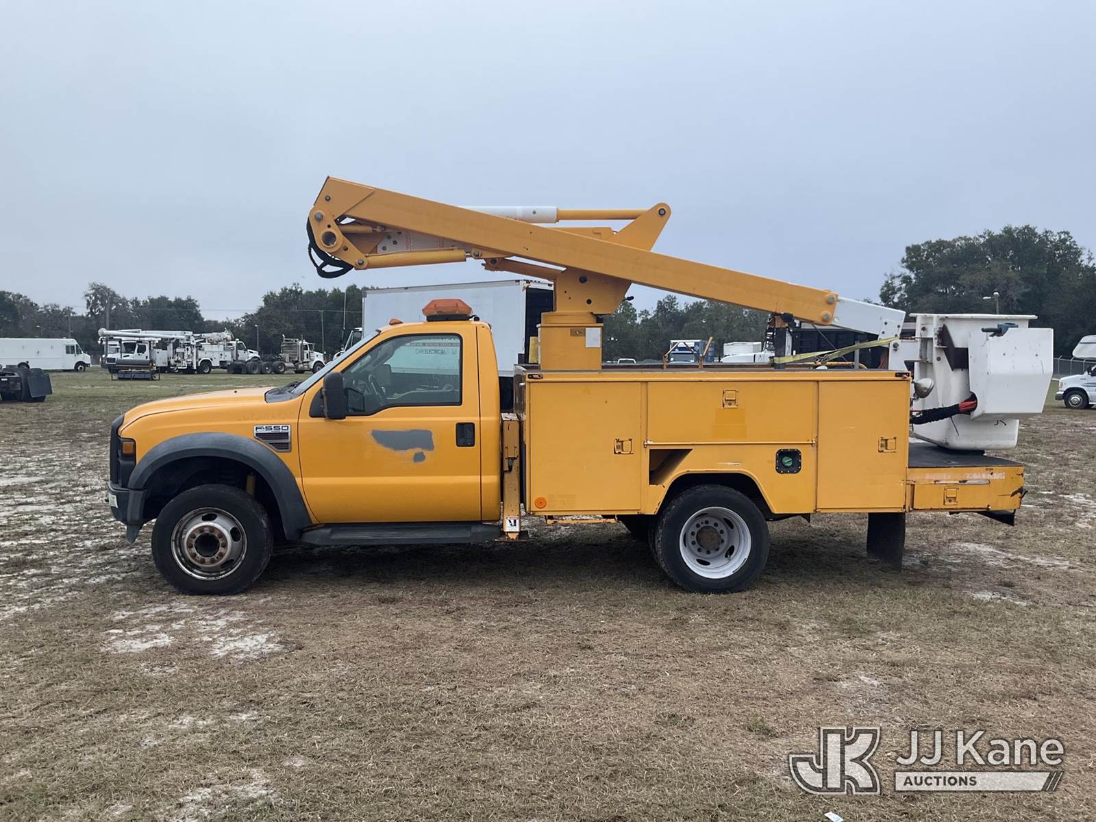 ETI ETC37-IH, 42 ft, Articulating & Telescopic Non-Insulated Bucket Truck s/n 1008C76446, with single-man bucket & 2 hyd outriggers, mounted behind cab on 2009 Ford F-550 Service Truck, 6.4L V8 OHV 32V TURBO DIESEL Auto, RWD, A/C, (76,145 miles) True Mileage Unknown (Runs, Moves, Operates) (Paint Damage) (Exempt from Odometer Disclosure) (FL Residents Purchasing Titled Items - tax, title & registration fees will be collected at the maximum rate of $400.00 under 25,999 and $800.00 for Over 26,000 and $250.00 trailers - Proof of insurance is mandatory; Out of State Residents Purchasing Title Items - tax will be collected based upon your state rate.) (Reads 2,613 hours) This is a Titled Item NOTE: This unit is being sold AS IS/WHERE IS via Timed Auction and is located in Thonotosassa, FL. Inspection & preview days for this unit are the 2 business days prior to the first day of items closing for this auction, item is located at 11720 N US 301 Thonotosassa, Fl 33592 and hours of operations are 8a-4p. For pre-sale questions, please contact Office Staff @ (813) 986-2485. (Missing manuals, See Auction Company for Manufacturers Information to obtain manuals) (Buyer is responsible for removal. Assistance by consignor or JJ Kane Auctioneers is not assured.)