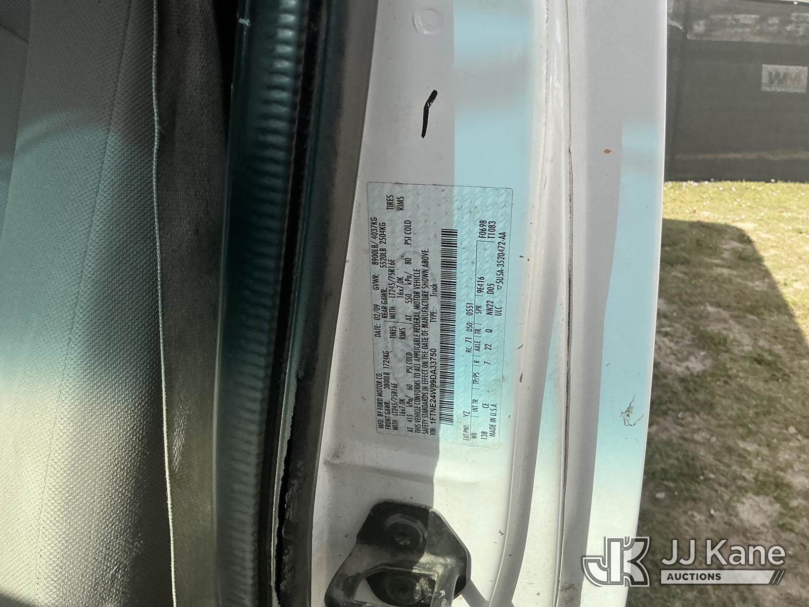 2009 Ford E250 Cargo Van, 4.6L V8 SOHC 16V gas, 4-Speed Automatic, RWD, A/C, (287,753 miles) (Runs & Moves) (Runs Rough, Check Engine Light On, ABS Light On, Cracked Windshield, Paint Damage, Interior Mold, Rear Doors IN/OP, Transmission Issues)(FL Residents Purchasing Titled Items - tax, title & registration fees will be collected at the maximum rate of $400.00 under 25,999 and $800.00 for Over 26,000 and $250.00 trailers - Proof of insurance is mandatory; Out of State Residents Purchasing Title Items - tax will be collected based upon your state rate.) This is a Titled Item NOTE: This unit is being sold AS IS/WHERE IS via Timed Auction and is located in Thonotosassa, FL. Inspection & preview days for this unit are the 2 business days prior to the first day of items closing for this auction, item is located at 11720 N US 301 Thonotosassa, Fl 33592 and hours of operations are 8a-4p. For pre-sale questions, please contact Office Staff @ (813) 986-2485. (Buyer is responsible for removal. Assistance by consignor or JJ Kane Auctions is not assured.)