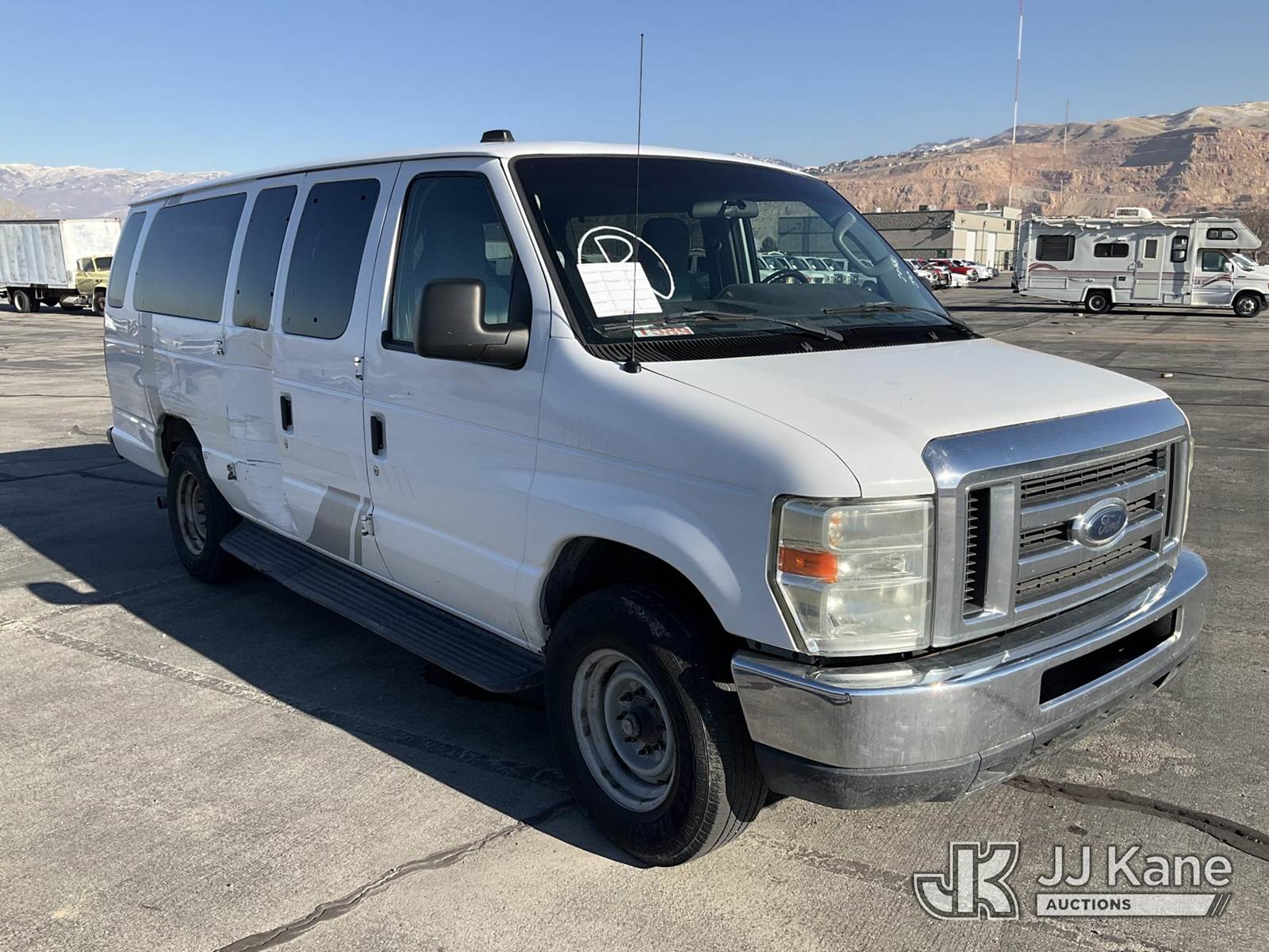 2009 Ford E350 Passenger Bus, 8-cyl gas, Auto, A/C, (168,755 miles) (Runs & Moves) (Airbag Light On, Body Damage, Rear Passenger Doors Don’t Open) This is a Titled Item NOTE: This unit is being sold AS IS/WHERE IS via Timed Auction and is located in Salt Lake City, UT. Inspection & preview days for this unit are the 2 business days prior to the first day of items closing for this auction, item is located at 2353 N Redwood Rd Salt Lake City, UT 84116 and hours of operations are 8a-4p. Titles executed exactly as bidder registered. Ensure your name and/or business name and address in JJ Kane and/or ProxiBid is correct before bidding. For pre-sale questions, please contact Office Staff @ (801) 519-0123. (Buyer is responsible for removal. Assistance by consignor or JJ Kane Auctions is not assured.)