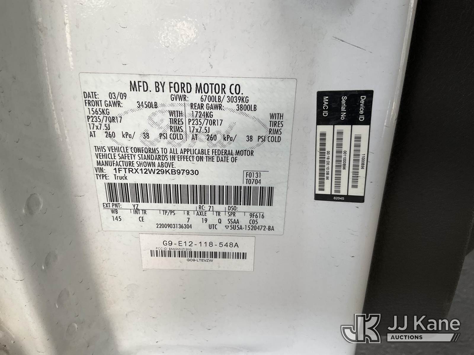 2009 Ford F-150 Extended-Cab Pickup Truck, 8-cyl gas, Auto, A/C, with Tow package, bedcover, (95,593 miles) (Runs & Moves) This is a Titled Item NOTE: This unit is being sold AS IS/WHERE IS via Timed Auction and is located in Jurupa Valley, CA. Inspection & preview days for this unit are the 2 business days prior to the first day of items closing for this auction, item is located at 4510 Muth Way Jurupa Valley, CA 92509 and hours of operations are 8a-4p. For pre-sale questions, please contact please contact Office Staff @ (310) 353-7140. Dealer License Number 45696. (Buyer is responsible for removal. Assistance by consignor or JJ Kane Auctions is not assured.)