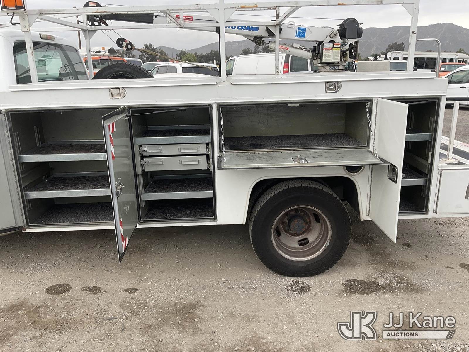 2009 Ford F-350 SD Mechanics Service Truck, 8-cyl gas, Auto, A/C, with Tow Package, Auto Crane 3203 PRX w/ Remote Control, (076,168 miles) (Runs & Moves) (Crane Operates) This is a Titled Item NOTE: This unit is being sold AS IS/WHERE IS via Timed Auction and is located in Jurupa Valley, CA. Inspection & preview days for this unit are the 2 business days prior to the first day of items closing for this auction, item is located at 4510 Muth Way Jurupa Valley, CA 92509 and hours of operations are 8a-4p. For pre-sale questions, please contact please contact Office Staff @ (310) 353-7140. Dealer License Number 45696. (Buyer is responsible for removal. Assistance by consignor or JJ Kane Auctions is not assured.)