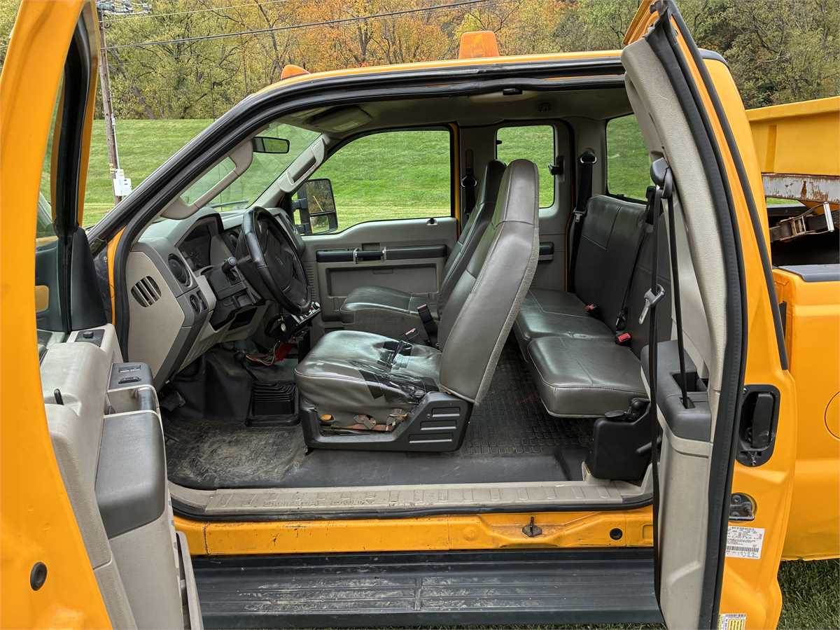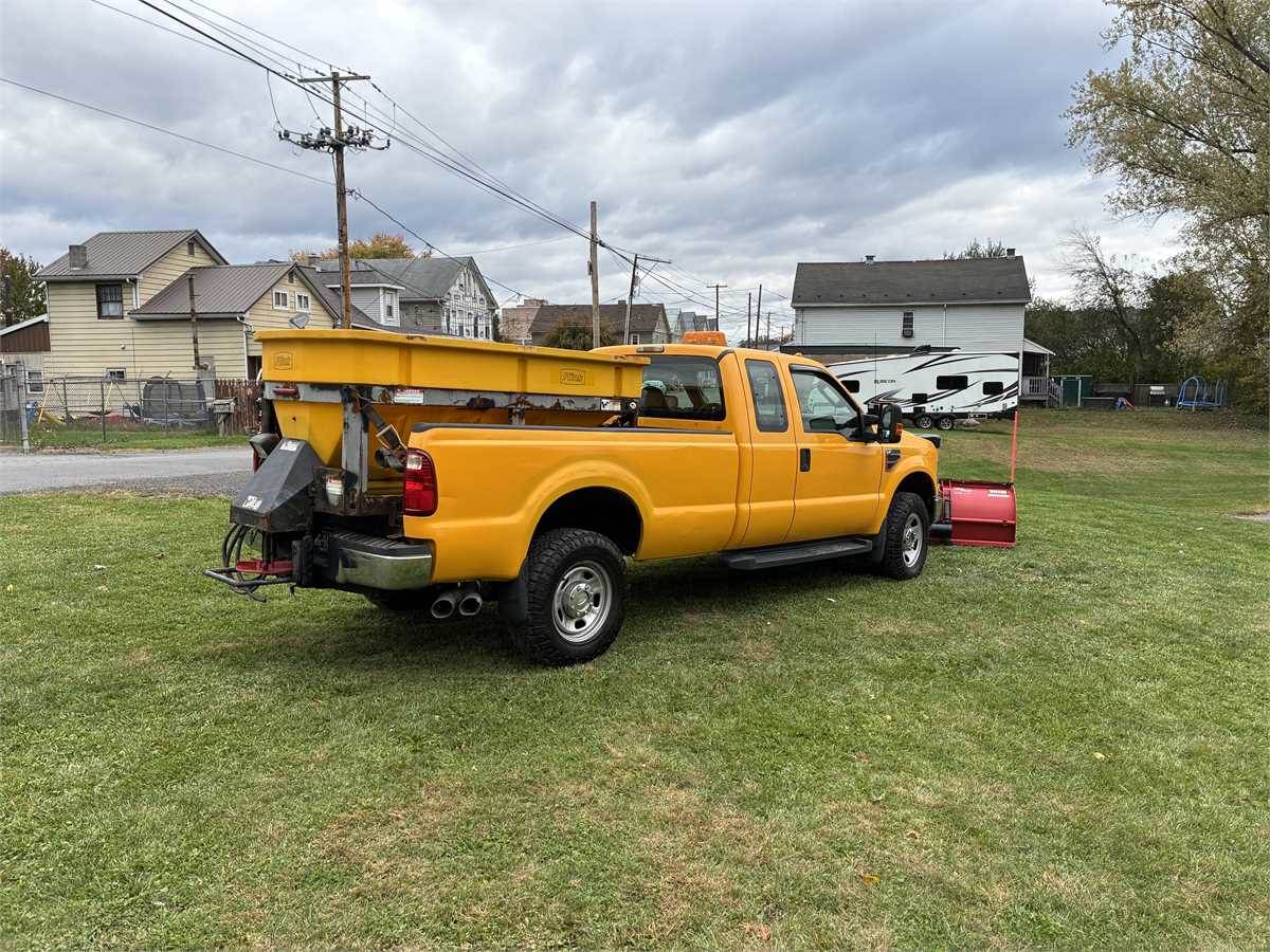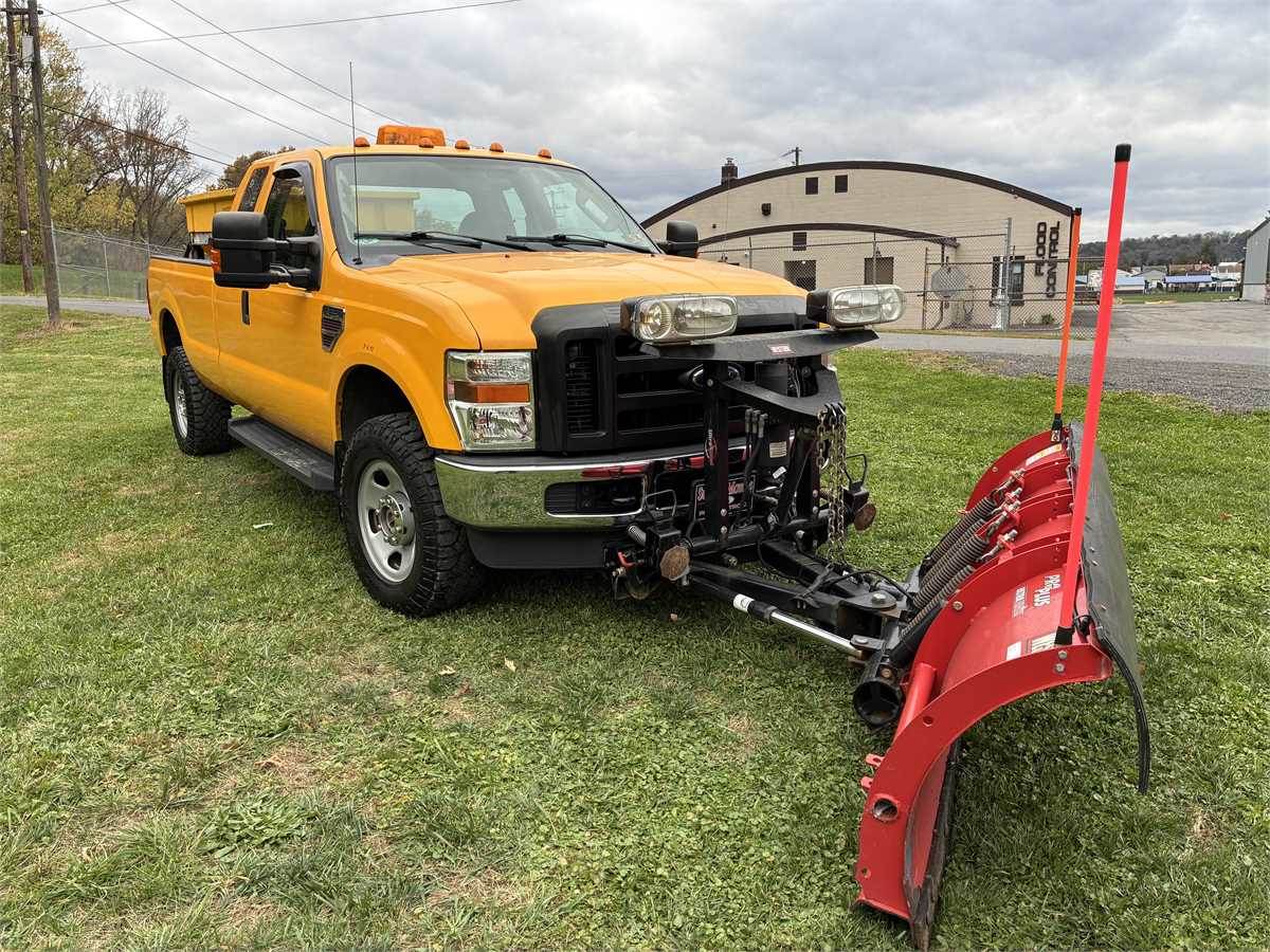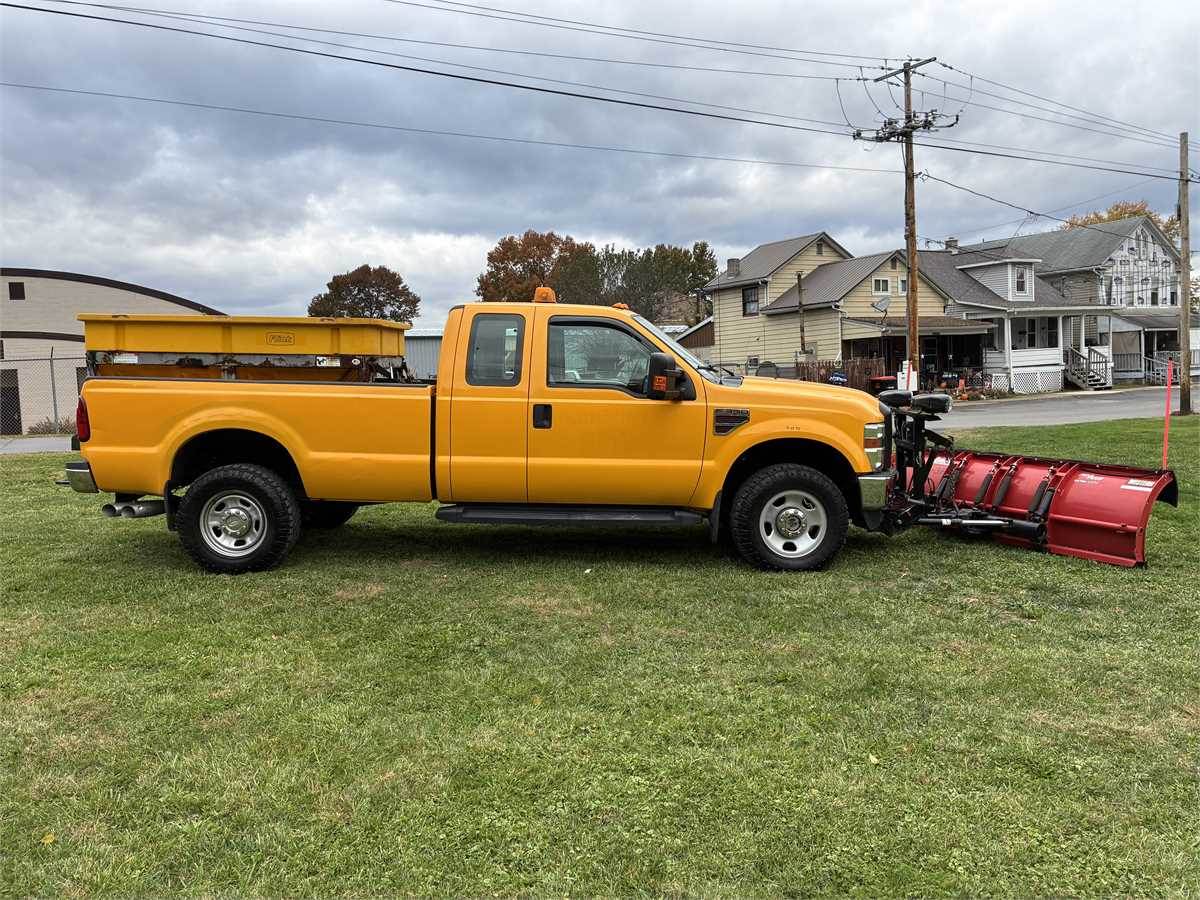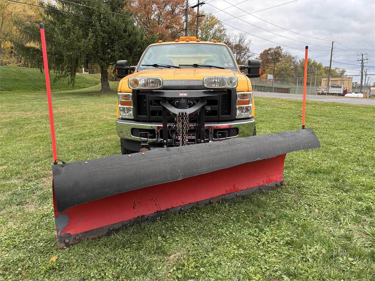 Just retired city street department truck with 6.4 liter Powerstroke V8 Turbo Diesel engine, AC, auto trans, locking front hubs, aluminum Flink spreader and 8' Western Pro Plus Snow Plow. Truck was just inspected, replaced front brake pads, outer tie rod, upper and lower balls joints, front axle joints and seals. Maintenance records available. Truck was always kept inside when not in use.