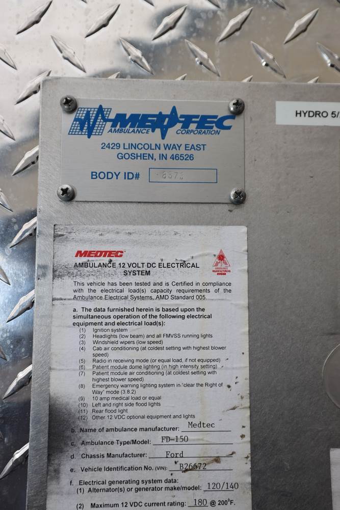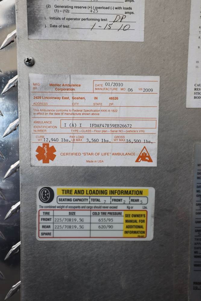 2009 Ford F-450 Super Duty XLT 4x4 Type I Ambulance. Mfg. by Medtec Ambulance Corp. Odometer reading: 61,765. VIN: 1FDAF47R59EB26672. Body: Chassis 2D. Engine: Power Stroke 6.4L V8 CRDI Diesel. Seller reports: Runs, drives, operates, no known problems. Title & Key available. Stretcher Not Included.