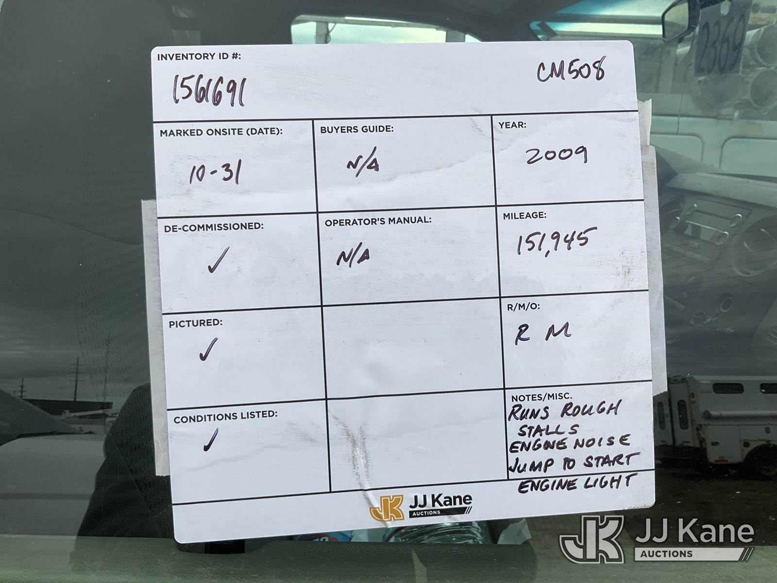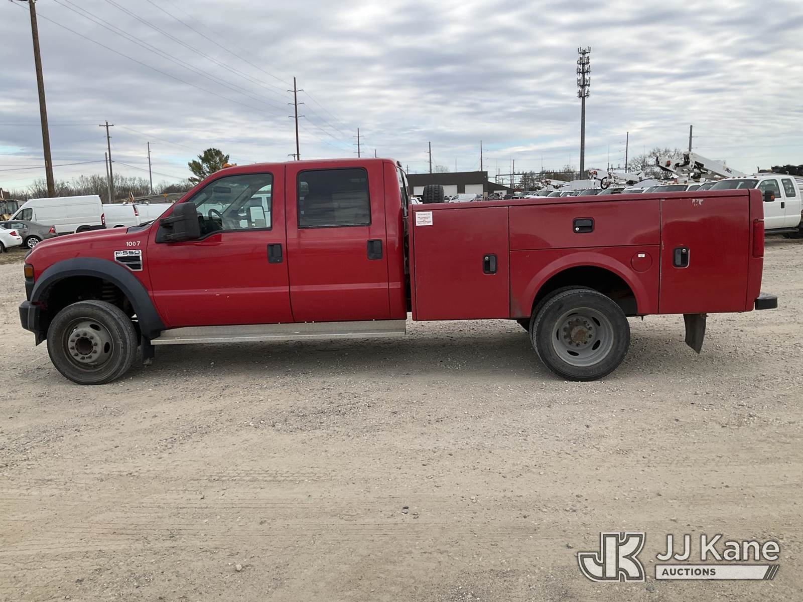 2009 Ford F-550 Crew Cab 2WD DRW Crew-Cab Service Truck, 6.8L V10 SOHC 30V 6-spd, Gas, A/C, with fifth wheel hitch, (151,945 miles) (Runs Rough & Moves) (Jump to Start, Stalls Frequently, Will Not Stay Running, Engine Light, One Bin Door Will Not Latch, One Bin Door Will Not Open) This is a Titled Item NOTE: This unit is being sold AS IS/WHERE IS via Timed Auction and is located in Charlotte, MI. Inspection & preview days for this unit are the 2 business days prior to the first day of items closing for this auction, item is located at 750 Island Hwy Charlotte, MI 48813 and hours of operations are 8a-4p. For pre-sale questions, please contact Corey Cook at (517) 983-0796 or corey.cook@jjkane.com (Buyer is responsible for removal. Assistance by consignor or JJ Kane Auctioneers is not assured.)