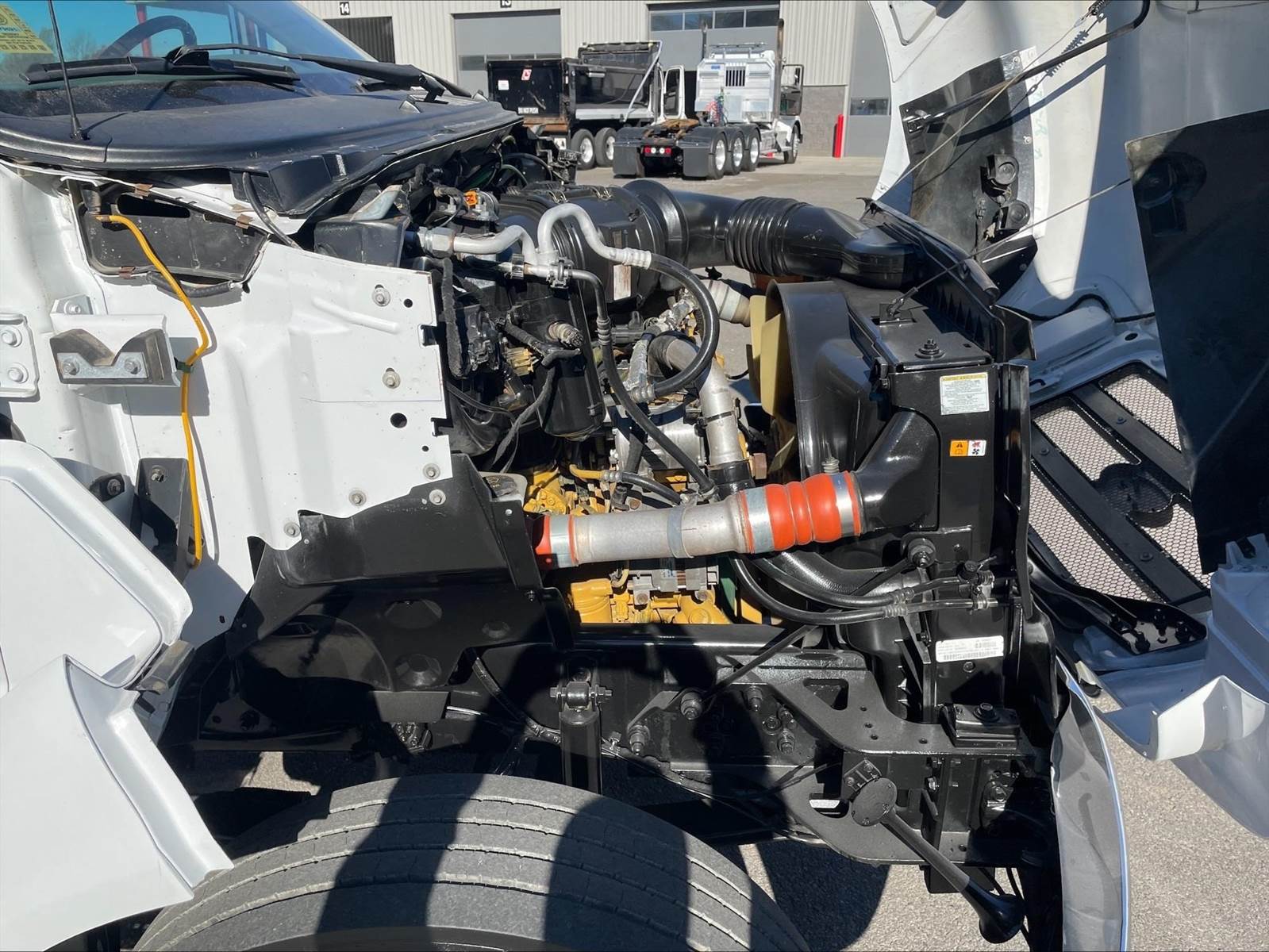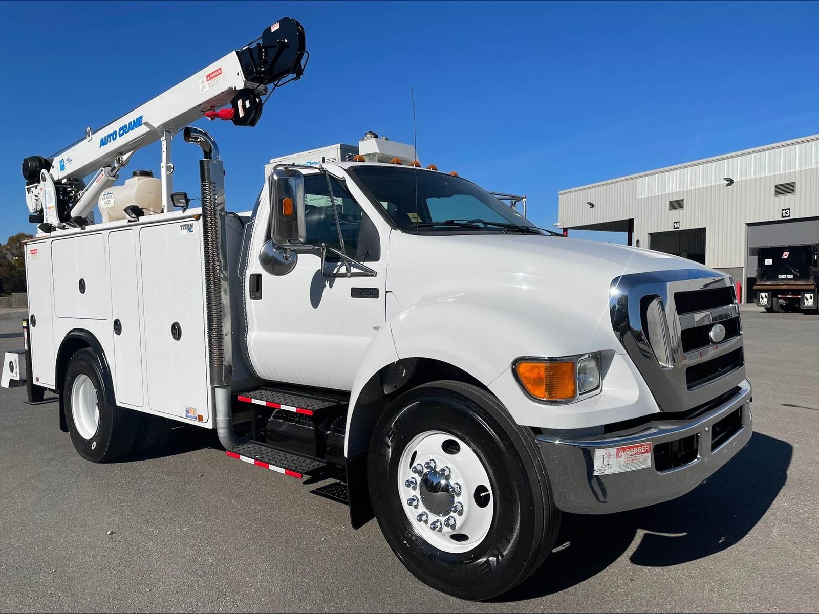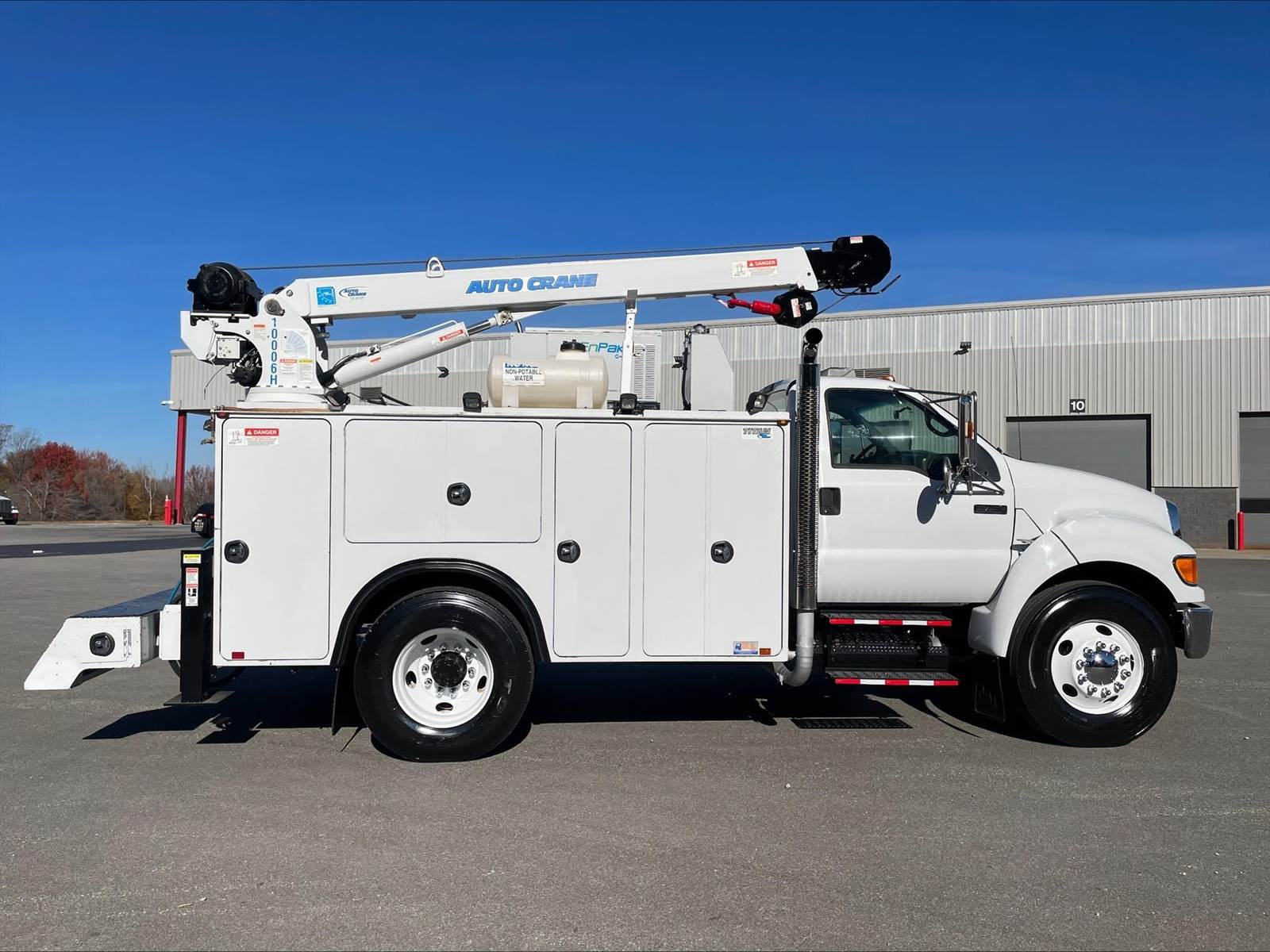 Single Axle, 11' AutoCrane Service Body, Miller-ENPAK with Kubota Diesel, AutoCrane 100006H Crane, (9) 28" Drawers, Hydraulic Outriggers, C7 Cat, 7 Speed, Spring Suspension, 10K FA, 21K RA, 158" WB, P/S, A/C, AM/FM CD, Cruise, Tilt Wheel, Power Windows and Locks, 11R22.5 Tires on Steel Wheels, Chrome Bumper
