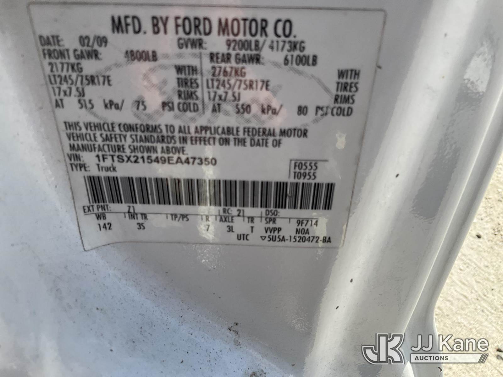2009 Ford F250 4x4 Extended-Cab Pickup Truck, 8-cyl gas, Auto, A/C, with fuel transfer tank, air compressor, True Mileage Unknown (Not Running, Condition Unknown, Drivers Door Window Glass & Mirror Missing, Drivers Door Panel Off, Rust Damage) This is a Titled Item NOTE: This unit is being sold AS IS/WHERE IS via Timed Auction and is located in Chester, VA. Inspection & preview days for this unit are the 2 business days prior to the first day of items closing for this auction, item is located at 1840 Battery Dantzler Ct. Chester, VA 23836 and hours of operations are 7am-3pm. For pre-sale questions, please contact Doug Caton @ 804-807-4574. (Buyer is responsible for removal. Assistance by consignor or JJ Kane Auctions is not assured.)