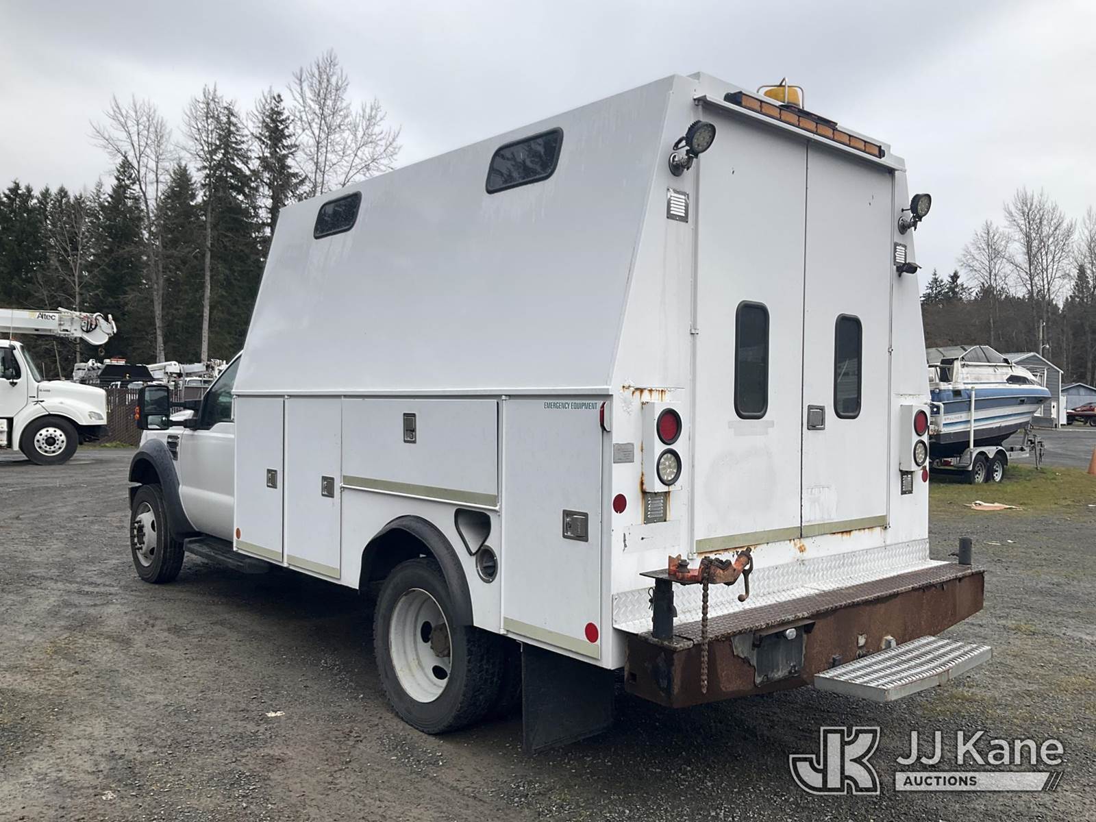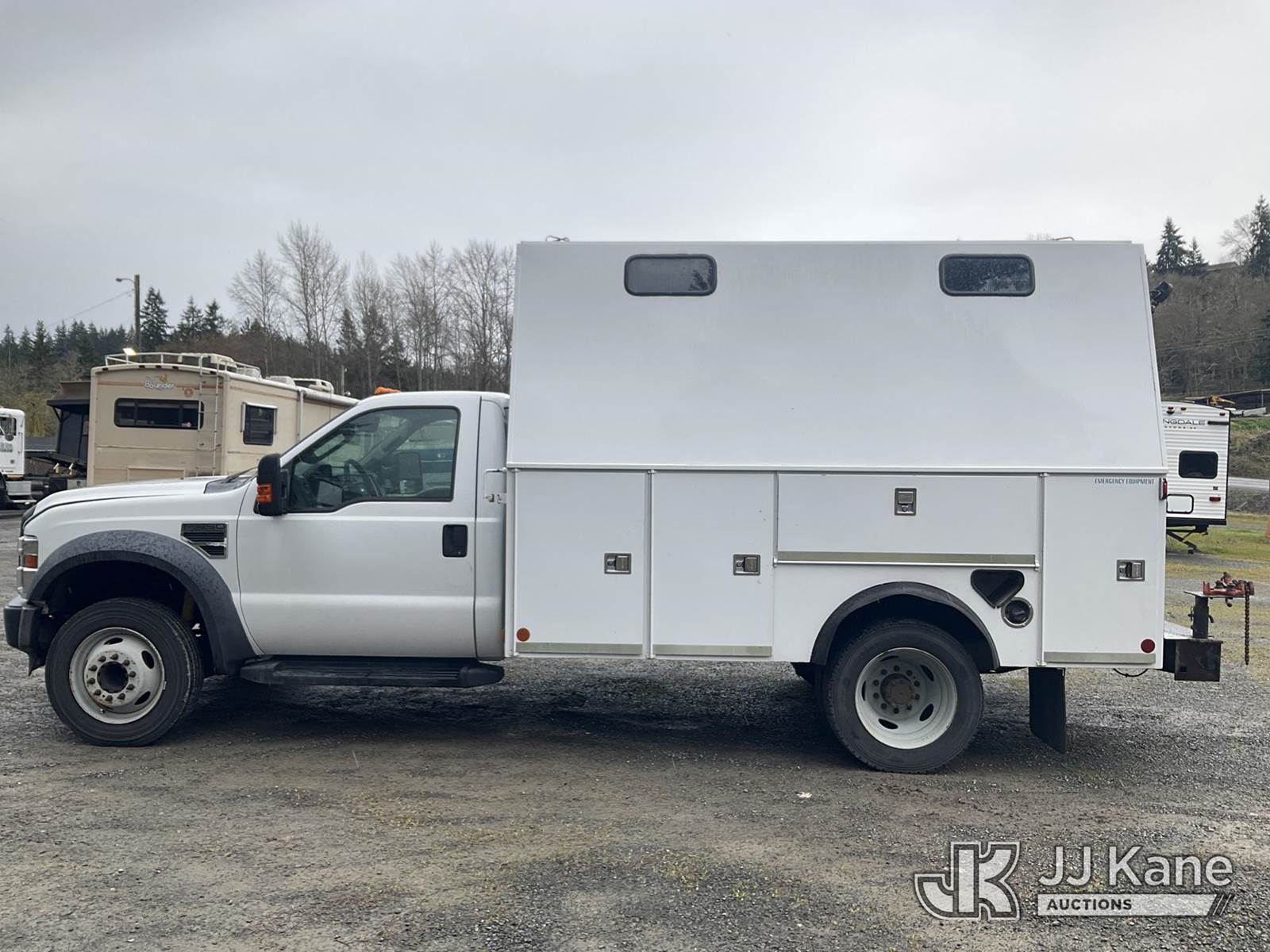 2009 Ford F450 Enclosed High-Top Service Truck, 6.8L V10 SOHC 30V gas, Auto, A/C, (236,372 miles) (Runs & Moves) (Check Engine Light On) This is a Titled Item NOTE: This unit is being sold AS IS/WHERE IS via Timed Auction and is located in Eatonville, WA. Inspection & preview days for this unit are by appointment only; please contact us at contact@jjkane.com or 84-Go-JJKane for more details. (Buyer is responsible for removal. Assistance by consignor or JJ Kane Auctions is not assured.)