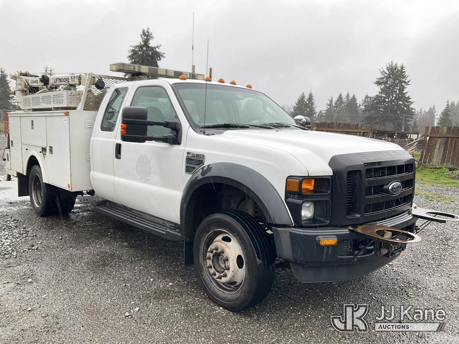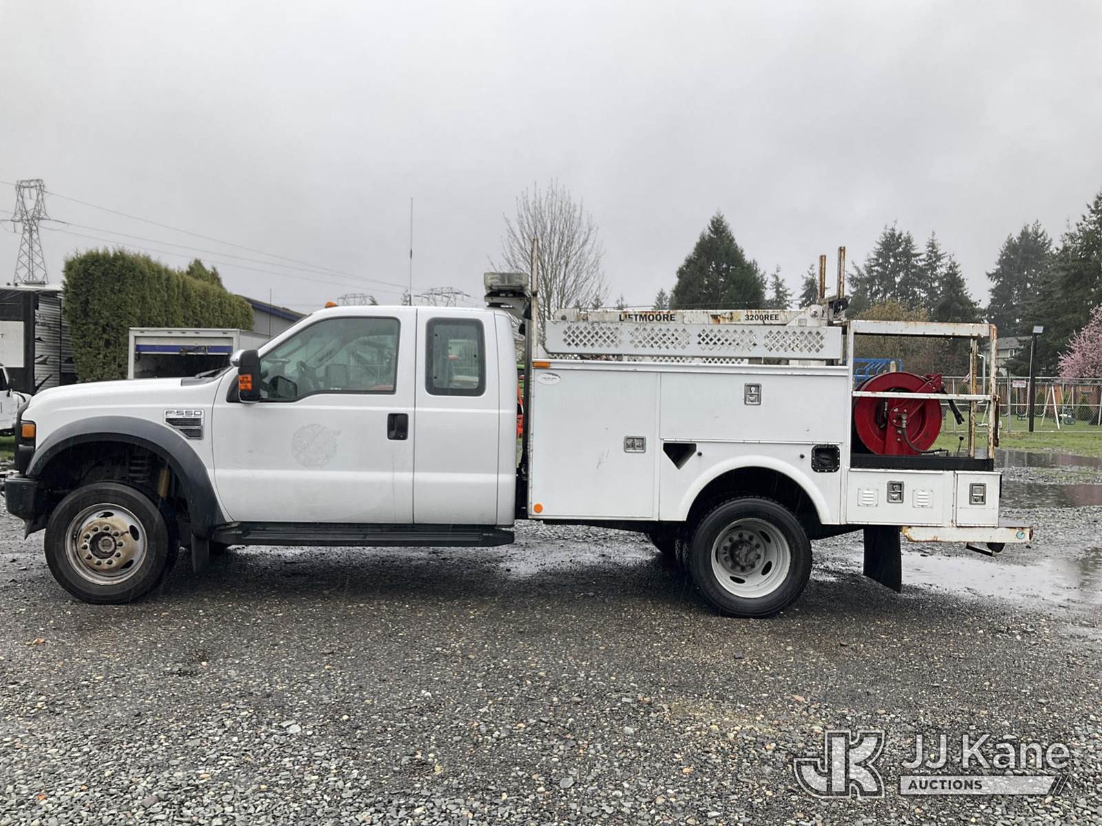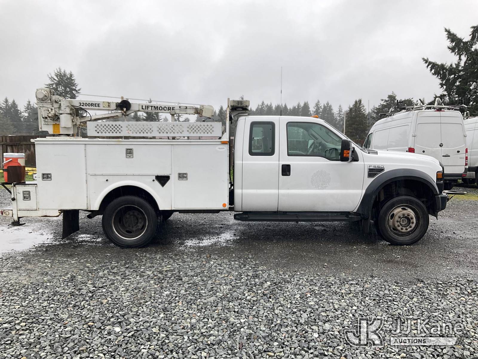 2009 Ford F550 4x4 Mechanics Service Truck, 6.8L V10 SOHC 30V gas, Auto, A/C, with Liftmoore 3200REE material crane, (157,615 miles) (Runs & Moves) This is a Titled Item NOTE: This unit is being sold AS IS/WHERE IS via Timed Auction and is located in Tacoma, WA. Inspection & preview days for this unit are by appointment only; please contact us at contact@jjkane.com or 84-Go-JJKane for more details. (Buyer is responsible for removal. Assistance by consignor or JJ Kane Auctions is not assured.)