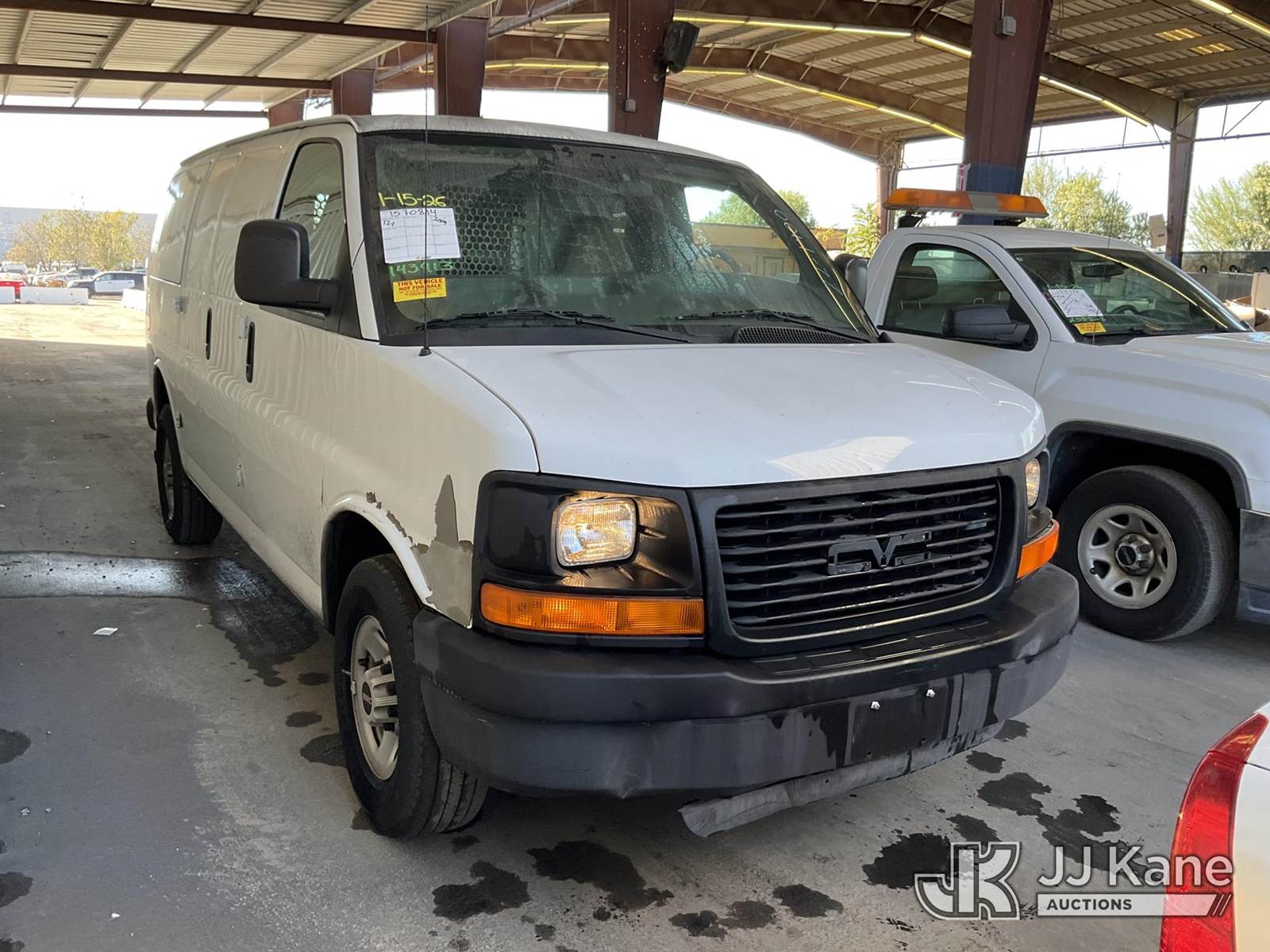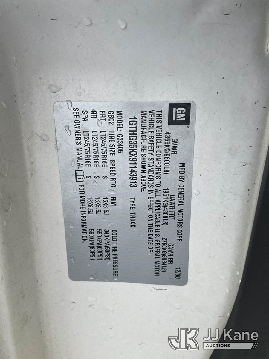 2009 GMC Savana G3500 Cargo Van, s/n 1GTHG35KX91143913, 8-cyl gas, 4-Speed Automatic, A/C, with Tow package, (42,238 miles) (Runs & Moves) (Engine Ticking) This is a Titled Item NOTE: This unit is being sold AS IS/WHERE IS via Timed Auction and is located in Jurupa Valley, CA. Inspection & preview days for this unit are the 2 business days prior to the first day of items closing for this auction, item is located at 4510 Muth Way Jurupa Valley, CA 92509 and hours of operations are 8a-4p. For pre-sale questions, please contact please contact Office Staff @ (310) 353-7140. Dealer License Number 45696. (Buyer is responsible for removal. Assistance by consignor or JJ Kane Auctions is not assured.)