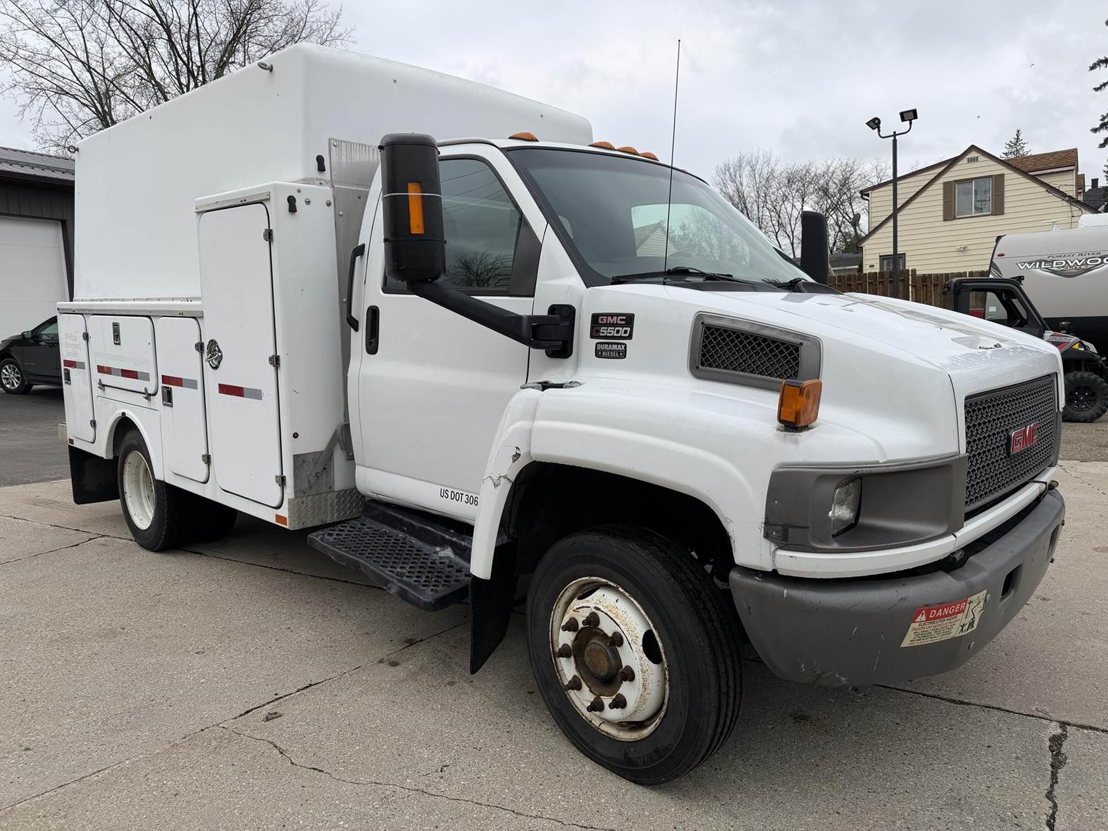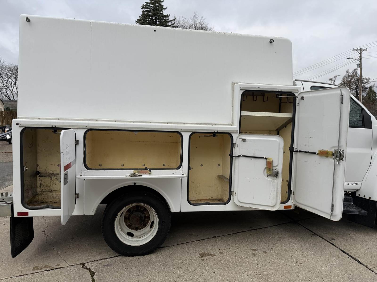 6.6L Duramax Diesel, Automatic Transmission, 19500# GVWR, PTO, 225/70R19.5 Tires, A/C, Stereo, Power Window, Power Locks, Power Mirrors, Electronic Brake Controller, Fiberglass Sevice Body