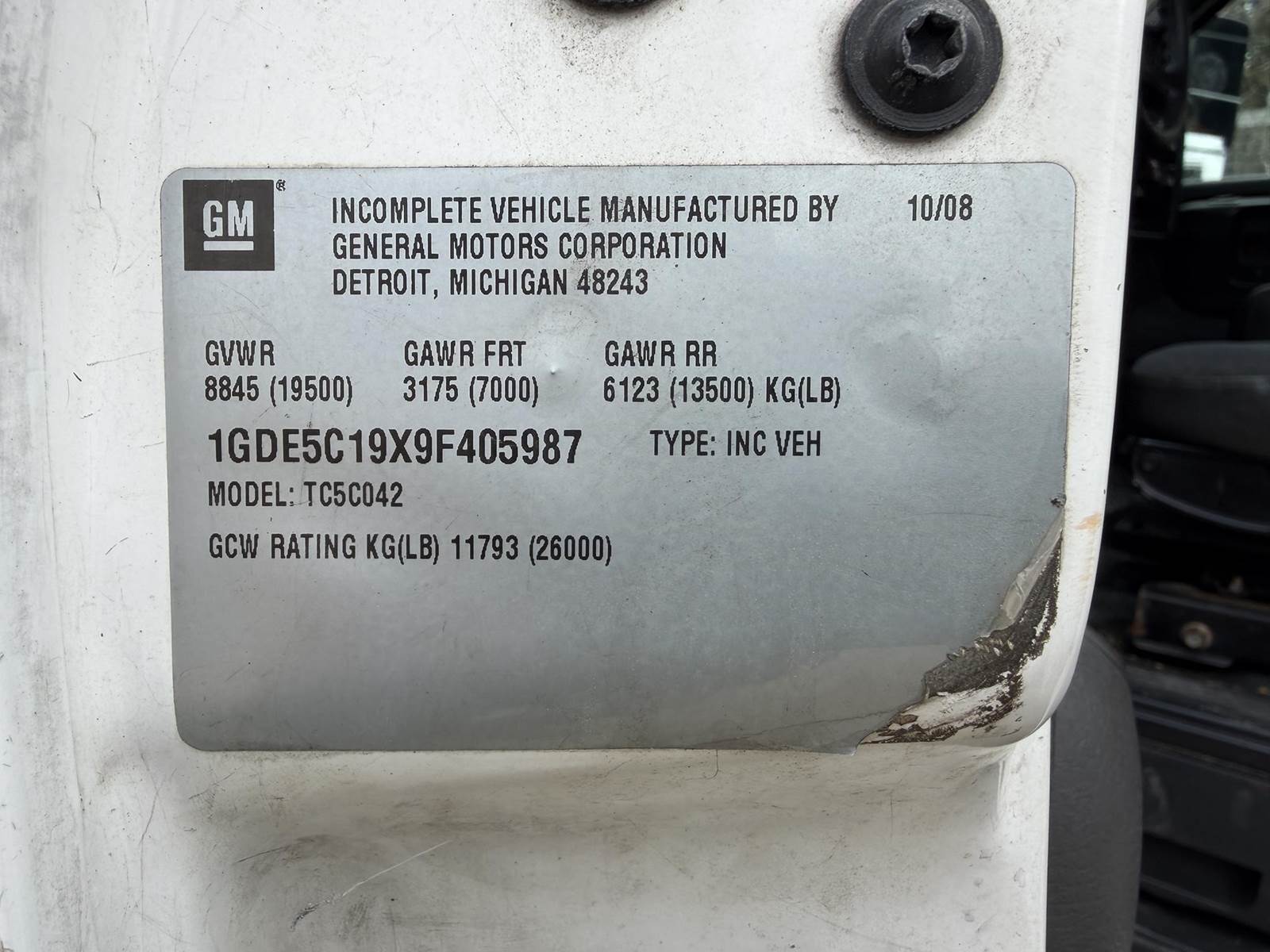VIN:1GDE5C19X9F405987
