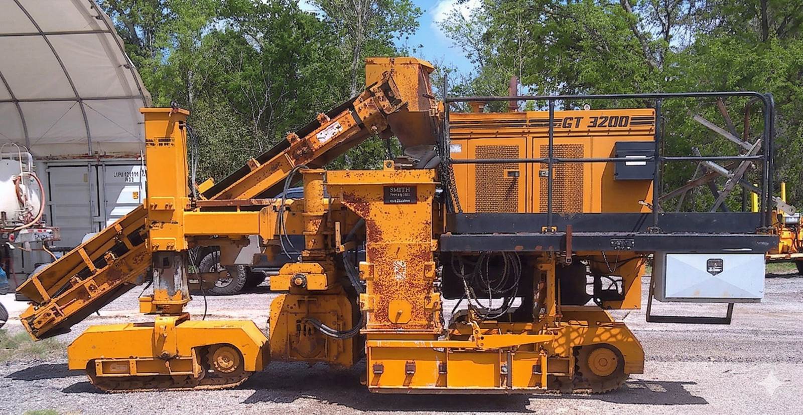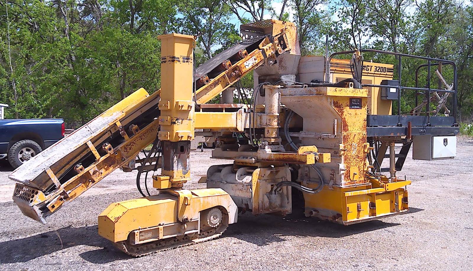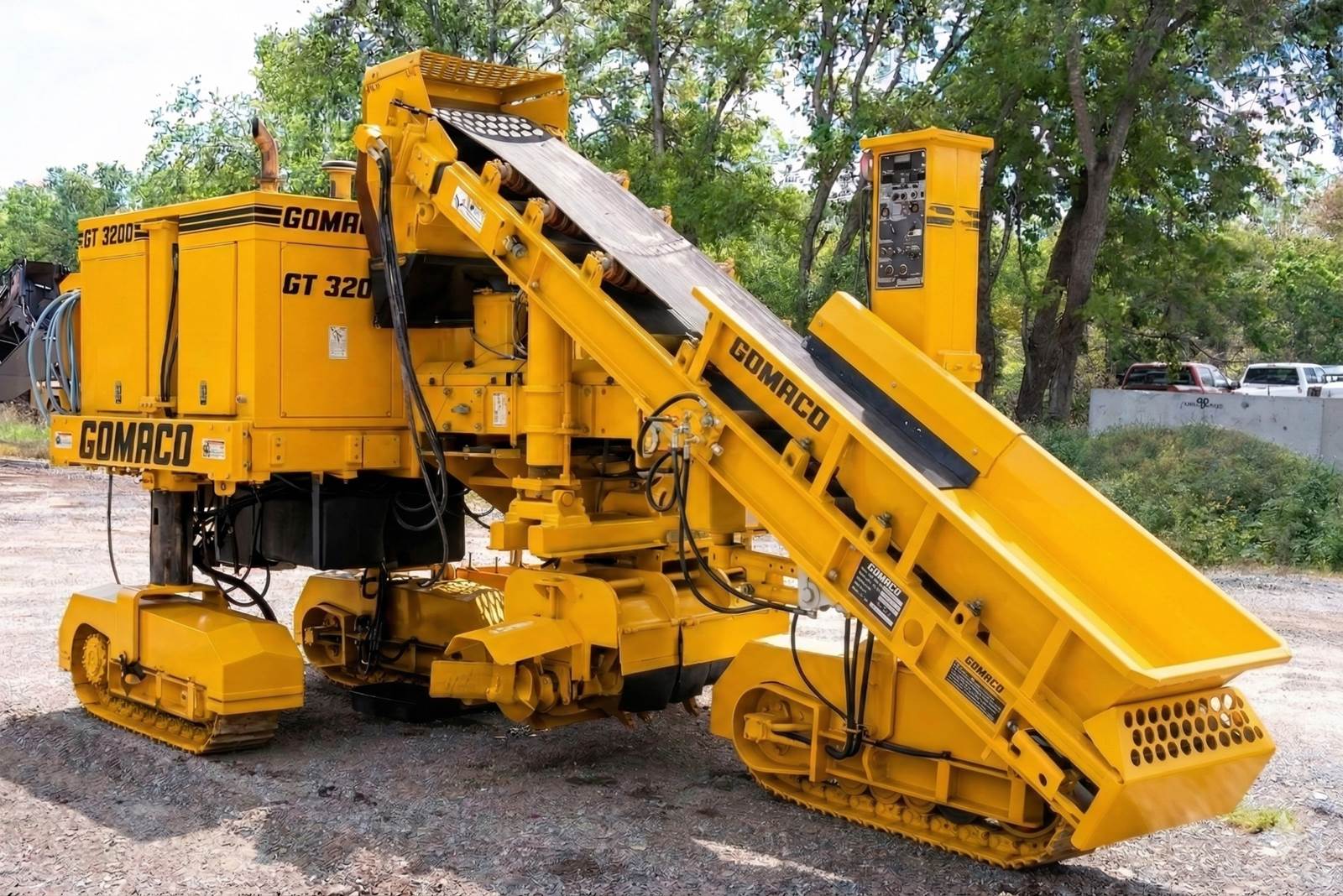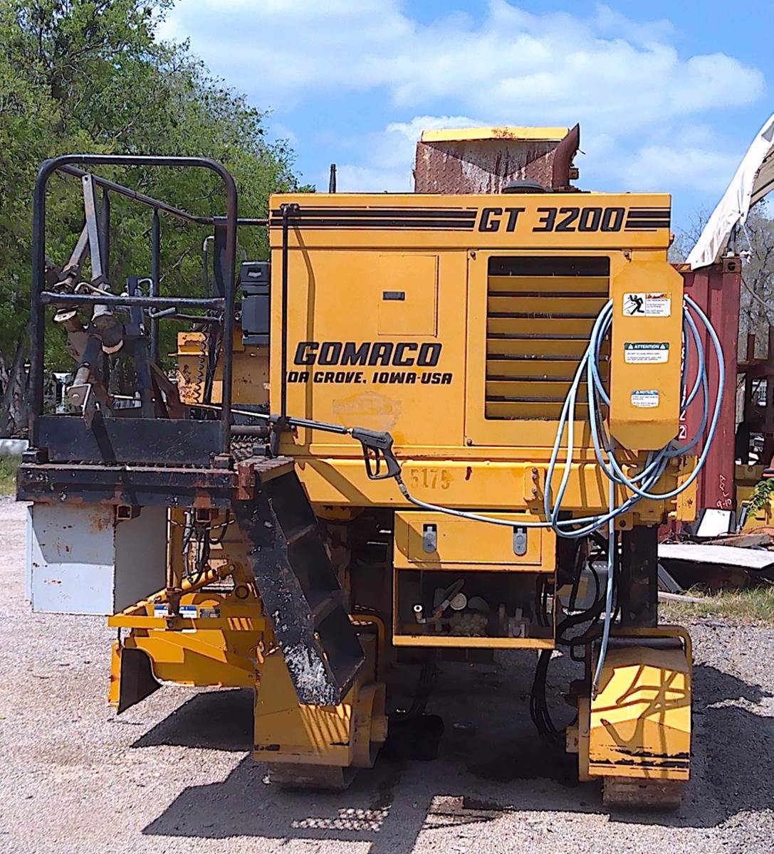 2009 Gomaco GT-3200 is a highly versatile, three-track slipform paver designed specifically for high-precision curb and gutter, barrier wall, and sidewalk applications. Known for its compact footprint and industry-leading maneuverability, this unit is an ideal choice for contractors handling tight-radius work and complex urban projects. Engine Model: Cummins B4.5 Diesel Horsepower: 71 hp Operating Weight: Approximately 15,000 lbs (6,804 kg) (Note: variable based on attached molds/trimmer). Transmission/Drive: Three hydraulically powered, gear-driven crawler tracks with enclosed planetary gear drives and automatic tensioning. Speeds: * Paving Speed: Variable up to 50 fpm Advanced Control System: Equipped with Gomaco’s exclusive G+® control system, featuring color graphical performance indicators and electronic monitoring for superior paving accuracy. Simultaneous Trim/Pour: Features a sectionalized trimmerhead (up to 42") with 36 inches of hydraulic sideshift and 14 inches of vertical adjustment, allowing for one-pass efficiency. Tight Radius Capability: Designed to slipform a radius as tight as 24 inches (610 mm), perfect for cul-de-sacs and parking lot islands. Built-in Maintenance: Includes a high-pressure water system with a 50-gallon tank, ensuring the machine stays clean and concrete buildup is minimized daily. Versatile Pouring: Capable of both left-side and right-side pouring and handles safety barriers up to 40 inches tall. Hours are not verified