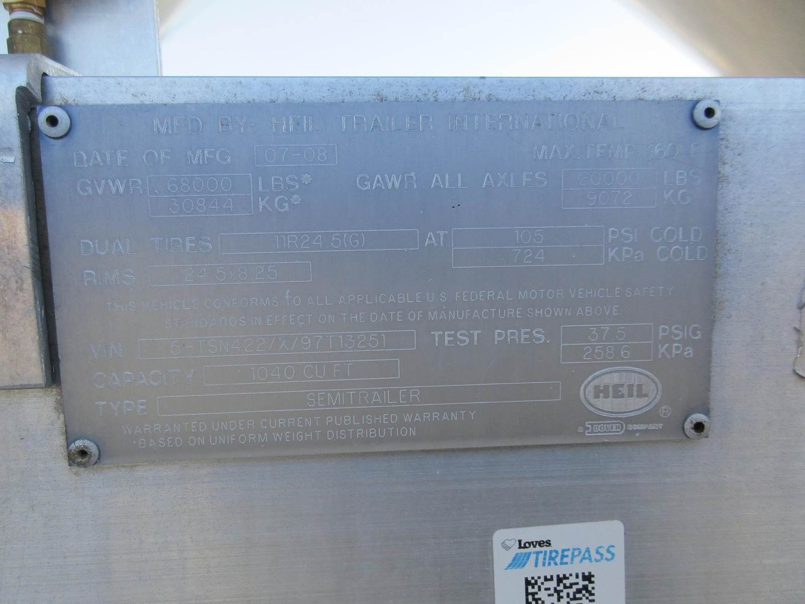 2009 HEIL TRAILER SINGLE COMPARMENT, HENDRICKSON SUSPENSION, 24.5 GOOD RUBBER. MAX LOAD 58,000LBS. 1,040 CU FT. 3 MAN HOLE COVERS, 3HOPPERS, GRAVITY FED, FRESH ACID WASH, NEW PIPING. READY TO WORK!
