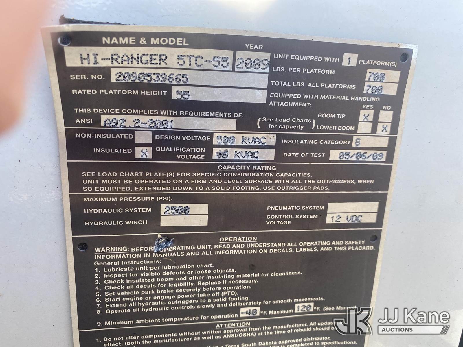 HiRanger 5TC-55, 60 ft, Material Handling Bucket Truck s/n 2090539665, with two-man bucket & 4 hyd outriggers, rear mounted on 2009 Ford F750 Extended-Cab Utility Truck, s/n 3FRYX75H19V180022, Cummins ISB-07 6.7L diesel 4X2, Auto, A/C, with front winch, (120,051 miles) (Runs, Moves & Upper Operates) (Paint Damage) (Reads 1,687 hours) This is a Titled Item NOTE: This unit is being sold AS IS/WHERE IS via Timed Auction and is located in Villa Rica, GA. Inspection & preview days for this unit are the 2 business days prior to the first day of items closing for this auction, item is located at 100 Liberty Rd Villa Rica, GA 30180 and hours of operations are 8a-4p. For pre-sale questions, please contact Office Staff @ (470) 590-8453. (Missing manuals, See Auction Company for Manufacturers Information to obtain manuals) (Buyer is responsible for removal. Assistance by consignor or JJ Kane Auctions is not assured.)