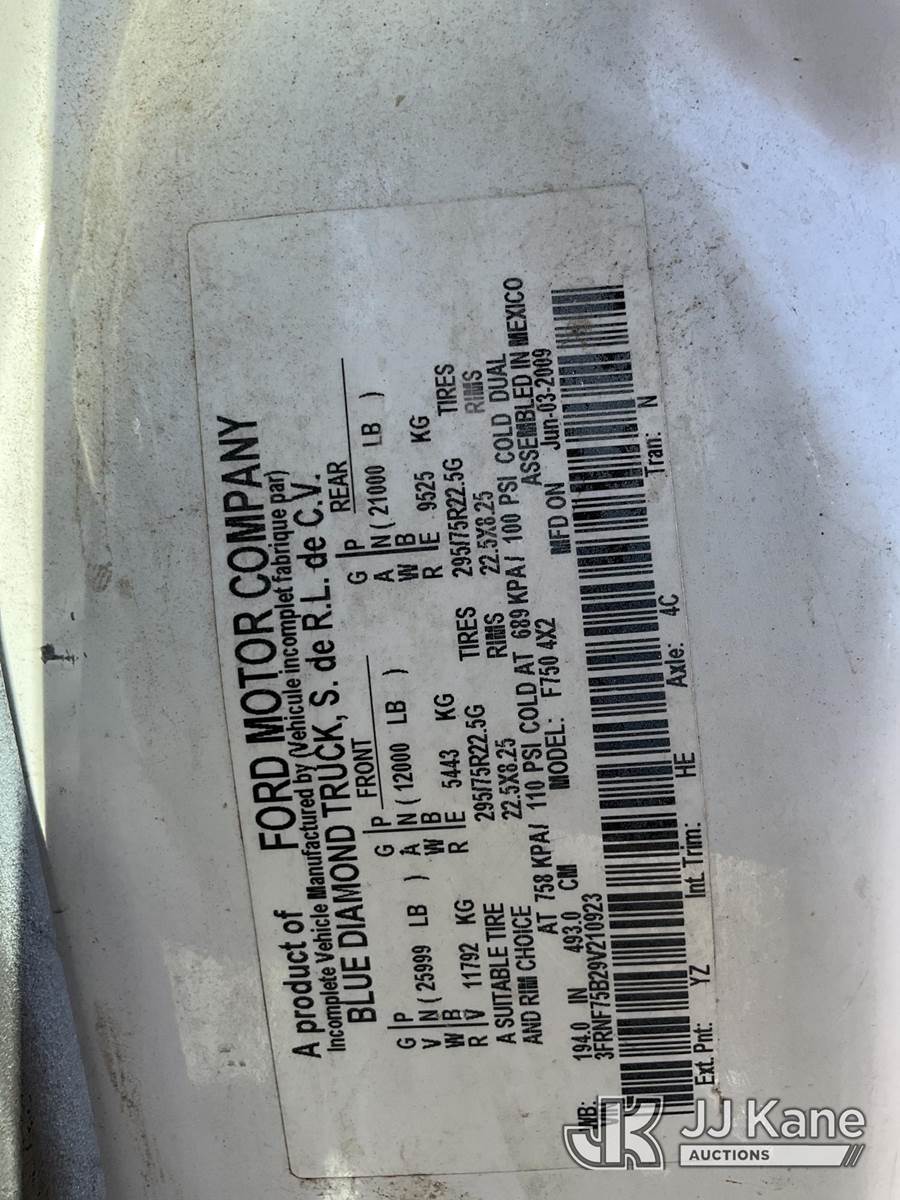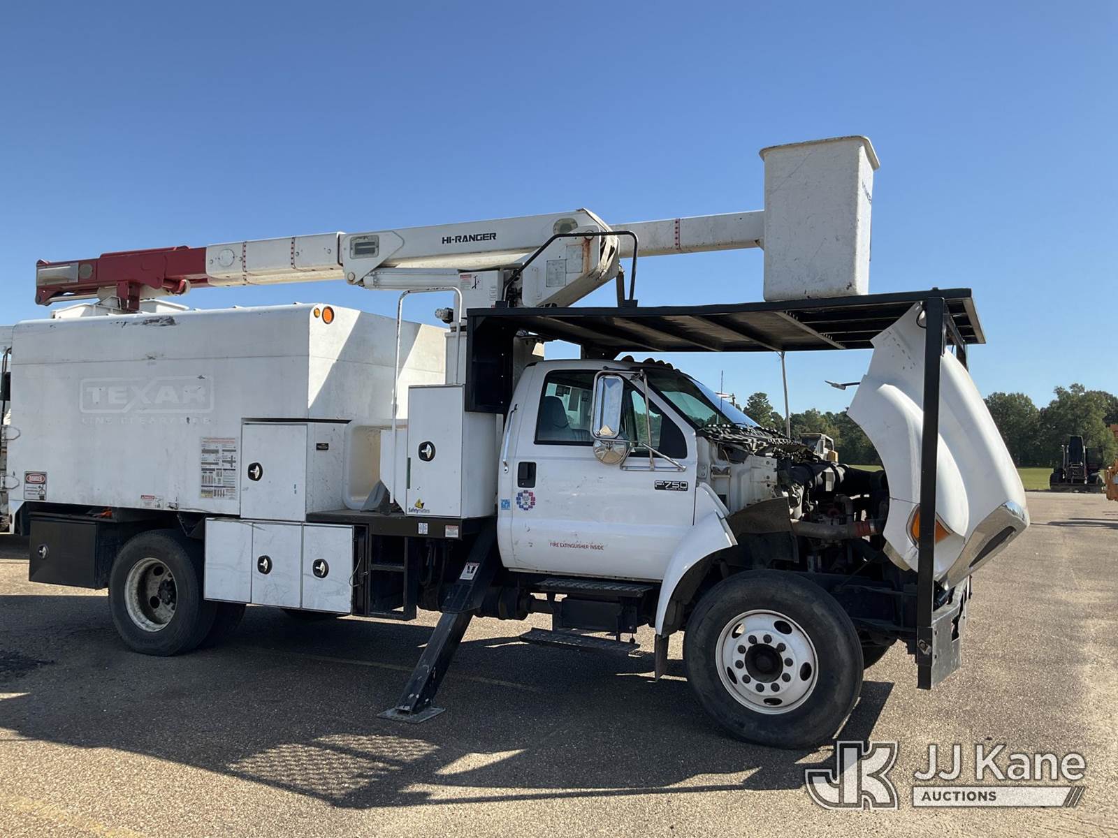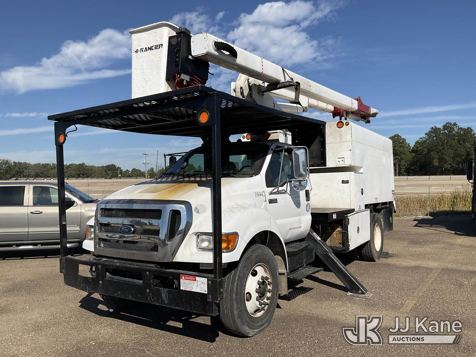 HiRanger XT55, 55 ft, Bucket Truck s/n 2090740101, with single-man bucket, two hyd. outriggers, mounted behind cab on 2009 Ford F-750 Regular Cab DRW Service Truck, 5.9L L6 DIESEL 6-spd, 4X2, (106,038 miles) (Runs, Moves, & Upper Operates) (Jump to Start No Parking Brake) (Reads 9,371 hours) This is a Titled Item NOTE: This unit is being sold AS IS/WHERE IS via Timed Auction and is located in Texarkana, AR. For pre-sale questions or to schedule an inspection, please contact Cote Shaffers @ (205) 789-9015. (Manuals provided in cab) (Buyer is responsible for removal. Assistance by consignor or JJ Kane Auctioneers is not assured.)