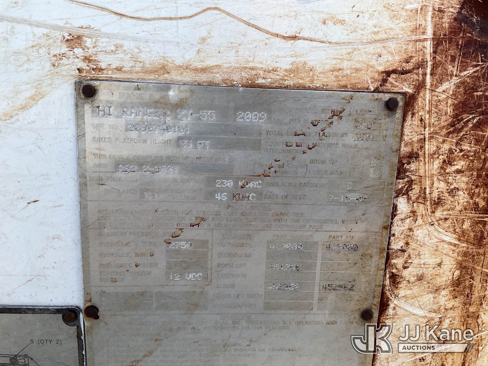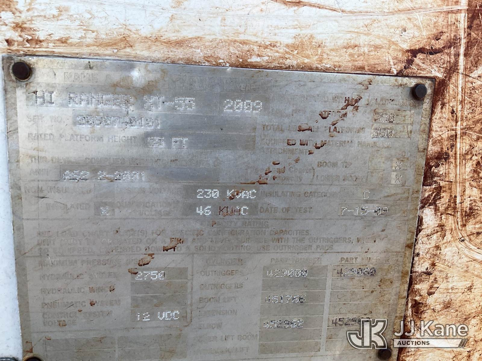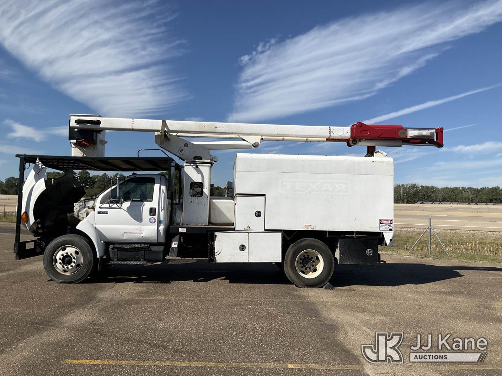 HiRanger XT55, 55 ft, Bucket Truck s/n 2090740101, with single-man bucket, two hyd. outriggers, mounted behind cab on 2009 Ford F-750 Regular Cab DRW Service Truck, 5.9L L6 DIESEL 6-spd, 4X2, (106,038 miles) (Runs, Moves, & Upper Operates) (Jump to Start No Parking Brake) (Reads 9,371 hours) This is a Titled Item NOTE: This unit is being sold AS IS/WHERE IS via Timed Auction and is located in Texarkana, AR. For pre-sale questions or to schedule an inspection, please contact Cote Shaffers @ (205) 789-9015. (Manuals provided in cab) (Buyer is responsible for removal. Assistance by consignor or JJ Kane Auctioneers is not assured.)