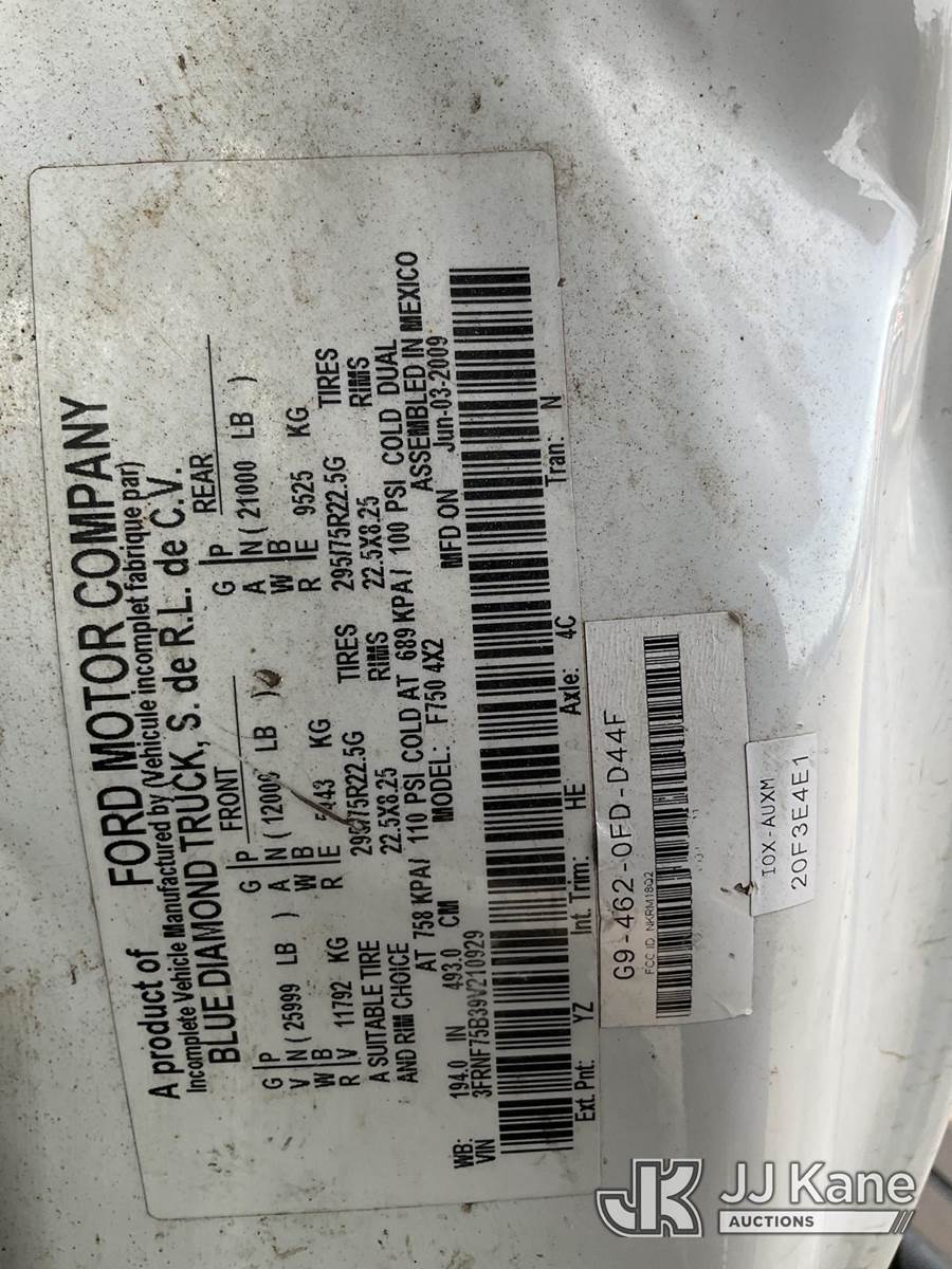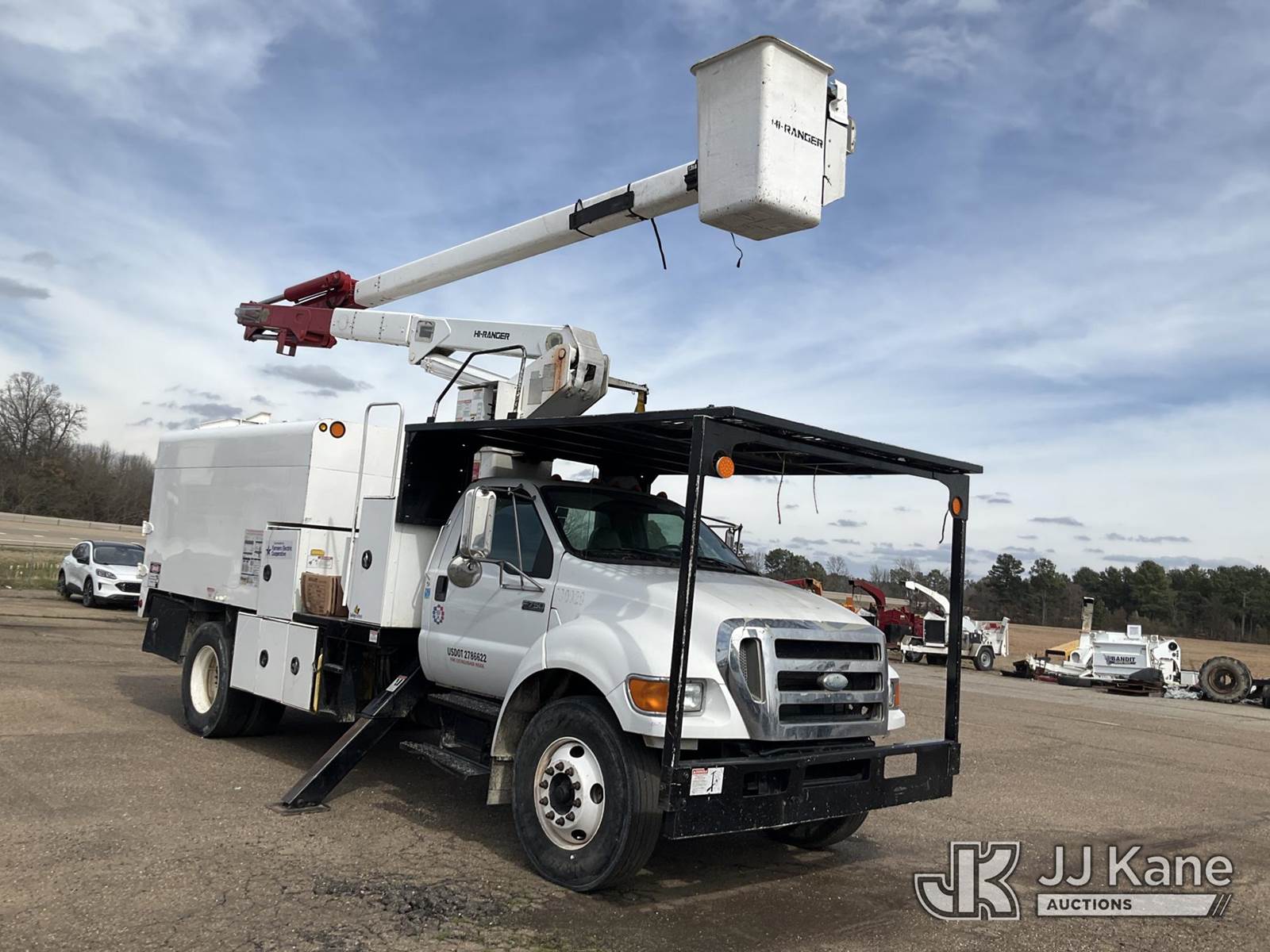 HiRanger XT55, 60 ft, Over-Center Bucket Truck s/n 2090740107, with single man bucket, mounted behind cab on 2009 Ford F-750 Chipper Dump Truck, s/n 3FRNF75B39V210929, 6.7L diesel, 4X2, 6-spd, (119,820 miles) (Runs, Moves & Upper Operates) (Cannot Test Dump Bed Due to Missing Lever - Condition Unknown, ABS Light On) This is a Titled Item NOTE: This unit is being sold AS IS/WHERE IS via Timed Auction and is located in Texarkana, AR. For more information & removal arrangements please contact Dexter Martin @ 770-570-9414. (Missing manuals, See Auction Company for Manufacturers Information to obtain manuals) (Buyer is responsible for removal. Assistance by consignor or JJ Kane Auctions is not assured.)