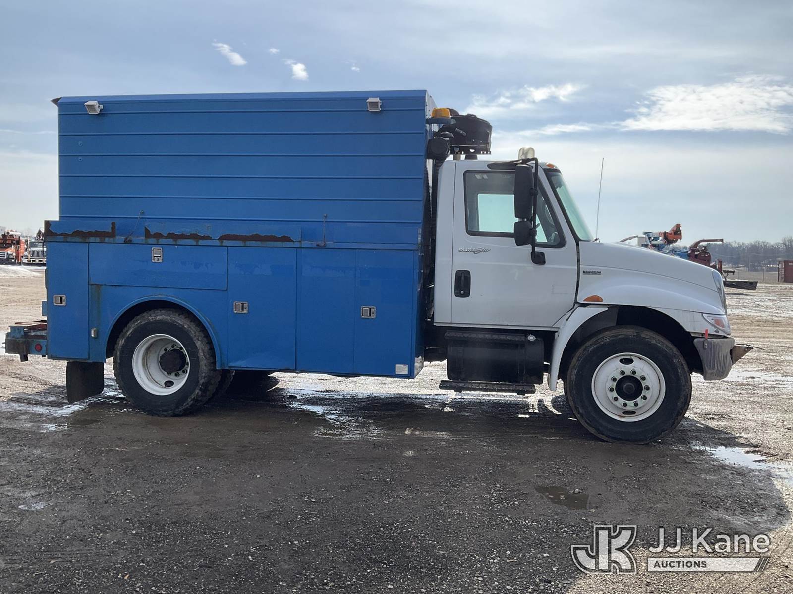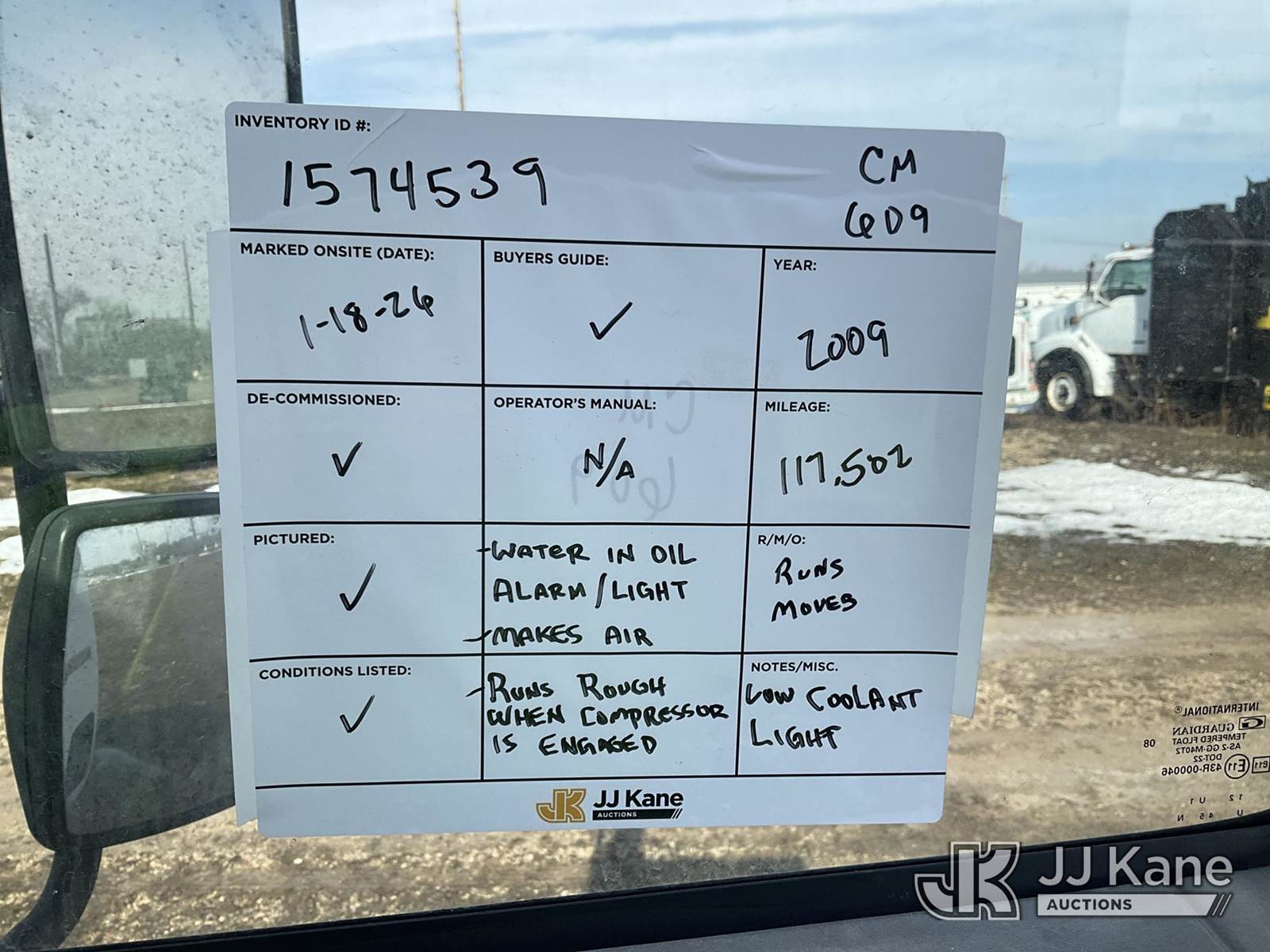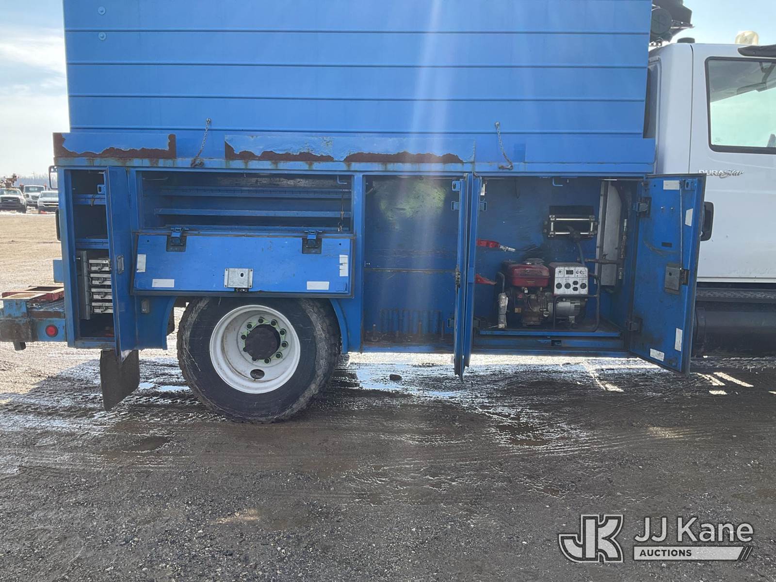2009 International 4300 Enclosed Utility/Air Compressor Truck, 7.6L L6 DIESEL 4X2, Auto, A/C, with Honda generator (condition unknown, cranks), (117,502 miles) (Runs & Moves) (Water In Oil Light/Alarm, Amber Warning Light, Stop Engine Light, Makes Air, Runs Rough When Compressor Is Engaged, Coolant Leak, Low Coolant Light) (Reads 11,309 hours) This is a Titled Item NOTE: This unit is being sold AS IS/WHERE IS via Timed Auction and is located in Charlotte, MI. Inspection & preview days for this unit are the 2 business days prior to the first day of items closing for this auction, item is located at 750 Island Hwy Charlotte, MI 48813 and hours of operations are 8a-4p. For pre-sale questions, please contact Corey Cook at (517) 983-0796 or corey.cook@jjkane.com (Buyer is responsible for removal. Assistance by consignor or JJ Kane Auctions is not assured.)